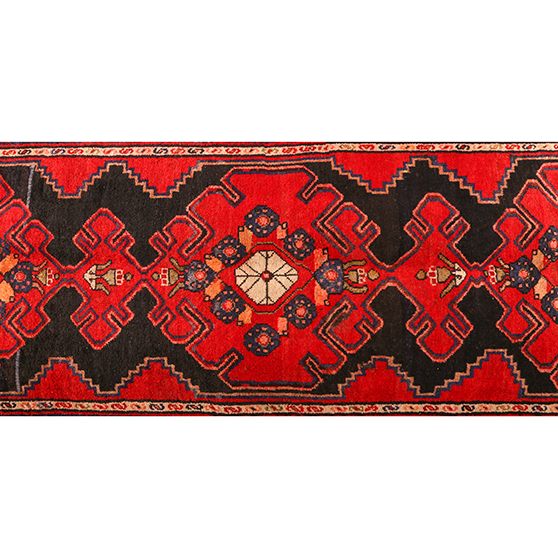 With its Herati design in Red, Blue and its generous 10x3 ft format, this Semi Antique Hamadan rug represents the authentic weaving heritage of Hamadan, where rugs of this quality have been hand-knotted for generations. Each Hamadan rug is the product of a single weaver or small family workshop rather than a large commercial operation, giving every piece a genuinely individual character. Minor variations in color intensity, slight differences in pile height, and small personal interpretations of traditional patterns are hallmarks of authentic village handcraft - marks of individuality that distinguish genuine Persian village rugs from workshop or machine productions of any kind.