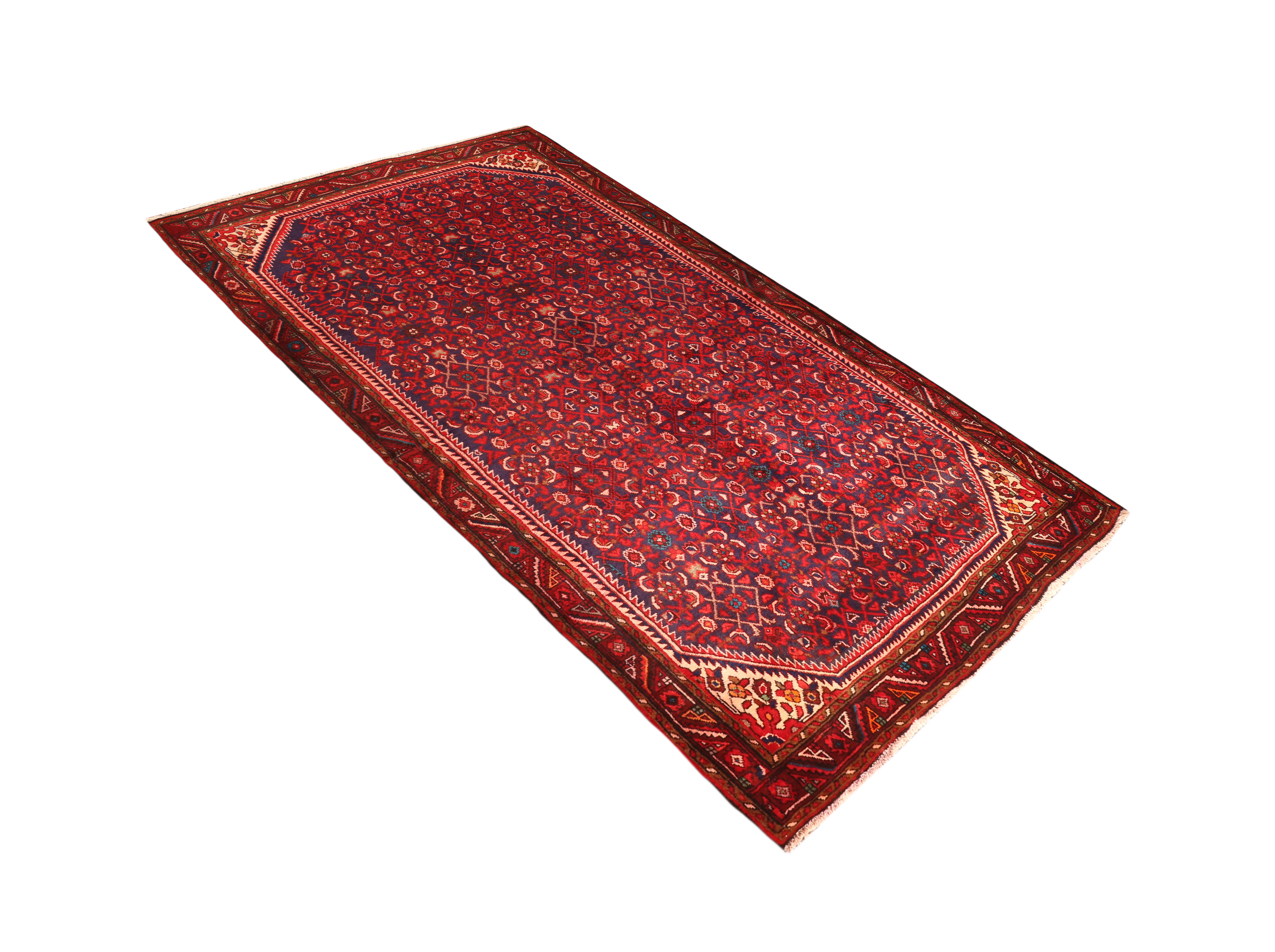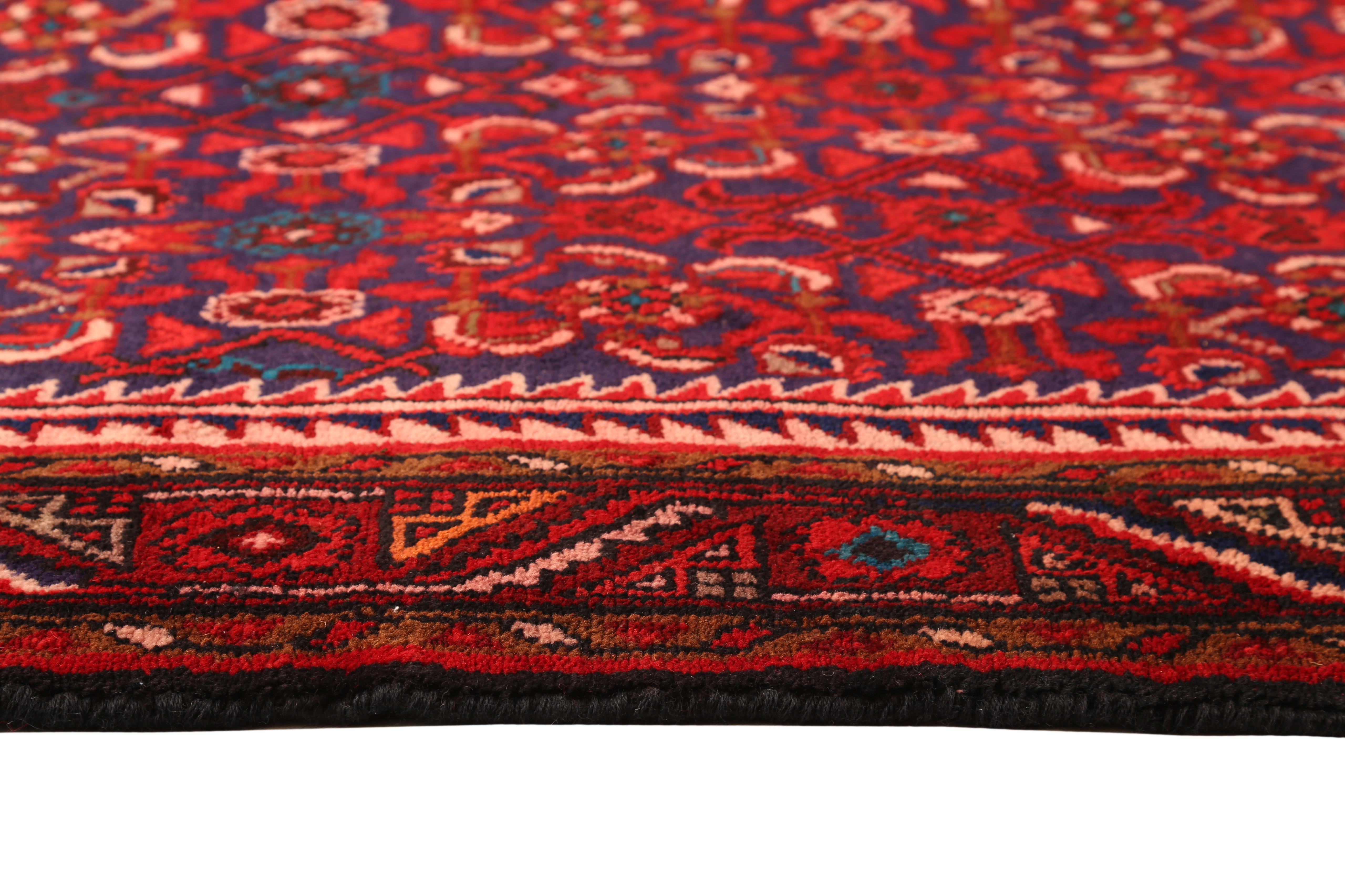 A superb example of Hamadan weaving heritage, this 10x5 ft Semi Antique rug showcases the celebrated Herati design of Hamadan, rendered here in rich tones of Red, Blue with the authority of long tradition. The extraordinary variety within Hamadan production reflects the cultural diversity of the hundreds of villages that contributed to this tradition over centuries. Each village developed its own design specialties, local dyeing practices, characteristic color combinations, and individual interpretations of shared design motifs - giving the Hamadan family of rugs an inexhaustible range of character and individual expression that rewards sustained collecting and close study.