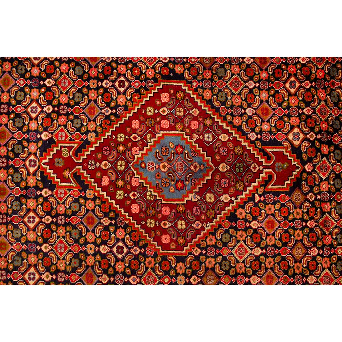 geometric sensibility of northwestern Persian tribal weaving with more refined medallion and Herati floral patterns reflecting the influence of nearby urban weaving centers, creating rugs of distinctive layered visual character.