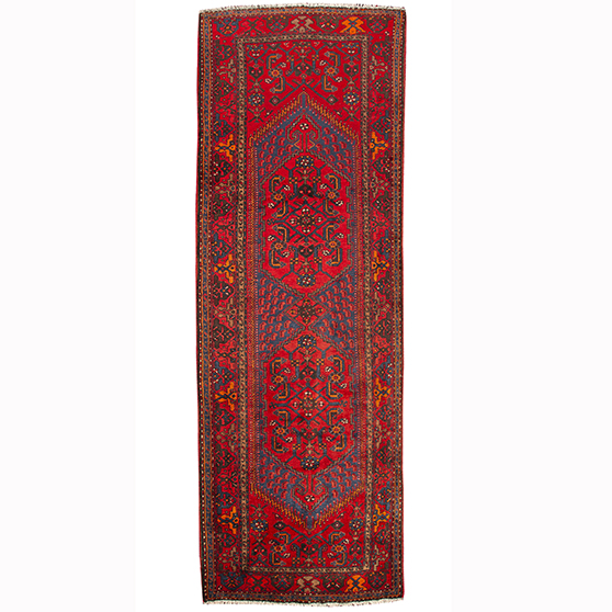 With its Medallion design in Navy Blue, Crimson and its generous 10x3 ft format, this Semi Antique Zanjan rug represents the authentic weaving heritage of Zanjan, where rugs of this quality have been hand-knotted for generations.