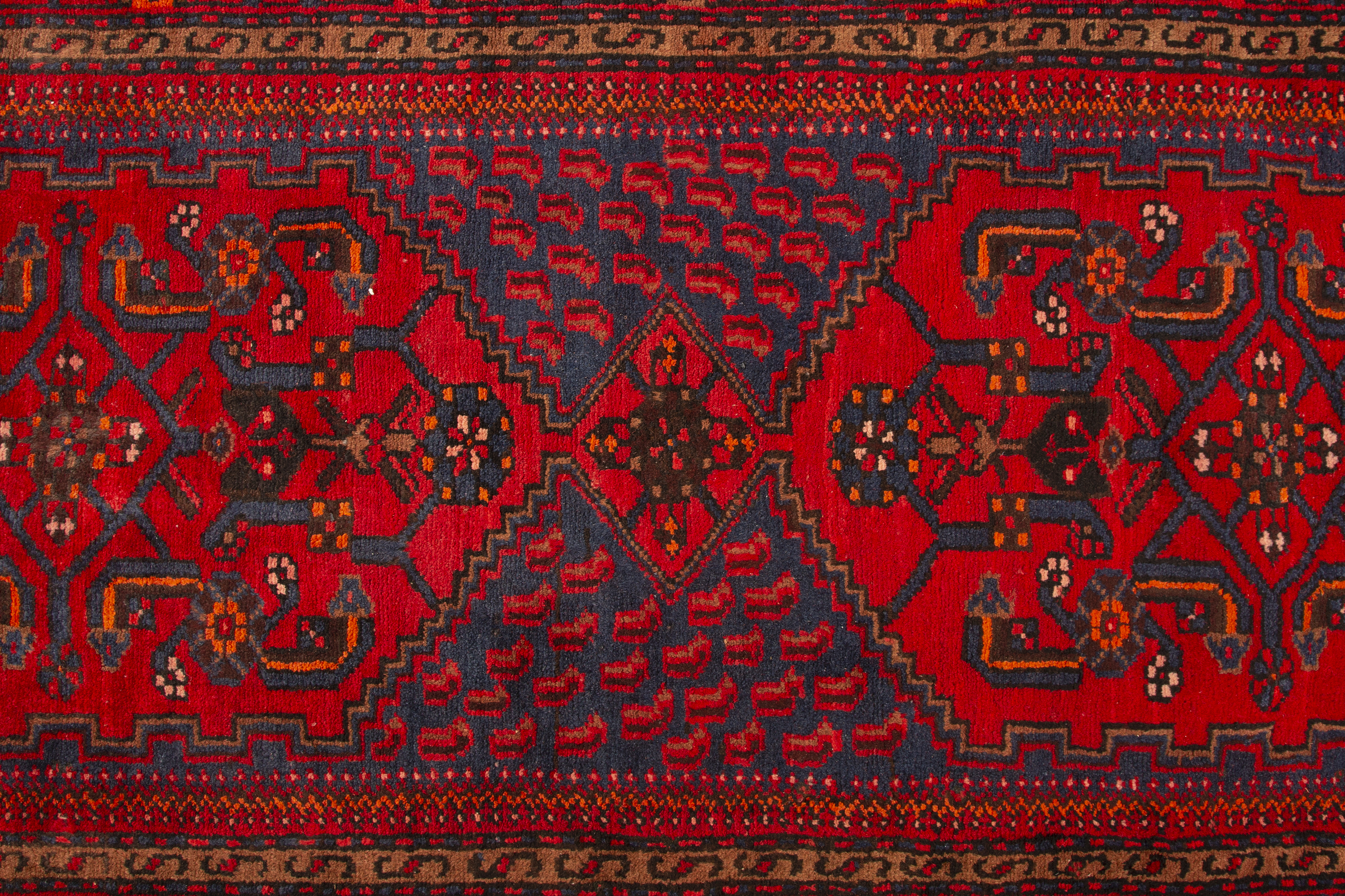 Village weavers of Zanjan work primarily with the Turkish symmetrical knot on cotton foundations, producing rugs with a dense, durable pile well-suited to active household use. The design repertoire includes bold geometric