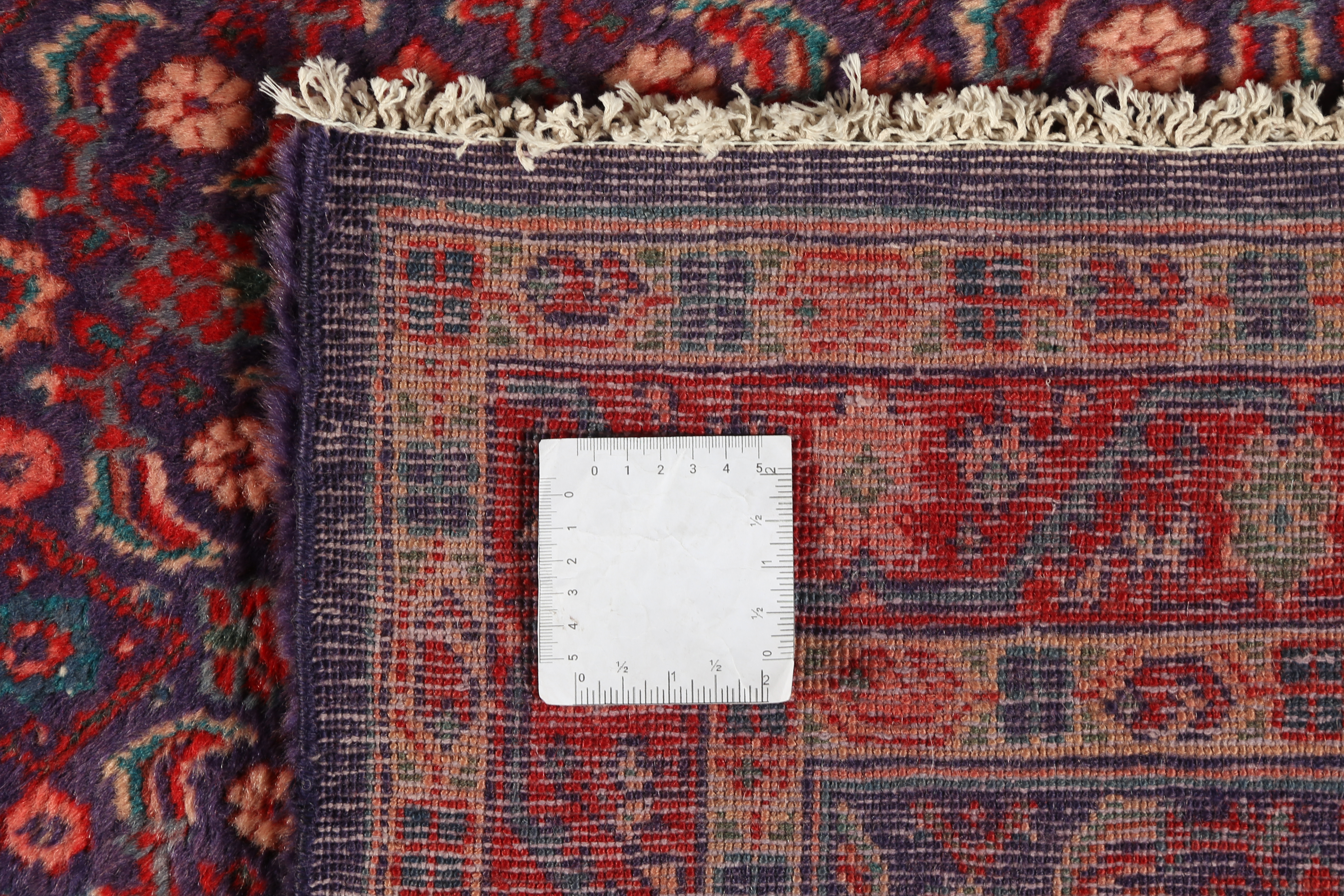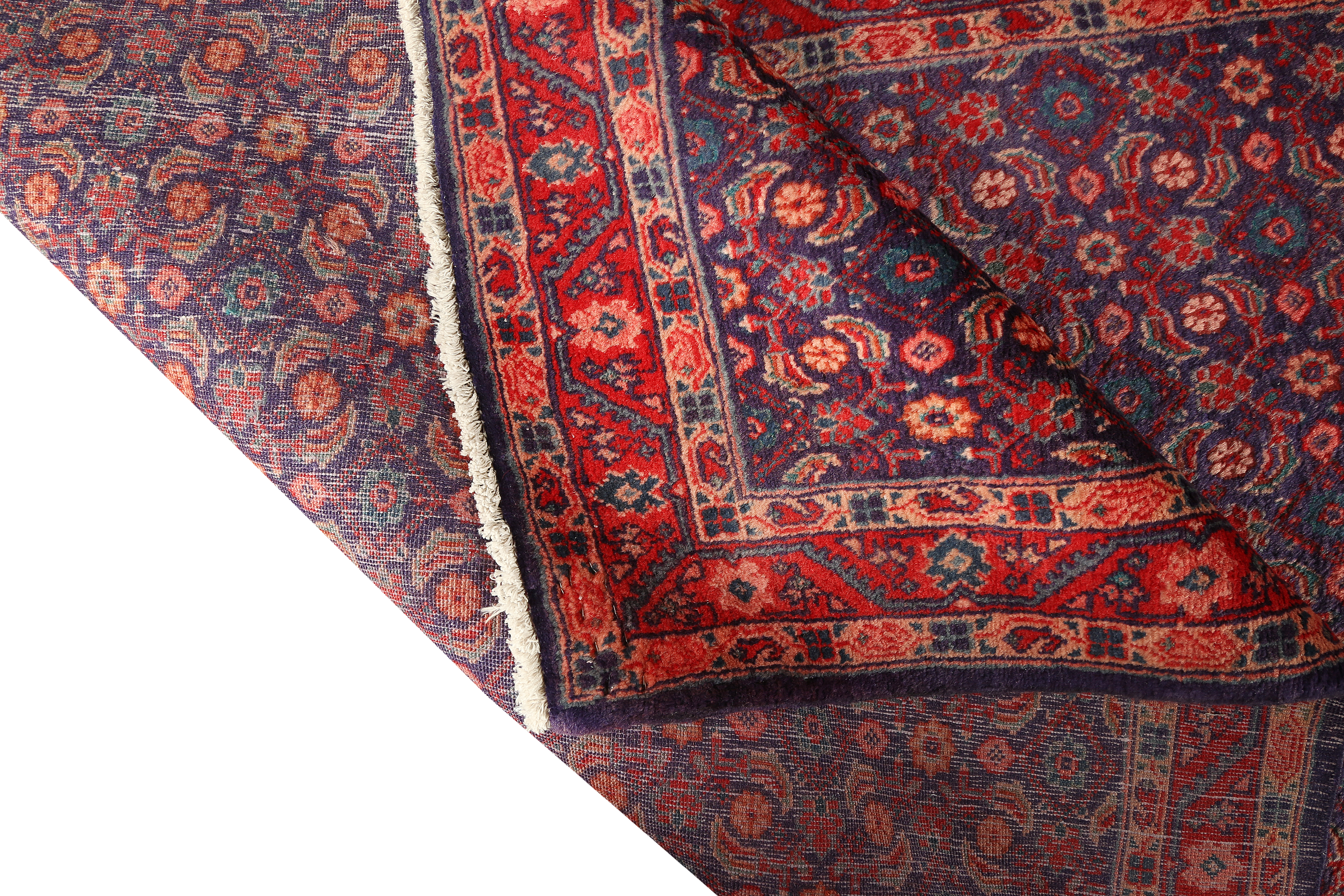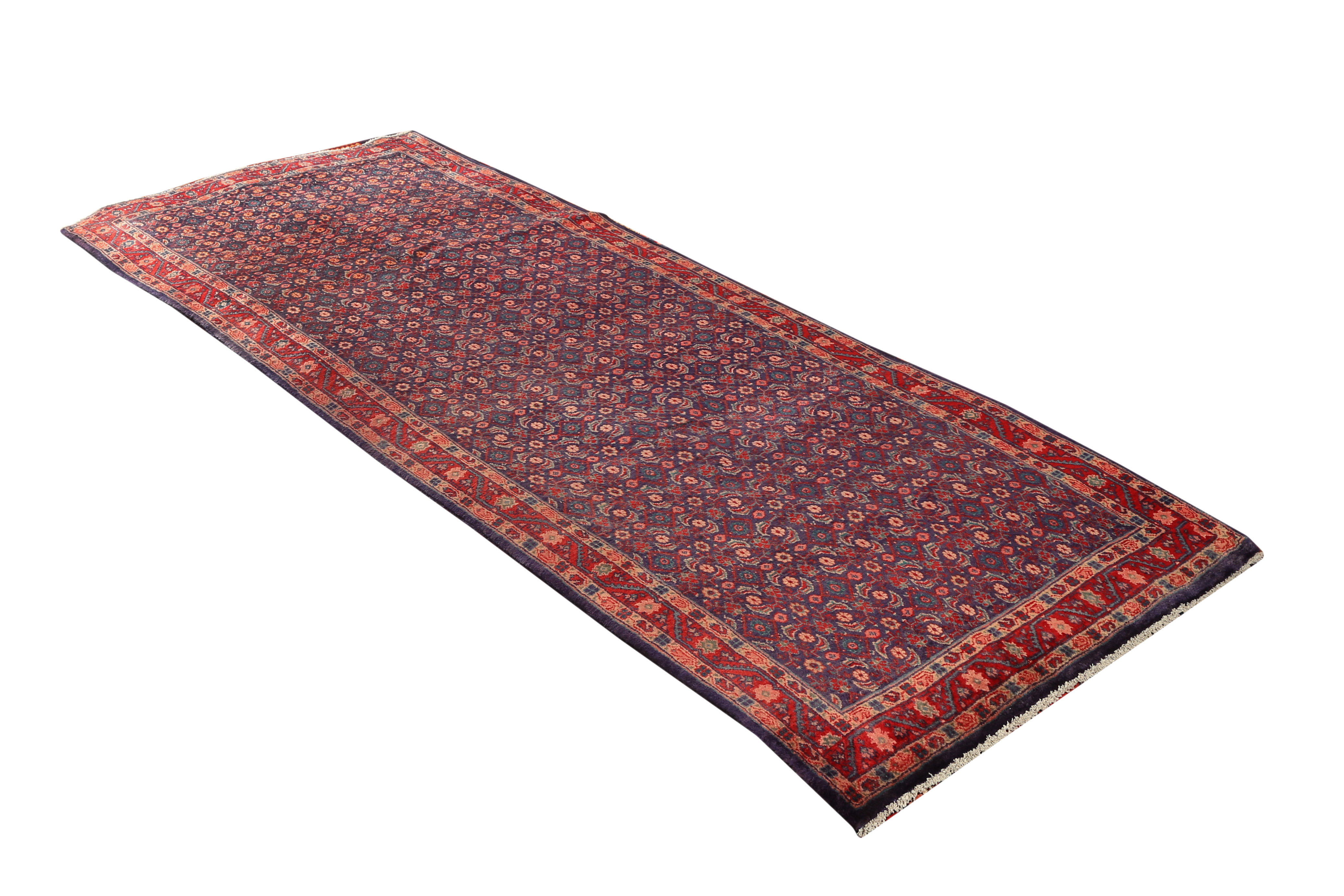 This captivating semi antique Arak Persian rug measuring 10'2" x 3'8" showcases the timeless elegance of traditional Persian craftsmanship through its intricate Herati motifs. The rich tapestry of colors-dark red, madder red, navy blue, ivory, cream, green, and burgundy-creates a sophisticated palette that speaks to decades of careful preservation and natural aging. Woven 40 to 60 years ago in the Markazi province of Persia, this exceptional piece represents the golden era of Persian rug making when artisans dedicated months to perfecting each asymmetrical knot.