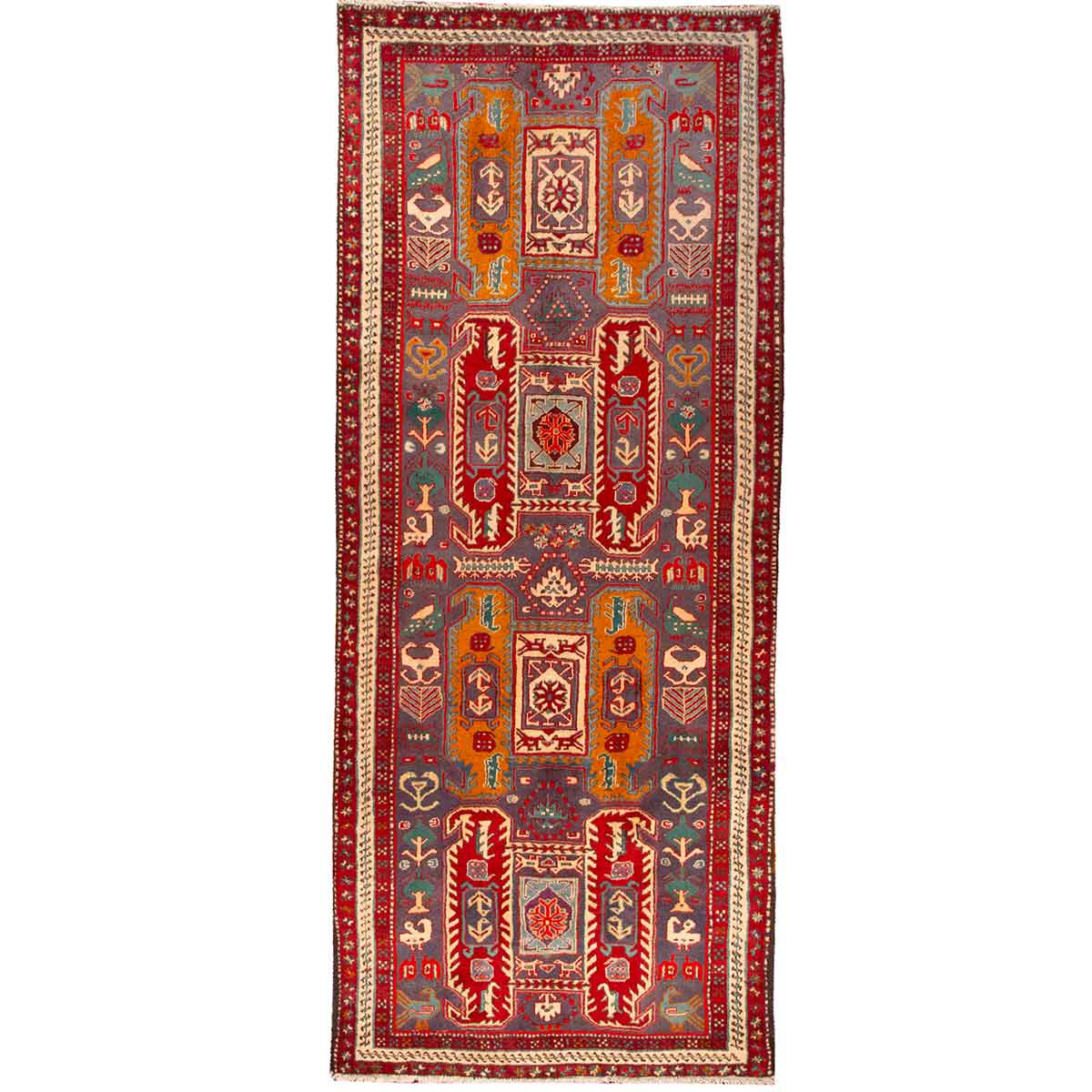 Meshkin Persian Rug 10x4 ft - Geometric Semi Antique Wool Hand Knotted | SKU 110025