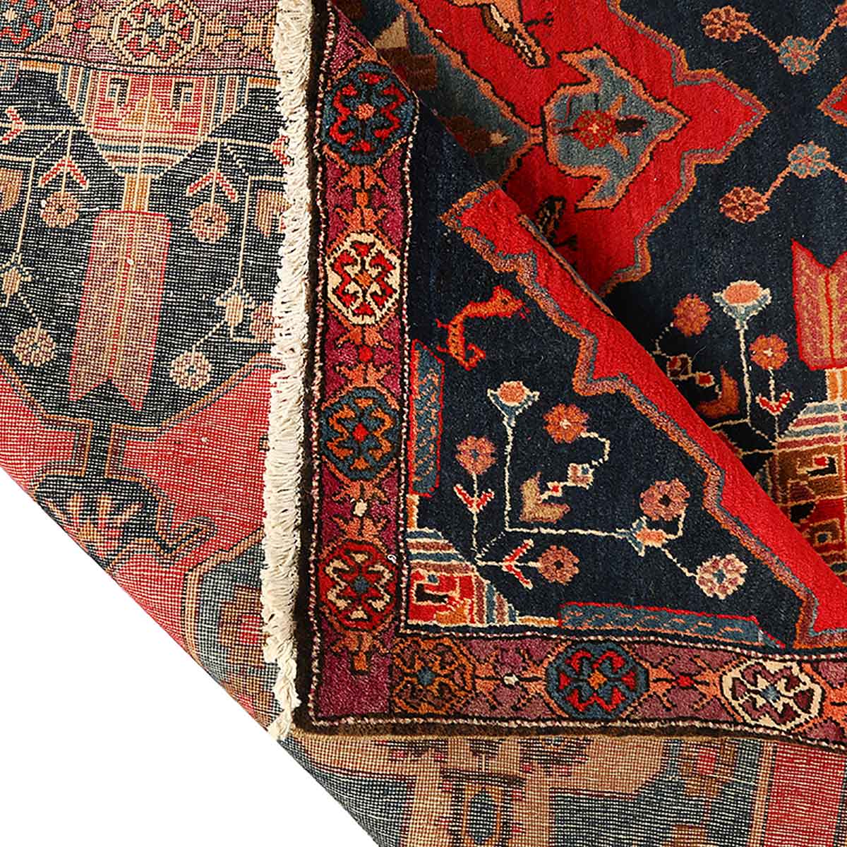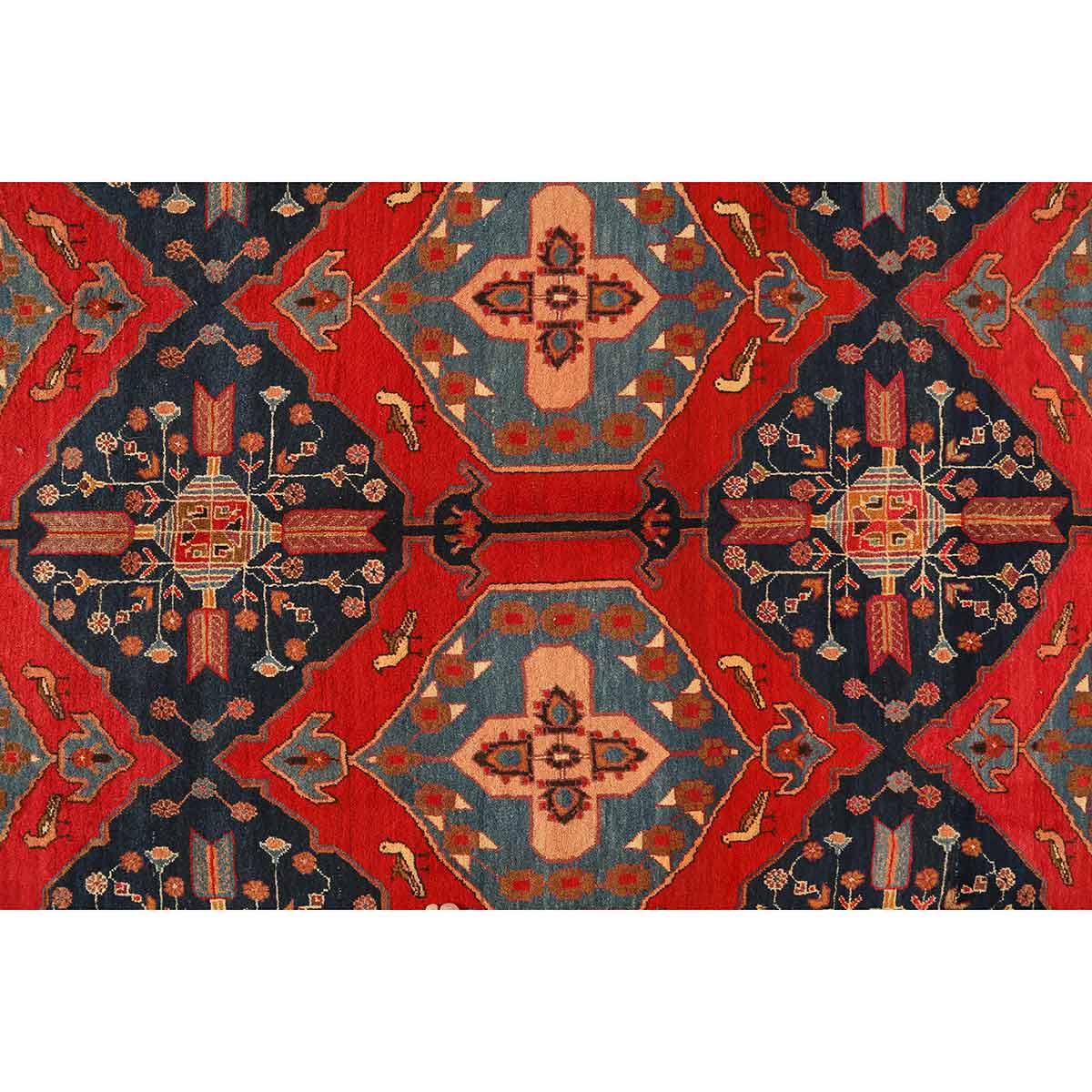 The sophisticated color palette tells a story of Persian symbolism, where the dominant red represents courage and strength, while the navy blue evokes the depth of wisdom and the turquoise channels protection and healing. Complementary tones of rust red, cream, orange, brown, and black create a harmonious balance that reflects the natural landscape of Ardabil's mountainous terrain. Each hue has been carefully selected and hand-dyed using traditional methods passed down through generations of master craftsmen.