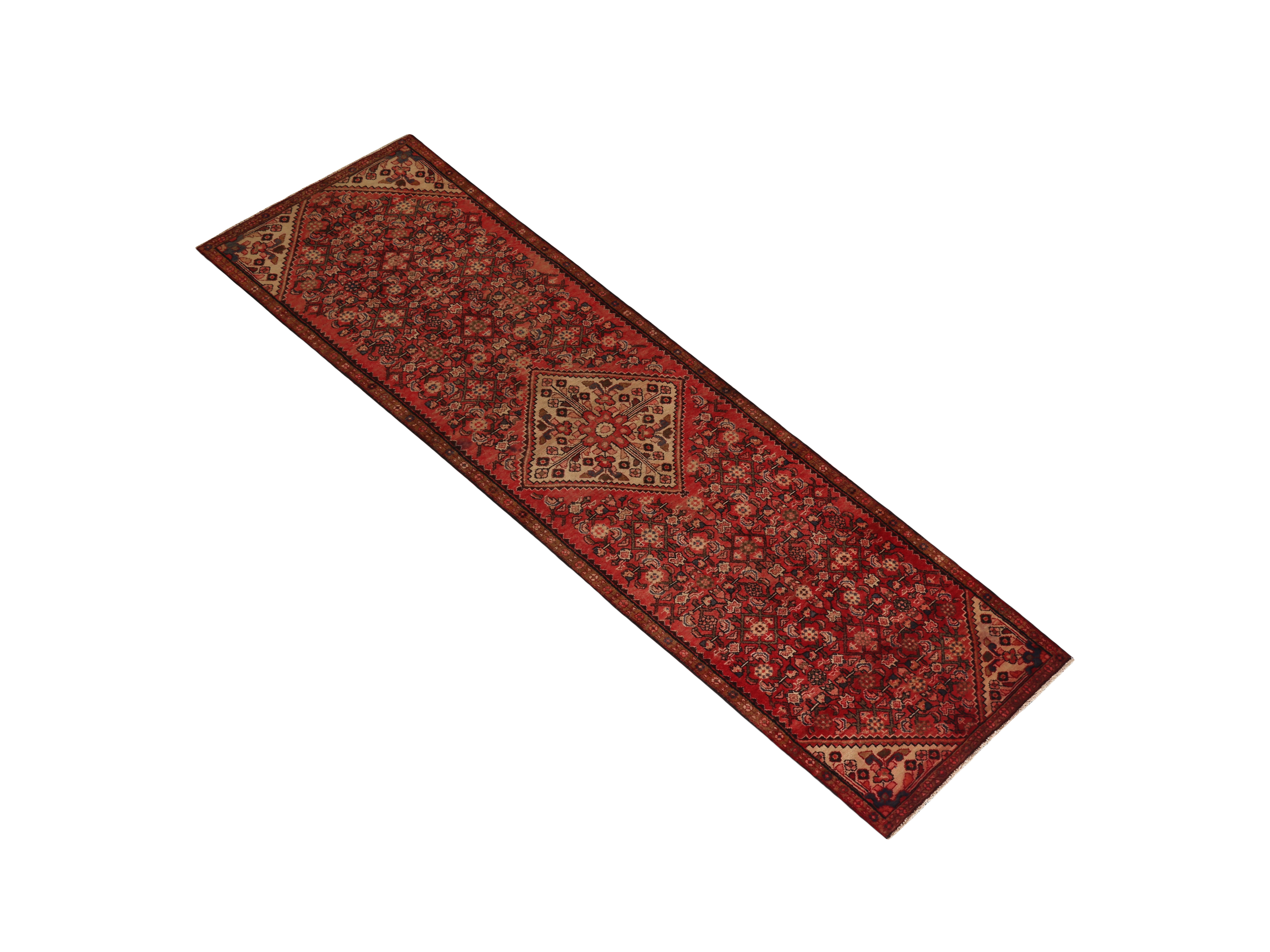 This extraordinary semi antique Hamadan Persian rug, measuring 11'10" x 2'11", showcases the masterful artistry of Persian weavers from four to six decades past, when traditional techniques flourished in the ancient city of Hamadan. The narrow runner proportions make it an ideal choice for hallways, galley kitchens, or as an elegant accent alongside longer furnishings, while its substantial length creates a continuous flow of Persian artistry throughout your space.