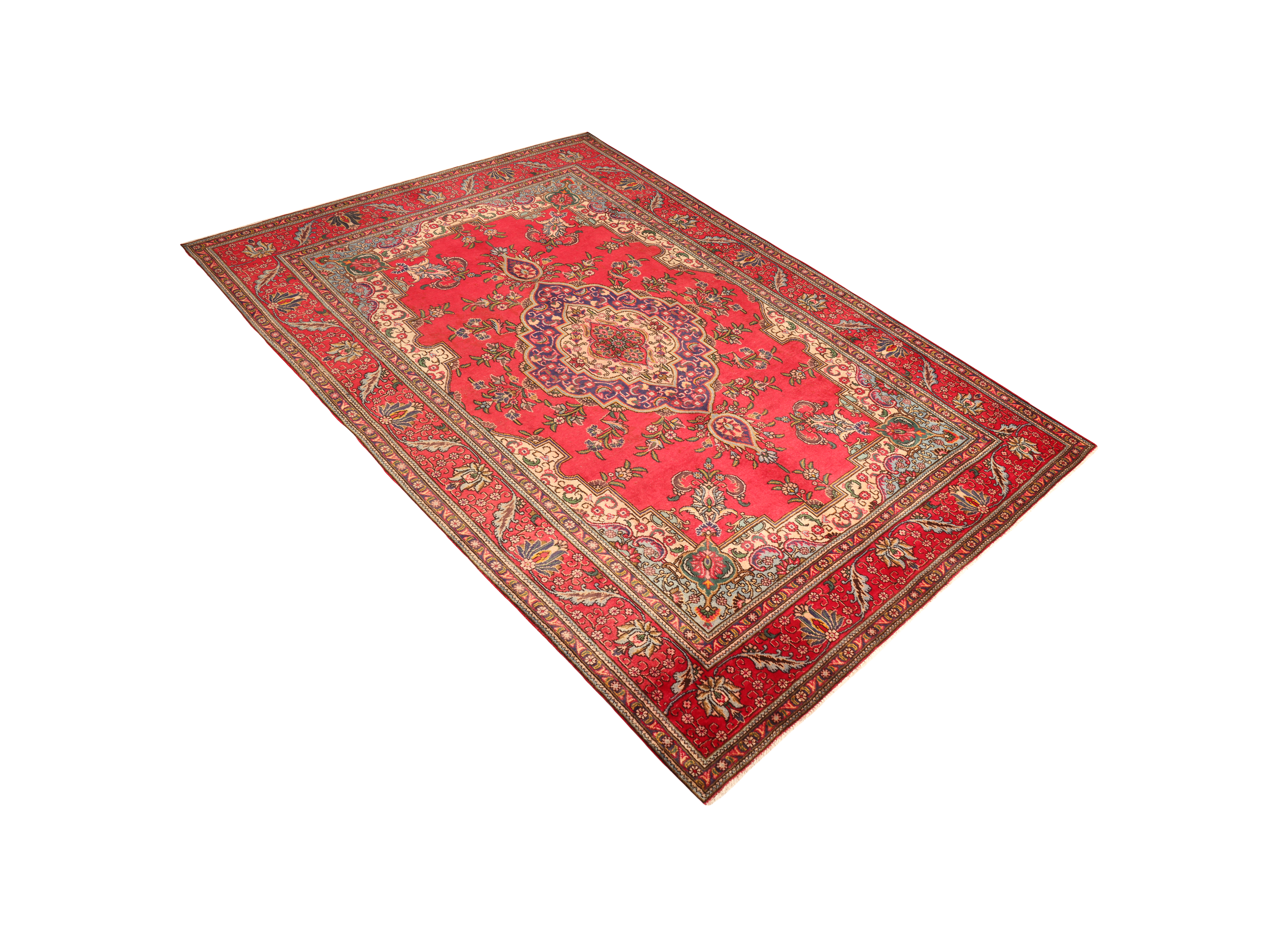 This Tabriz rug originates from Azerbaijan, Persia. The Azerbaijan region has a long and distinguished history of rug weaving, with local artisans developing their own distinctive design vocabulary, color traditions, and technical approaches that set their rugs apart from other Persian weaving centers. The city rug category from this region is particularly known for its medallion (toranj), shah abbasi, eslimi (arabesque) design traditions.