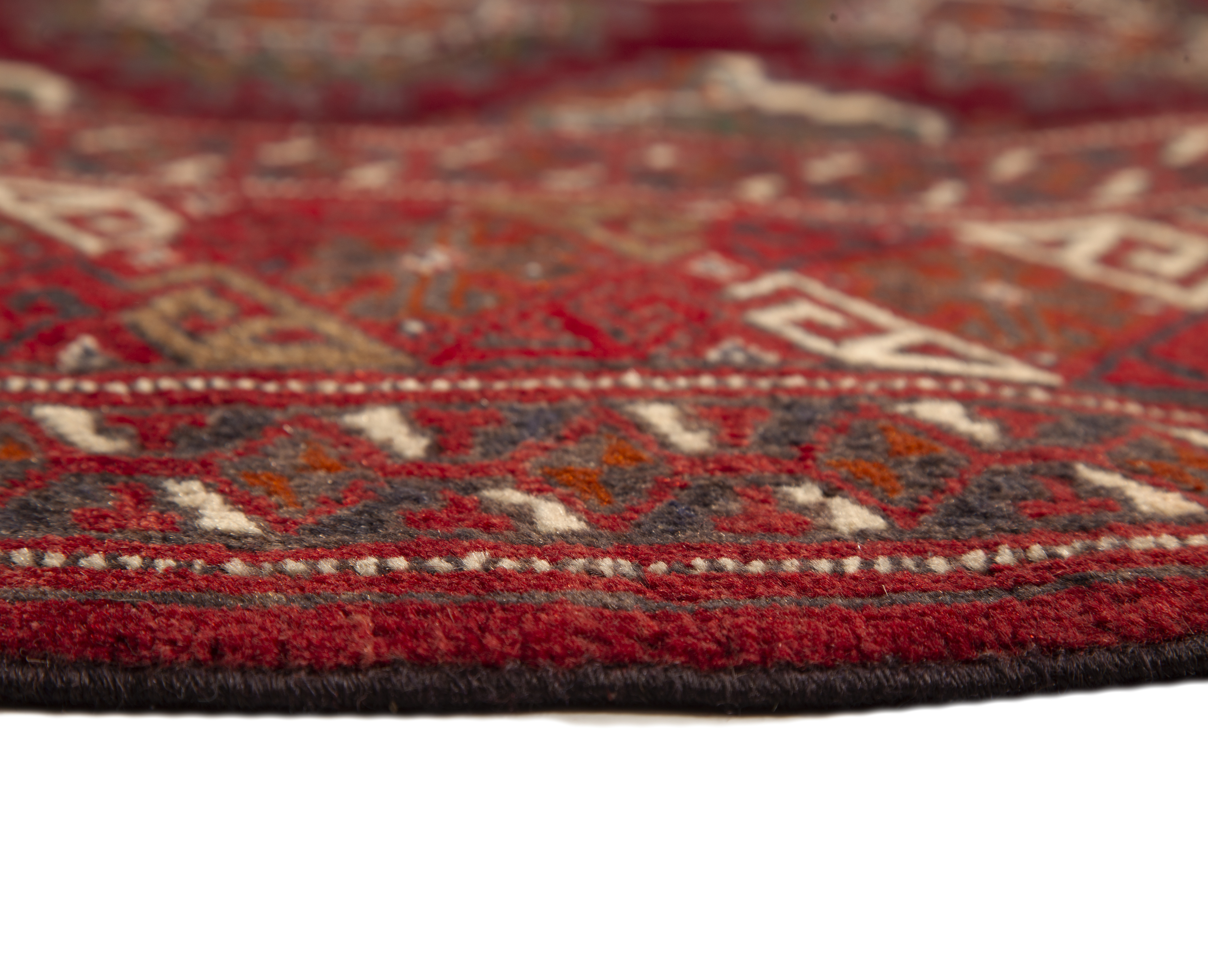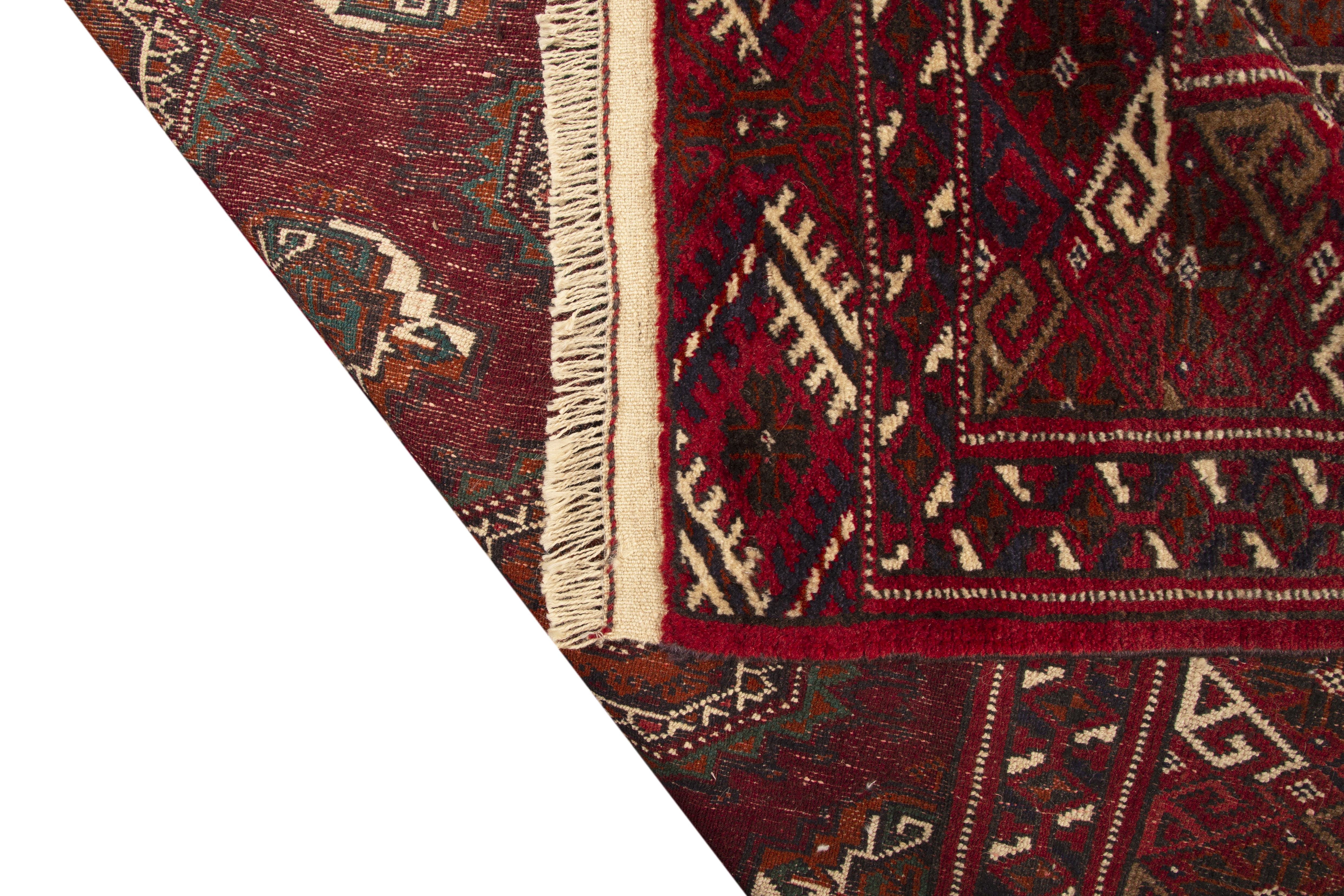 The construction of Turkmen rugs is unique in the Persian weaving world: woven entirely in wool - pile, warp, and weft - using the Persian asymmetrical knot at high densities on portable horizontal looms, these rugs achieve a silky-smooth pile surface of extraordinary refinement. The all-wool construction gives Turkmen rugs a flexibility and warmth unlike the stiffer cotton-foundation rugs of city and village weaving centers, with a pile that seems almost liquid in its smoothness.