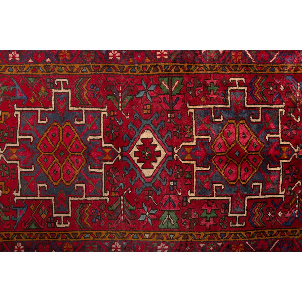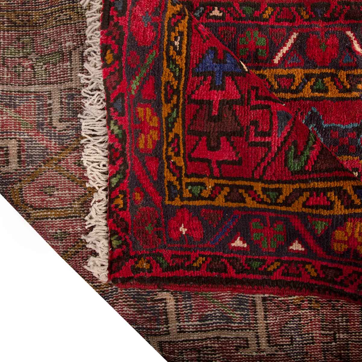 This hand-knotted Semi Antique Meshkin rug from Ardabil - 11x3 ft - presents a compelling Geometric composition woven in Crimson, Green, a living record of one of Persia's great regional weaving traditions. Natural dyes - derived from madder root, indigo plant, walnut husks, pomegranate rind, and other botanical and mineral sources traditional to Persian dyeing practice - produce the warm, complex color palette that distinguishes authentic Persian hand-knotted rugs from synthetic or machine productions. These colors develop beauty and depth with every year of aging and use, growing richer and more nuanced over the decades in a way that no synthetic dye can approach.
