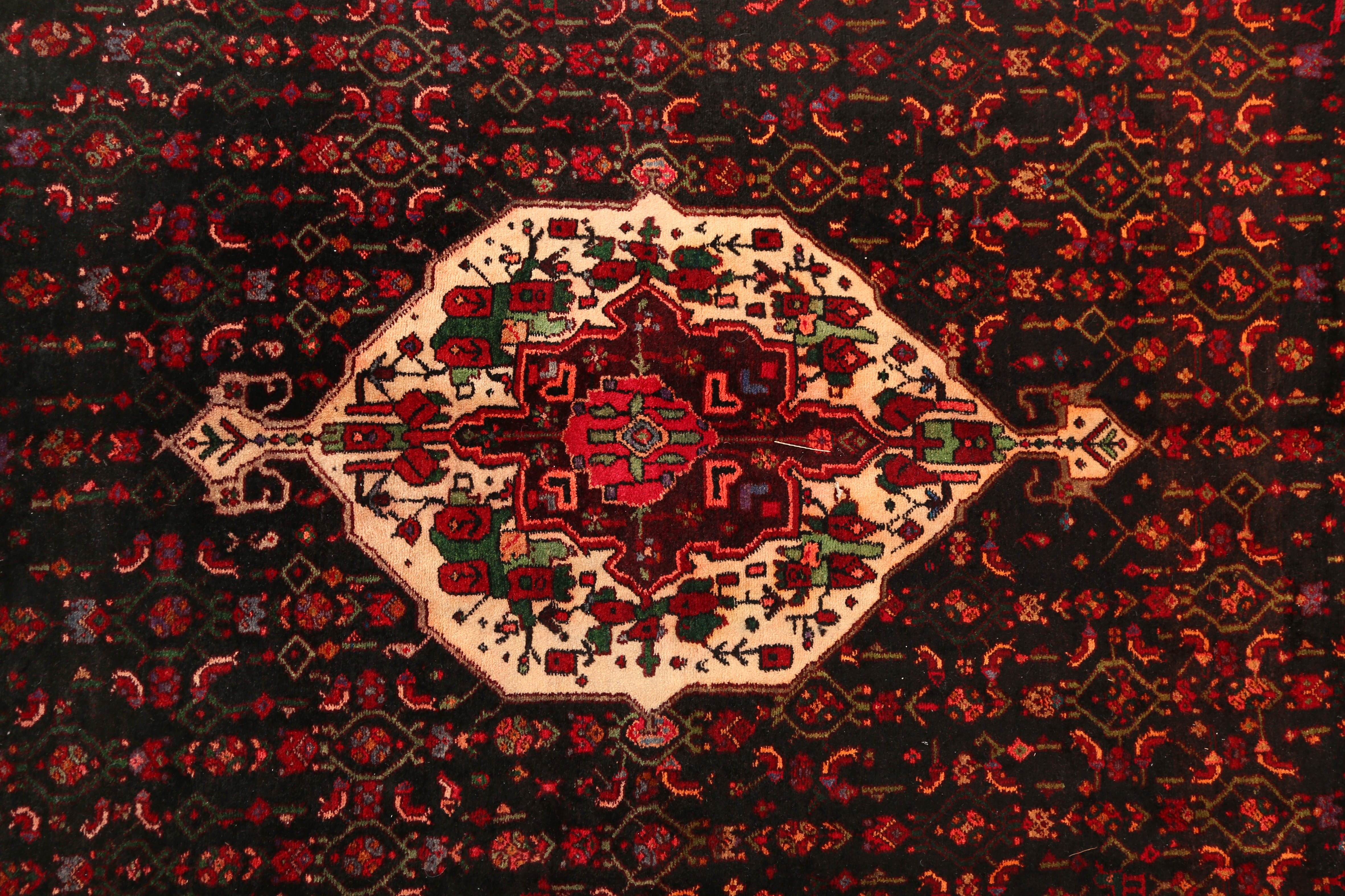 Common designs: Medallion (Toranj), Herati (Mahi).