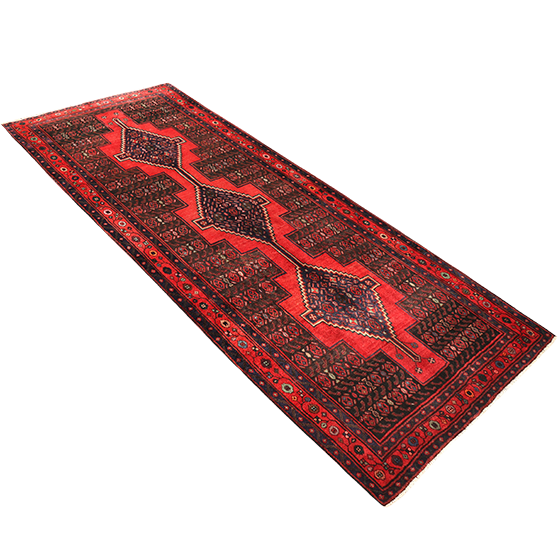 This magnificent semi antique Bijar Persian runner measures 11'7" x 4'11", presenting a captivating medallion design in rich crimson and dark red hues that dance alongside deep navy blue and elegant ivory accents. Dating back 40-60 years, this exceptional piece showcases the legendary durability and artistic mastery of Kermanshah province's most celebrated weavers, who have perfected their craft through generations of meticulous hand-knotting traditions.