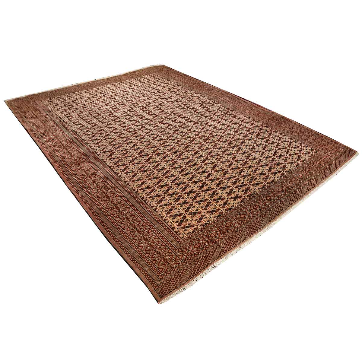 Turkmen Persian Rug 12x9 ft - Geometric Semi Antique Wool Silk Hand Knotted | SKU 110122