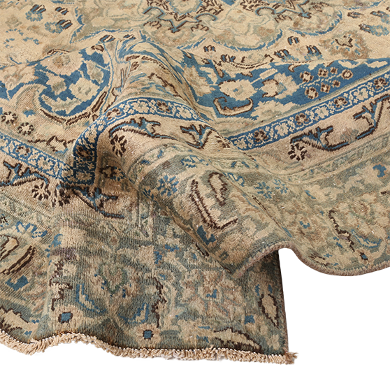 Vacuum gently without a beater bar once a week in the direction of the pile. Rotate the rug every 6 to 12 months to ensure even wear. For spills, blot immediately with a clean white cloth without rubbing. For deep cleaning, use a professional Persian rug cleaning specialist who uses hand-washing methods appropriate for natural wool fibers and aged dyes. Avoid steam cleaning or harsh chemical treatments.
