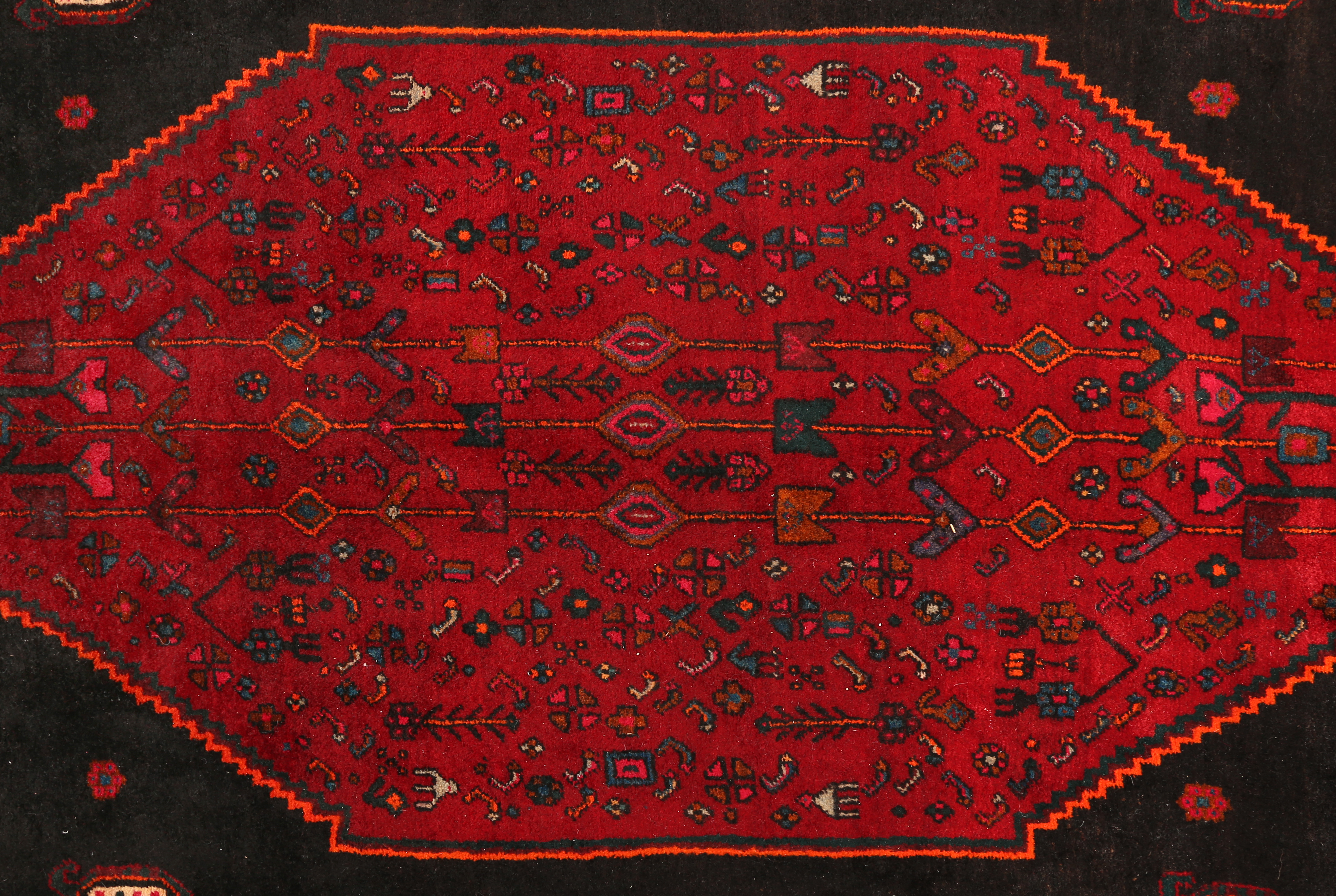 is a particular Bijar specialty, rendered here with a clarity and precision that reflects both the high knot density of the construction and the quality of the design cartoons used in the best Bijar workshops.