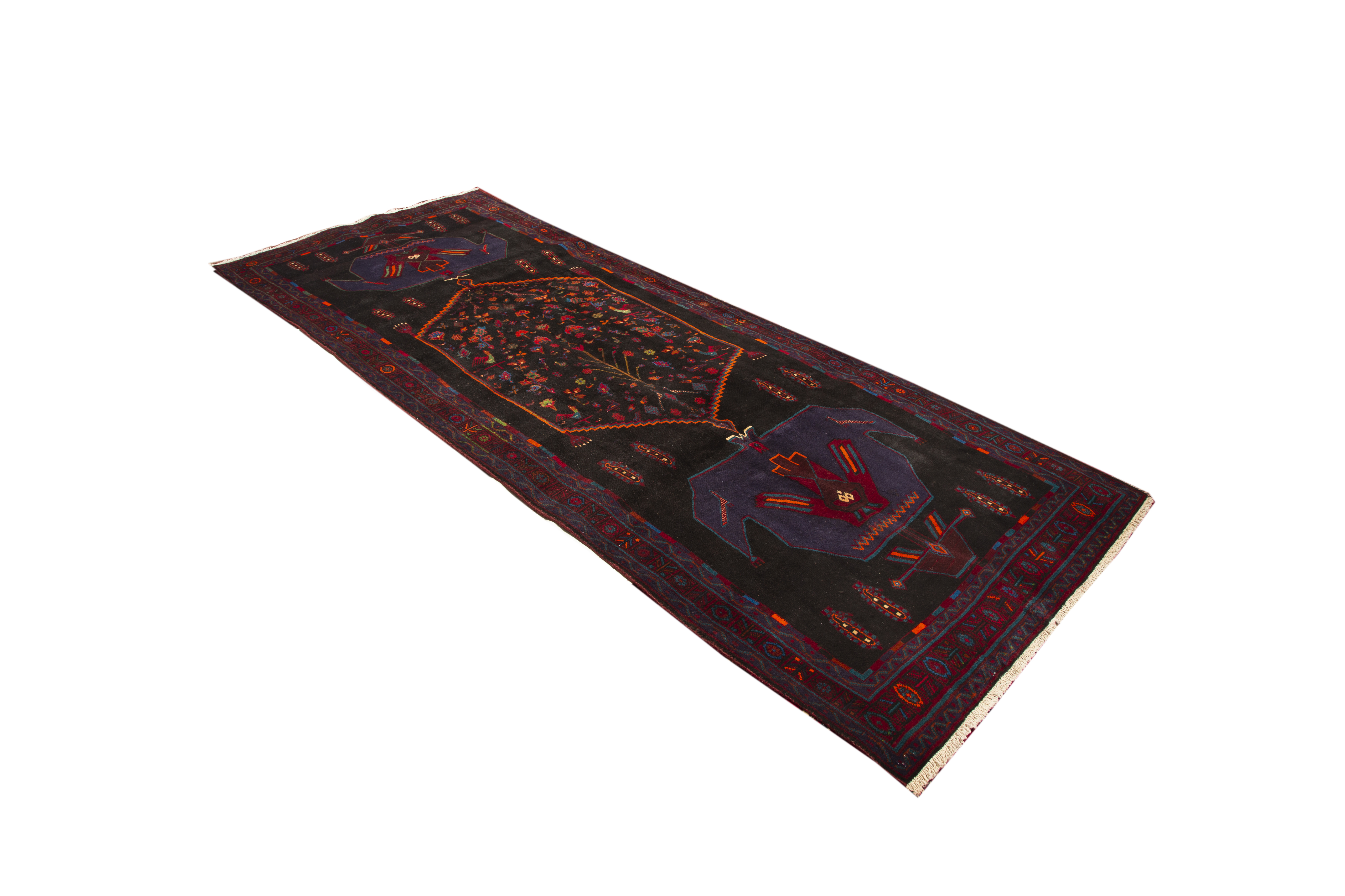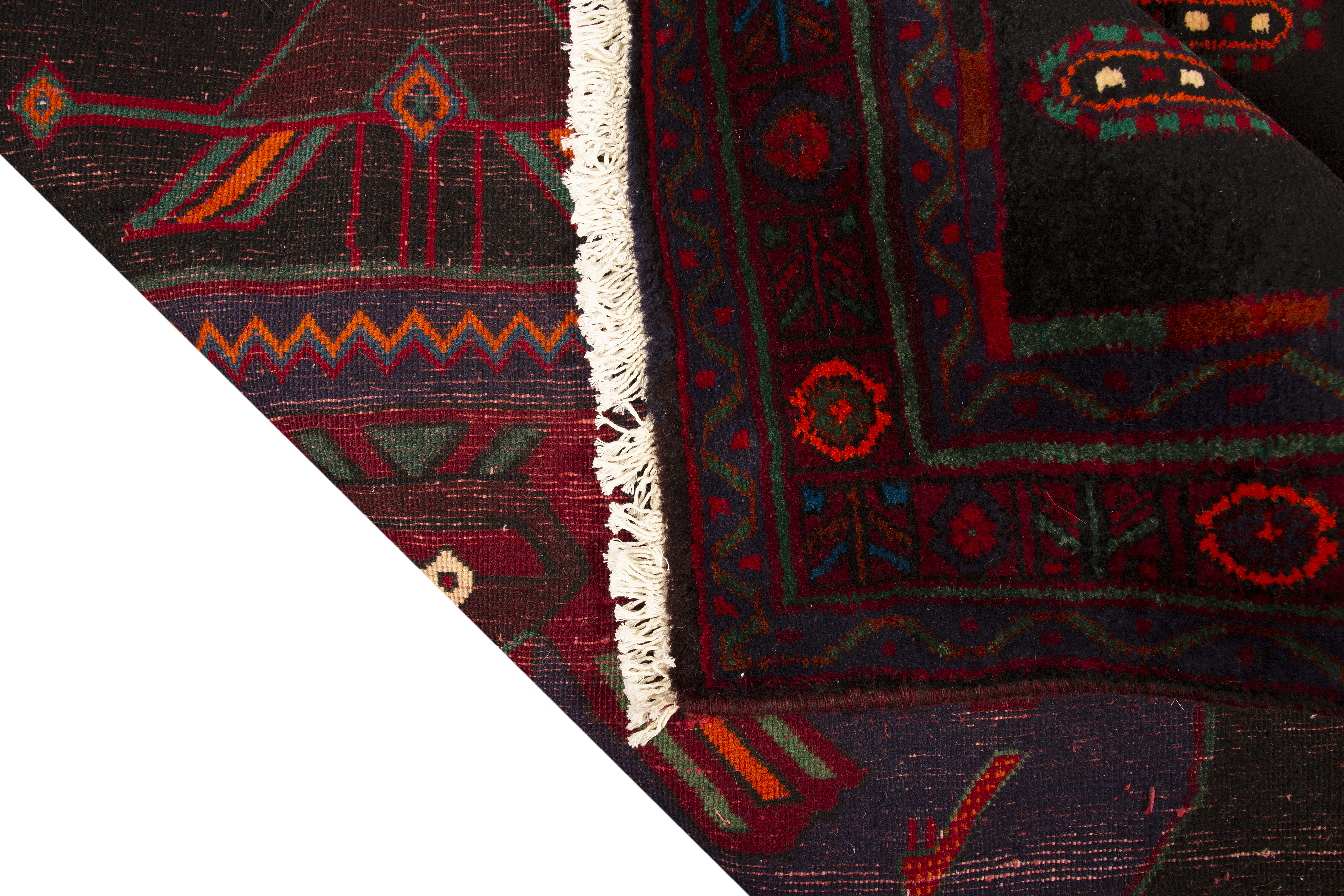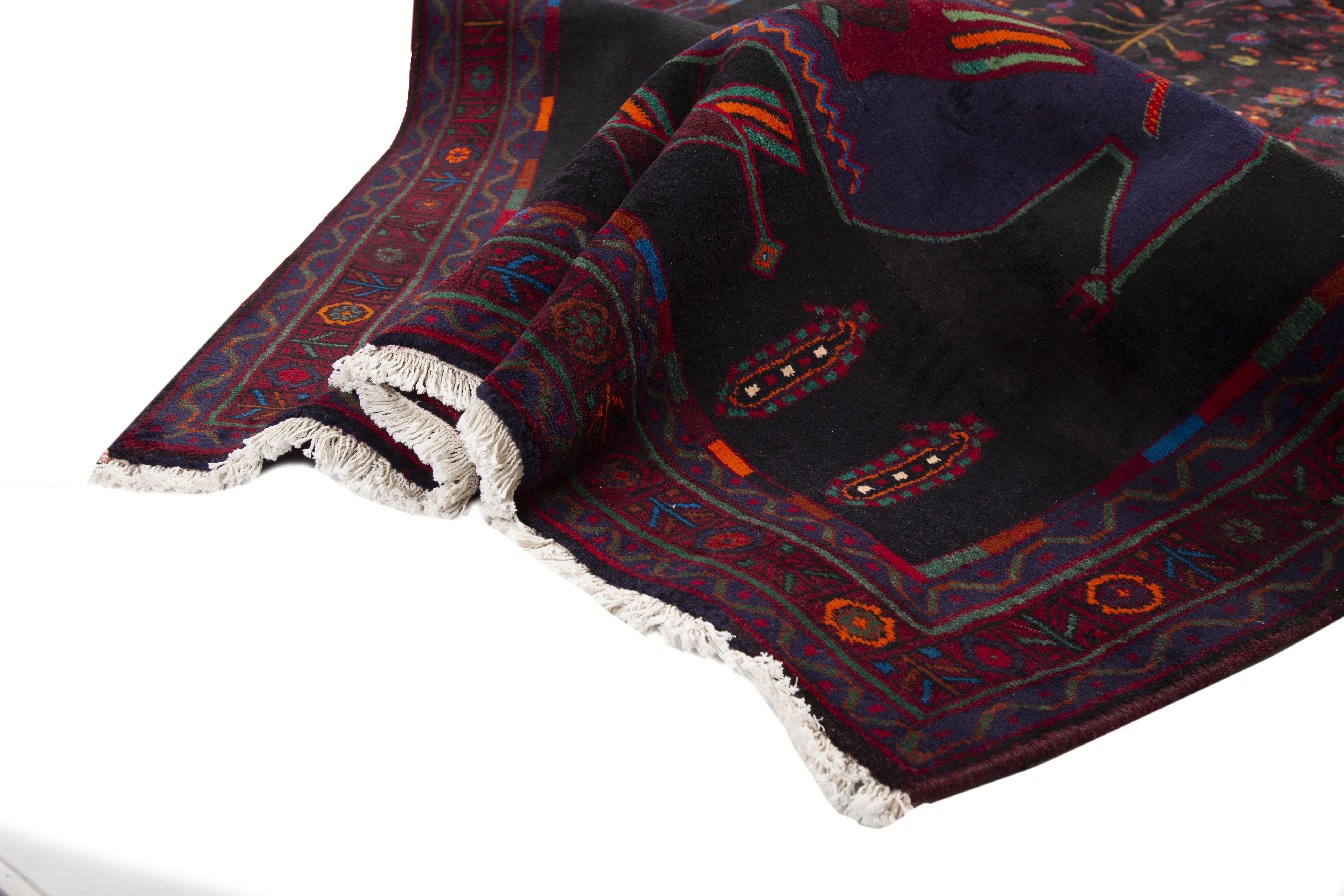 The color palette of dark red, black, crimson, and navy blue creates an atmosphere of luxury and sophistication that works beautifully in both traditional and contemporary interiors. This substantial 12'6" x 5'1" foot size makes it perfect for dining rooms, entryways, or as a statement piece in larger living spaces. Los Angeles Home of Rugs recognizes this rug's exceptional quality and authentic Persian heritage, offering it as part of their carefully curated collection of genuine antique and semi antique pieces.