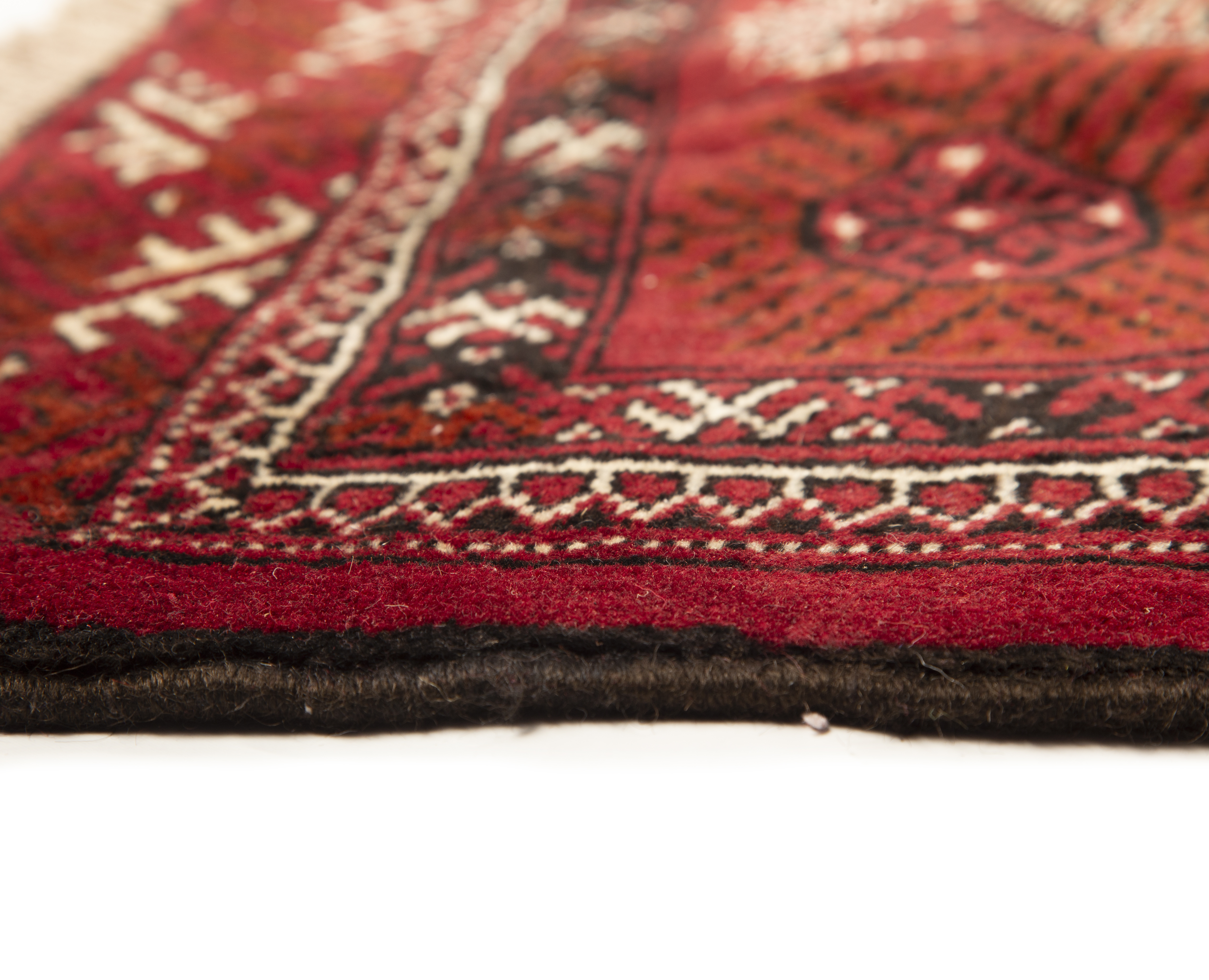 The color palette of Turkmen rugs is the most restricted and most immediately recognizable in all of Persian weaving. The characteristic deep, warm burgundy red - achieved with madder and pomegranate dyes processed by techniques developed over centuries - covers the majority of the field, contrasted with near-black secondary elements, dark blue accents, and the warm ivory of undyed wool. This palette reflects not commercial calculation but genuine cultural identity, the natural expression of a tribal aesthetic developed in the landscapes of Central Asia.