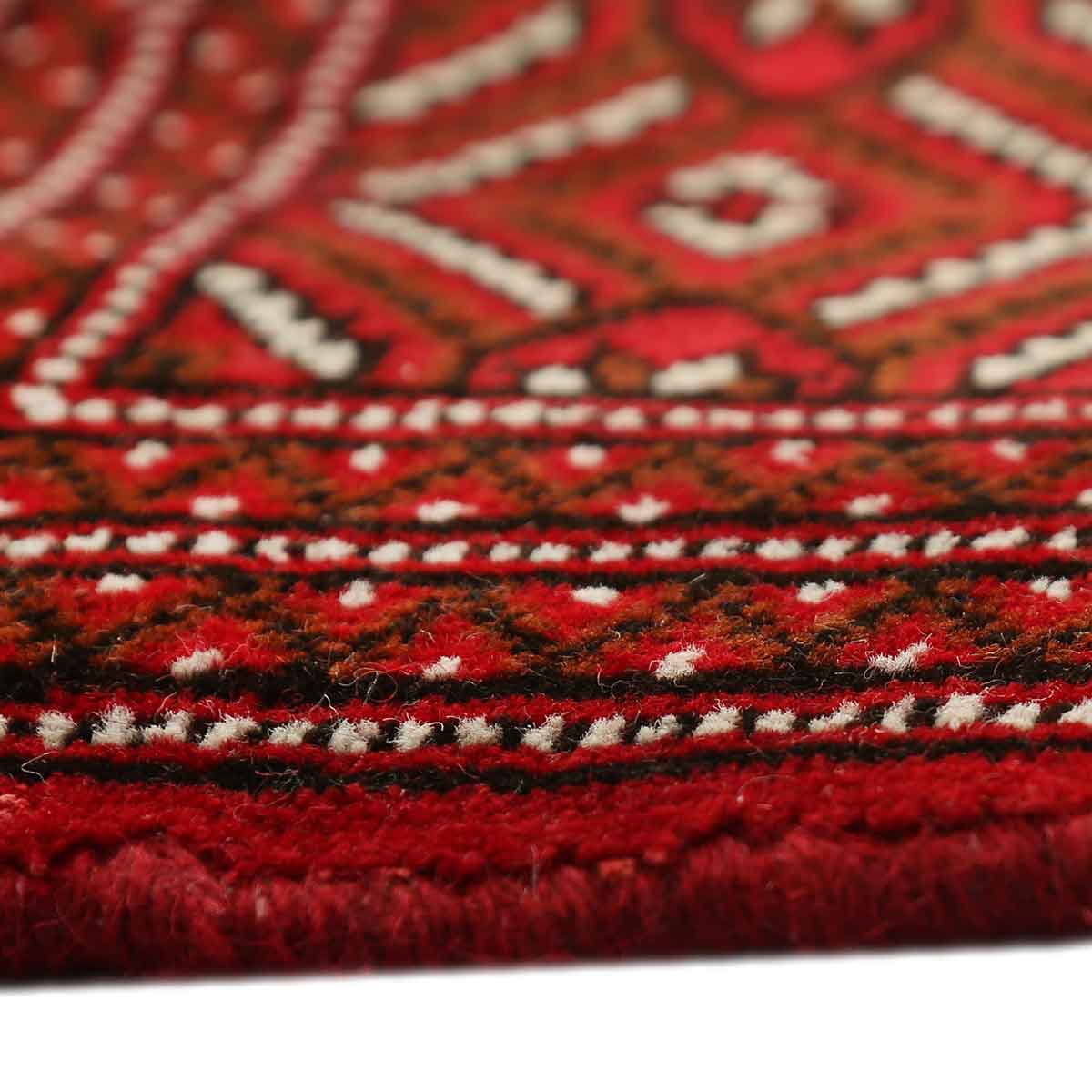 The construction of Turkmen rugs is unique in the Persian weaving world: woven entirely in wool - pile, warp, and weft - using the Persian asymmetrical knot at high densities on portable horizontal looms, these rugs achieve a
