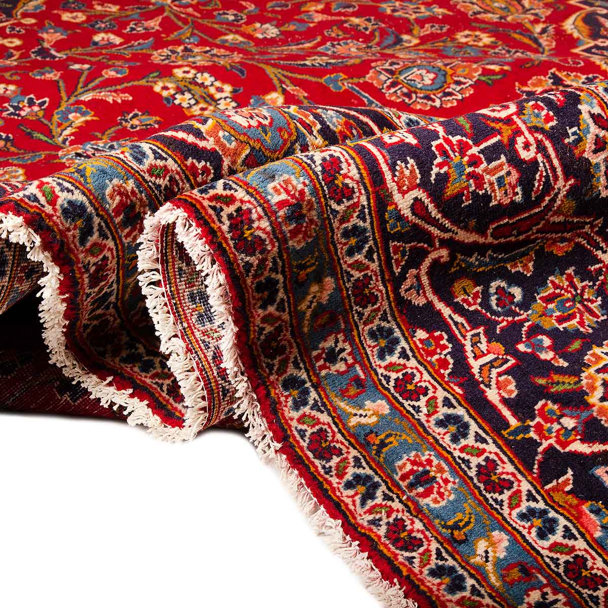 The technical standards of Kashan rug production are among the highest in the world of hand-knotted textiles. Skilled weavers working from meticulously prepared design cartoons tie individual Persian asymmetrical knots at