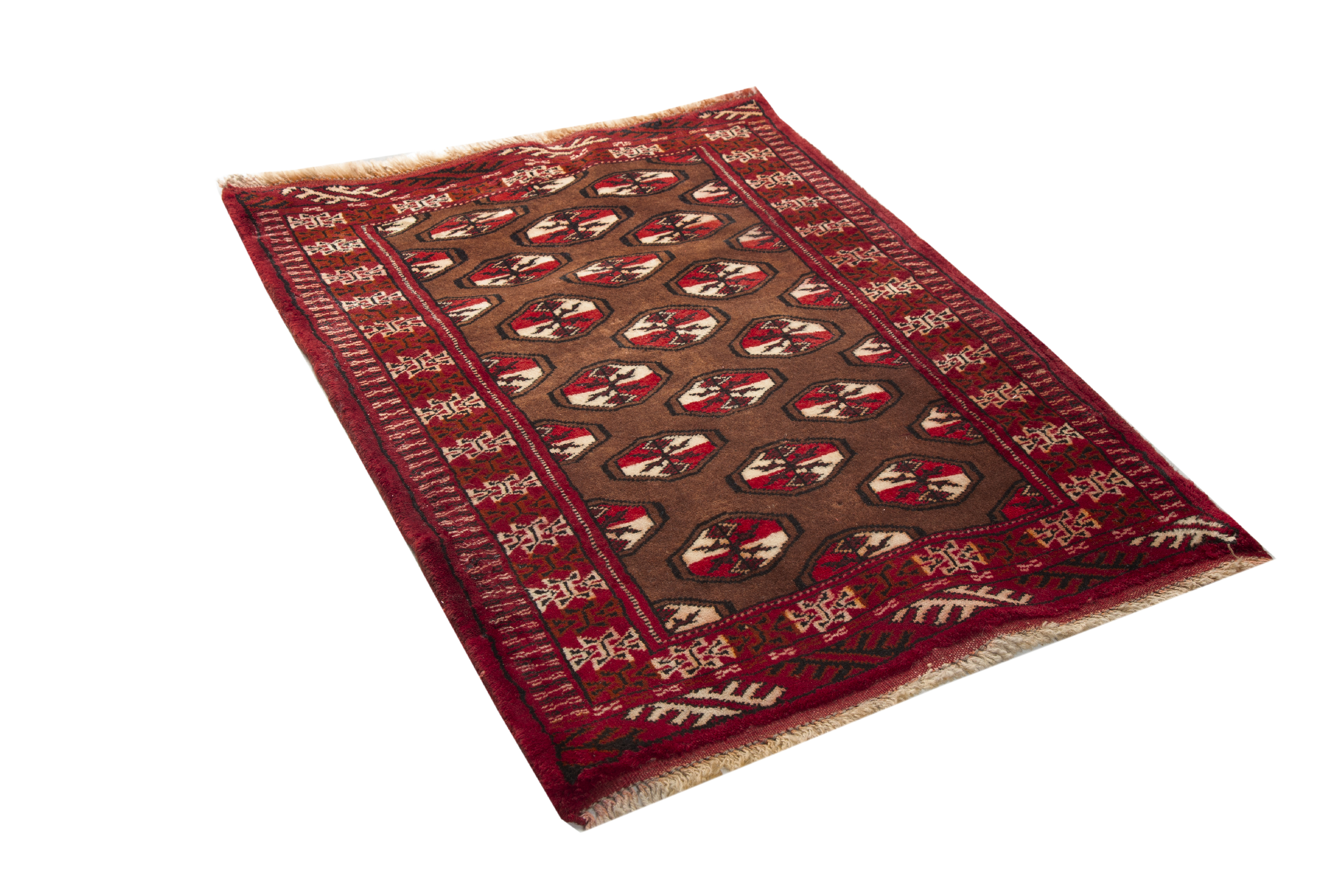 aspect of their composition. Produced by the Tekke, Yomut, Ersari, Salor, and other tribal groups of northeastern Persia and Central Asia, Turkmen rugs are instantly recognizable by their signature gul motifs - boldly geometric
