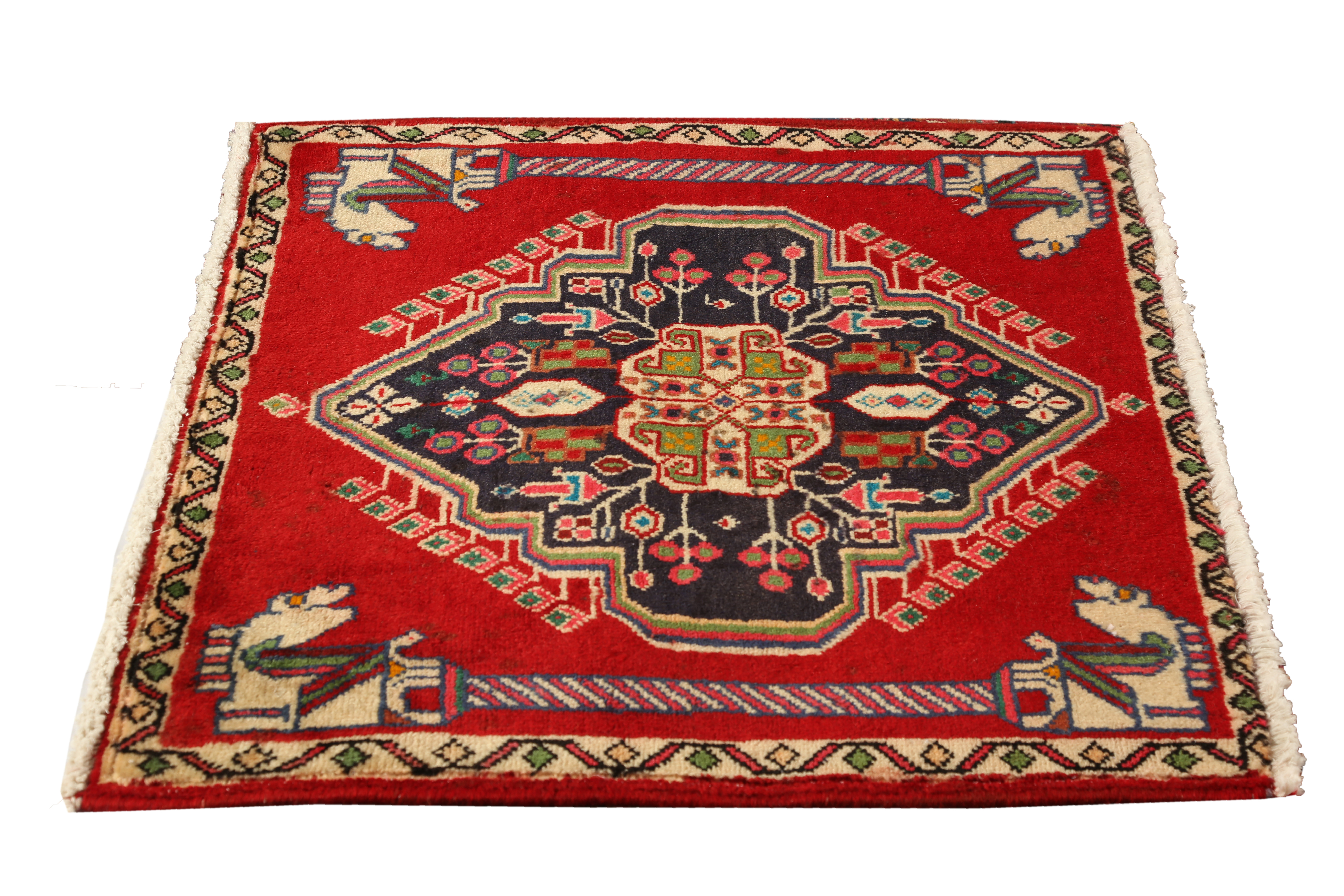 A superb example of Shiraz weaving heritage, this 2x2 ft Semi Antique rug showcases the celebrated Geometric design of Fars, rendered here in rich tones of Blue, Red with the authority of long tradition. Collectors and interior designers prize Shiraz rugs for qualities that commercial productions can never replicate: the sense of genuine human intention behind every design decision, the evidence of individual creative personality in every asymmetry and color choice, and the direct connection to one of the world's great living tribal art traditions. A Shiraz rug is not merely a floor covering - it is a genuine cultural artifact of enduring beauty and historic significance.