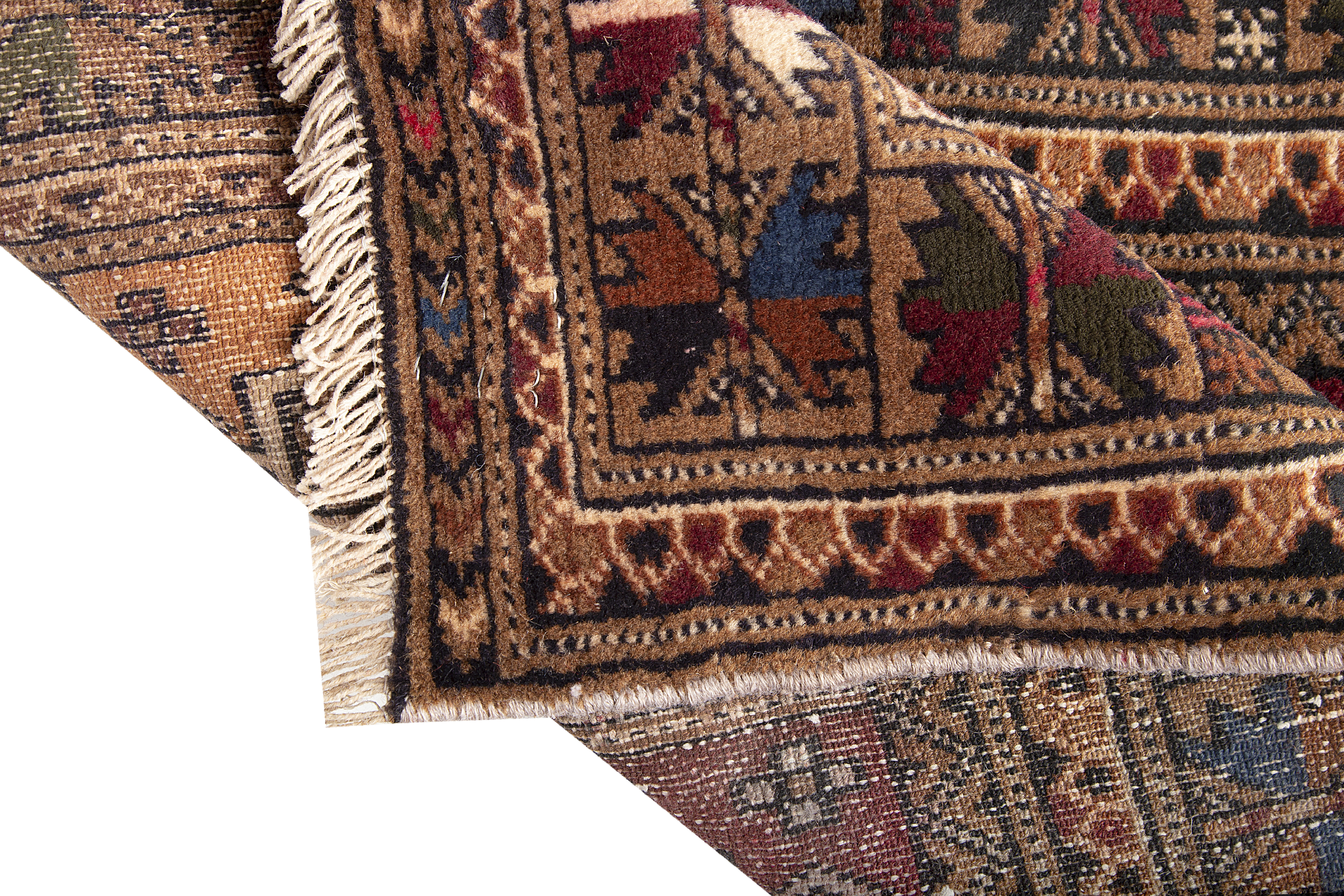 Measuring 3x2 ft and featuring a Geometric design in Crimson, Navy Blue, this Semi Antique Turkmen rug embodies the weaving culture of Golestan, Khorasan - a tradition of exceptional artistry and enduring craft excellence. The