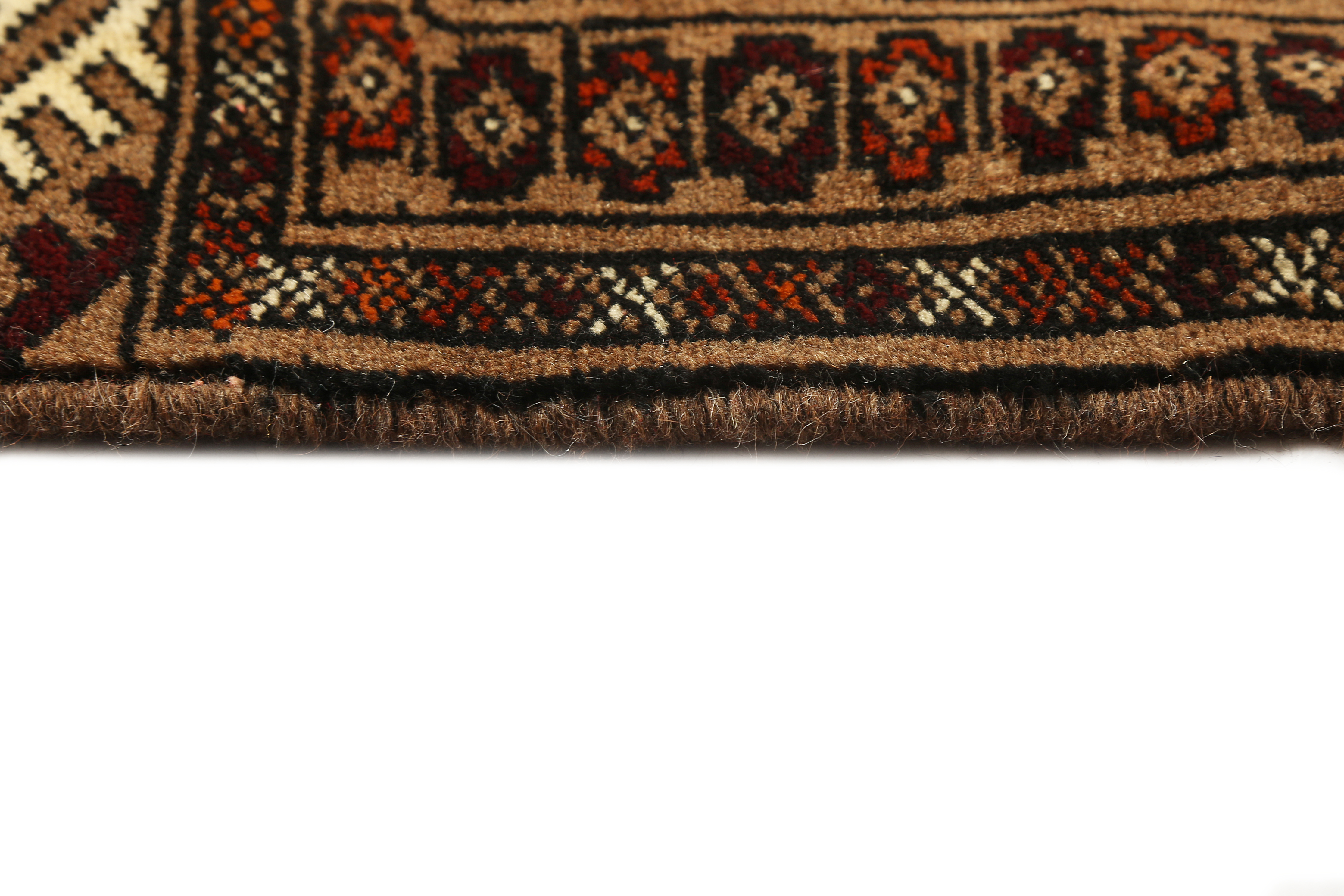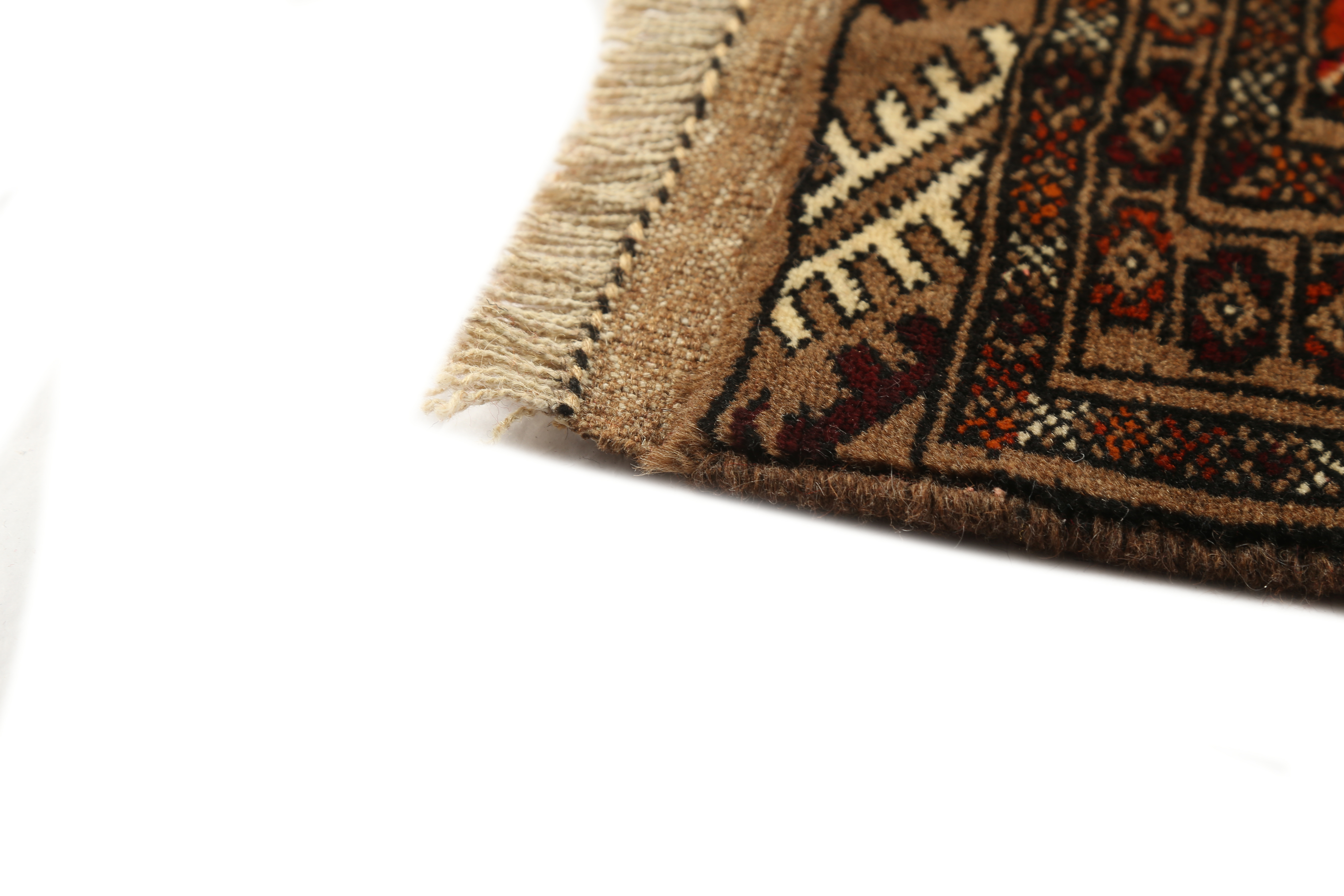 Turkmen Persian Rug 3x2 ft - Geometric Semi Antique Wool Silk Hand Knotted | SKU 110155