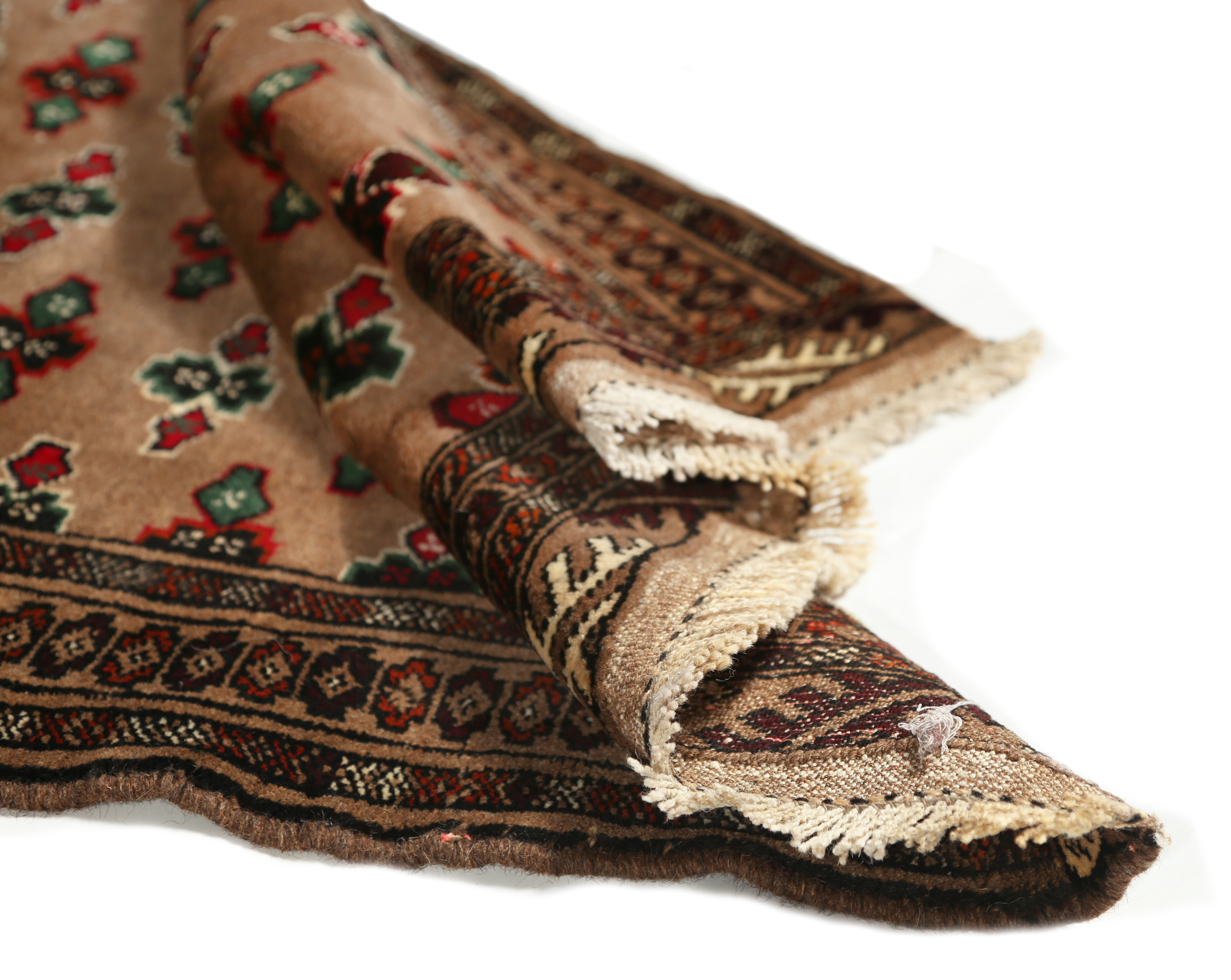 The construction of Turkmen rugs is unique in the Persian weaving world: woven entirely in wool - pile, warp, and weft - using the Persian asymmetrical knot at high densities on portable horizontal looms, these rugs achieve a silky-smooth pile surface of extraordinary refinement. The all-wool construction gives Turkmen rugs a flexibility and warmth unlike the stiffer cotton-foundation rugs of city and village weaving centers, with a pile that seems almost liquid in its smoothness.