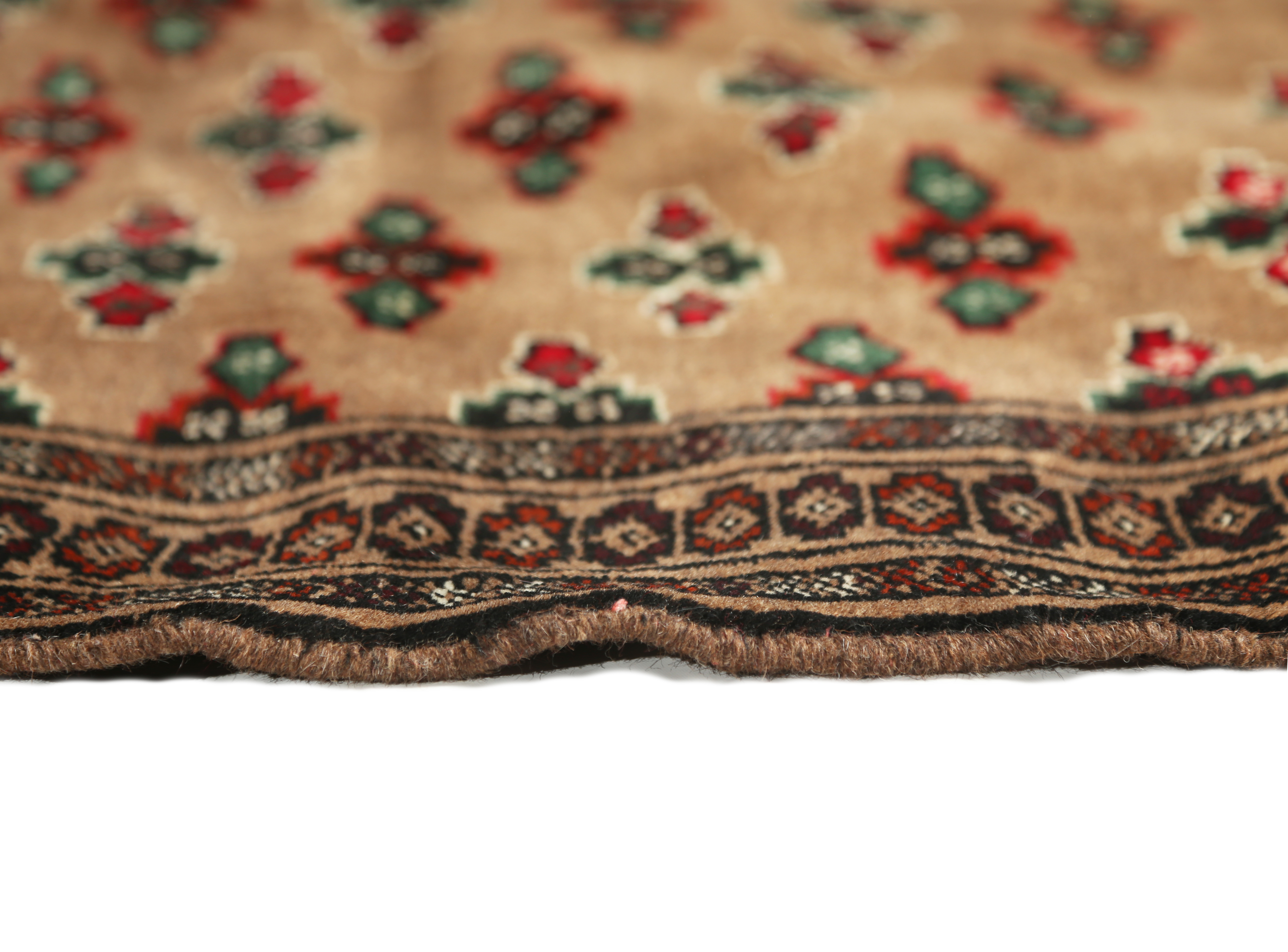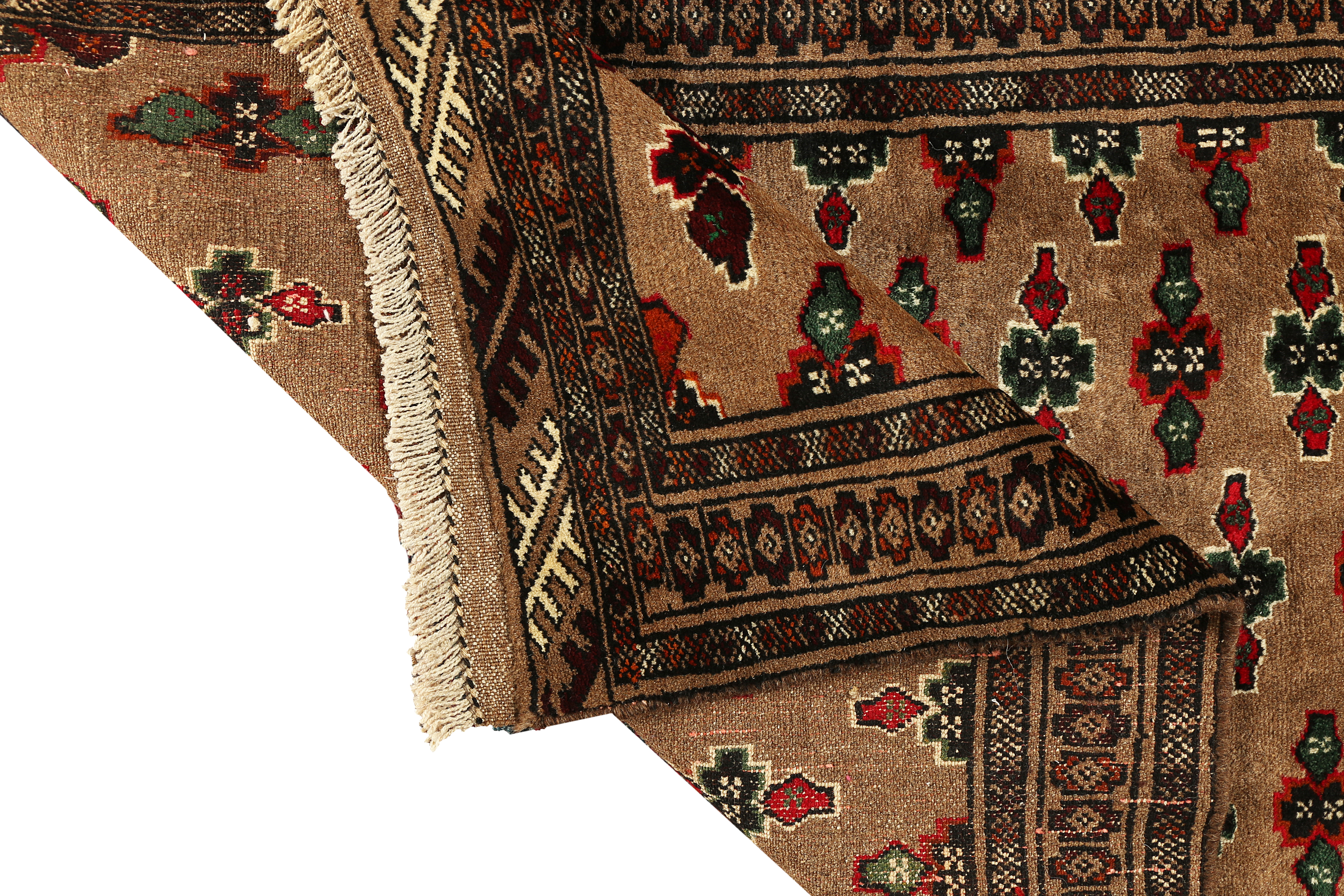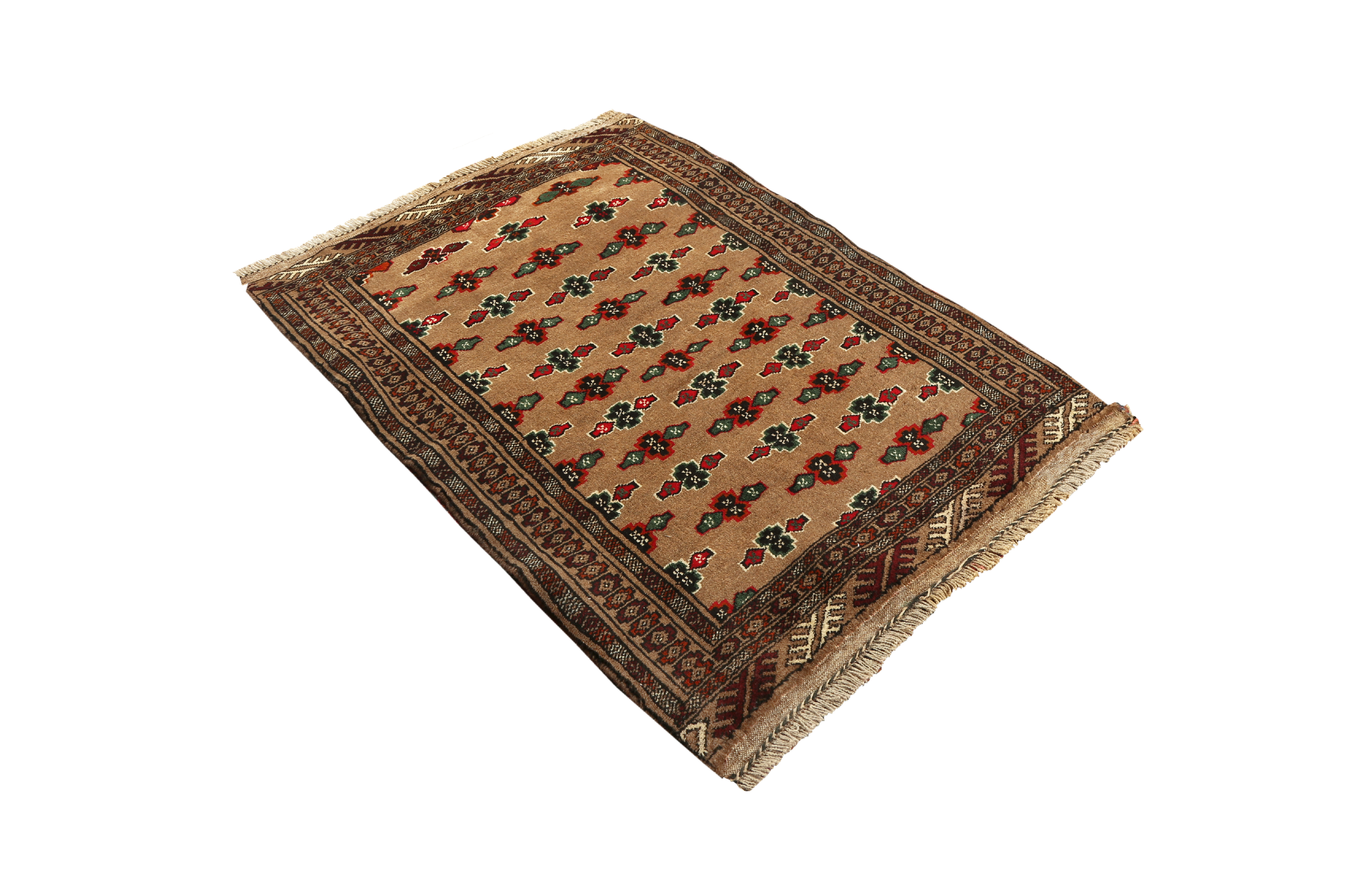 This Semi Antique Turkmen rug, measuring 3x2 ft, presents a distinguished Geometric composition in Crimson, Navy Blue - hallmark characteristics of the Golestan, Khorasan weaving tradition at its finest. The gul - from the Persian word for flower - is the central and defining element of Turkmen tribal design, functioning simultaneously as a decorative motif, a tribal identifier, and a cultural symbol of belonging. Each of the major Turkmen tribes has its own distinctive gul form, developed and refined over centuries of weaving practice. The ability to identify and distinguish between a Tekke gul, a Yomut gul, and an Ersari gul is one of the fundamental pleasures of serious Turkmen rug collecting.