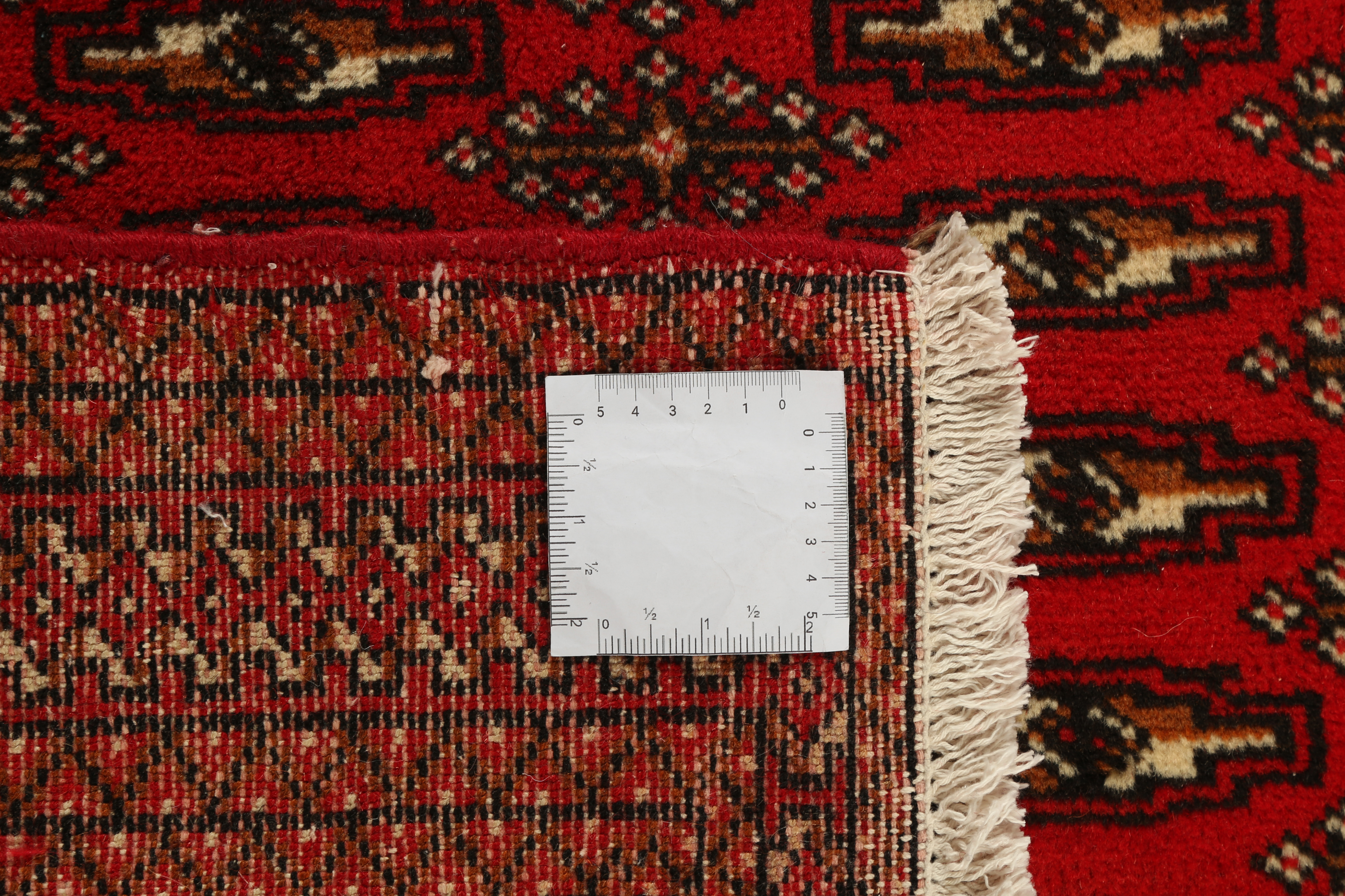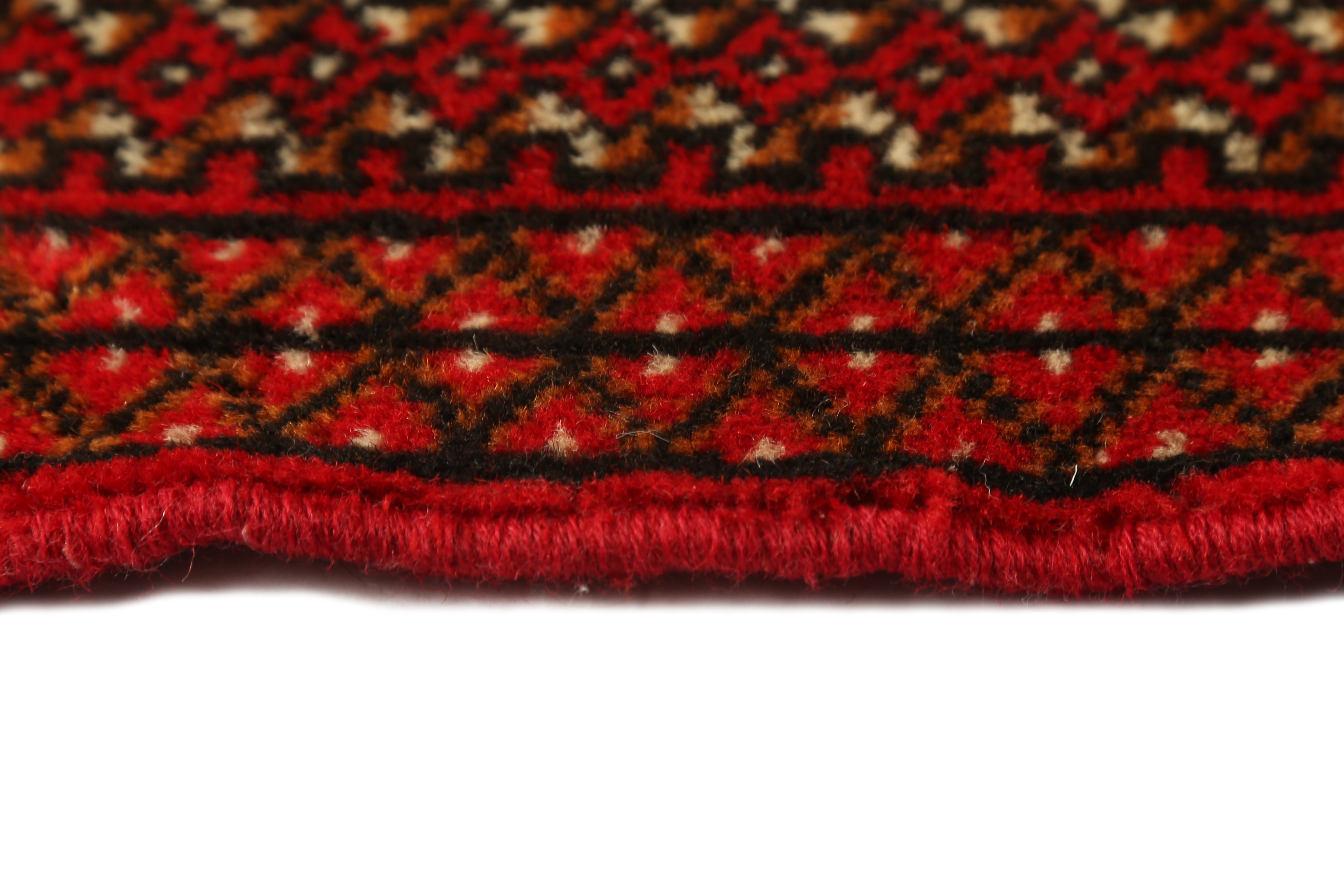 This Semi Antique Turkmen rug, measuring 4x1 ft, presents a distinguished Geometric composition in Crimson, Navy Blue - hallmark characteristics of the Golestan, Khorasan weaving tradition at its finest. The gul - from the Persian word for flower - is the central and defining element of Turkmen tribal design, functioning simultaneously as a decorative motif, a tribal identifier, and a cultural symbol of belonging. Each of the major Turkmen tribes has its own distinctive gul form, developed and refined over centuries of weaving practice. The ability to identify and distinguish between a Tekke gul, a Yomut gul, and an Ersari gul is one of the fundamental pleasures of serious Turkmen rug collecting.