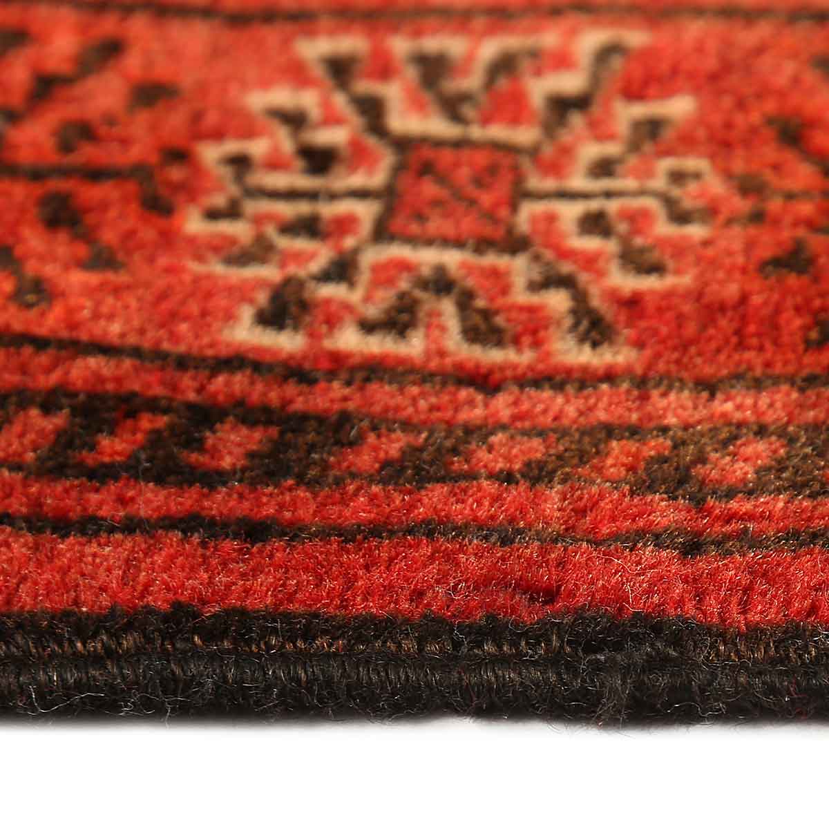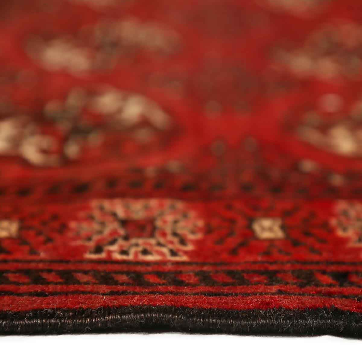 The intricate Vaghireh banded design creates rhythmic visual movement across the rug's surface, while the traditional Turkmen Gul medallions anchor the composition with their symbolic significance representing prosperity and tribal unity. As a one-of-a-kind hand-knotted masterpiece, this rug elevates any interior with its authentic Persian craftsmanship and timeless appeal, making it perfect for entryways, compact living spaces, or as an accent piece beneath furniture groupings.