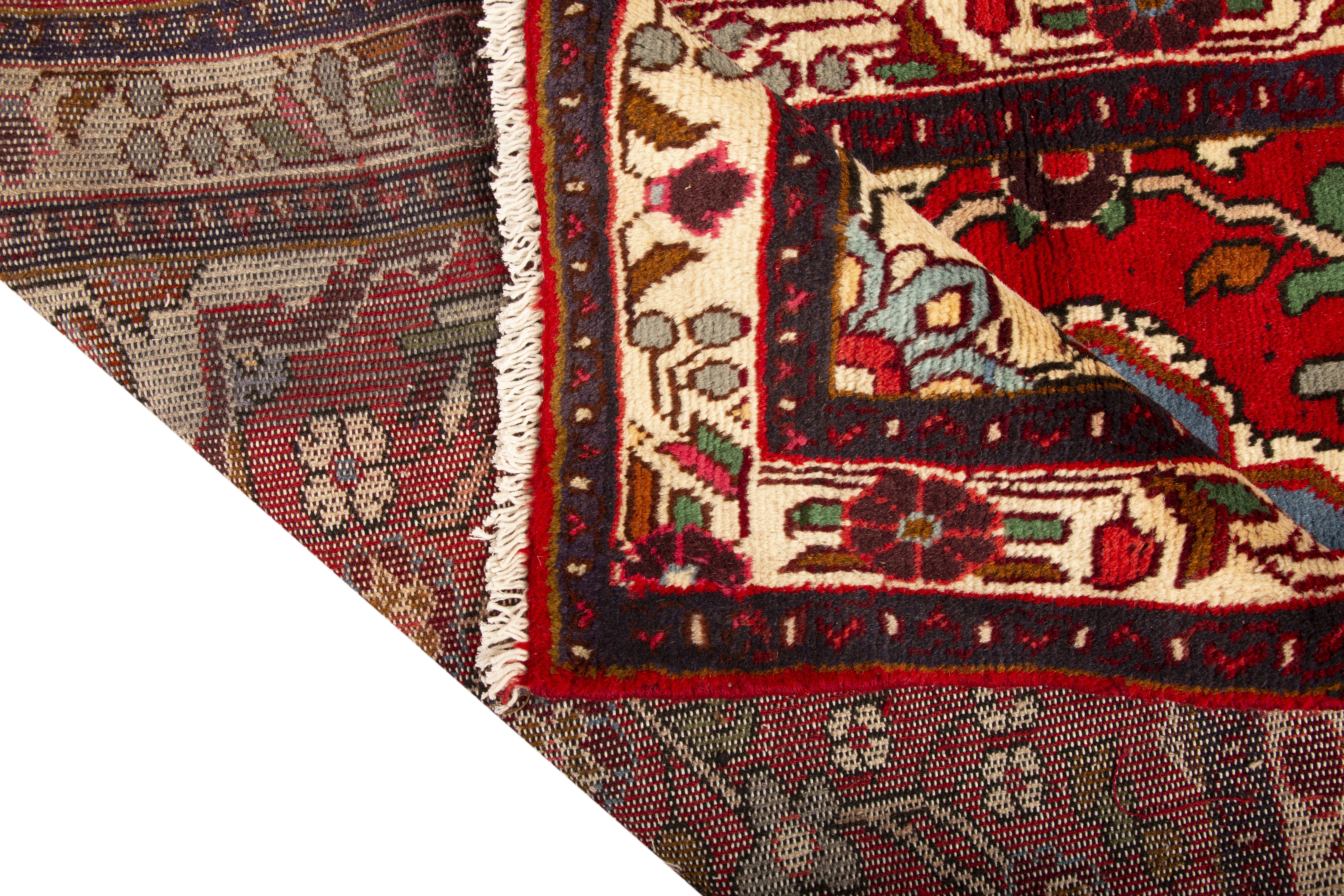 Measuring 4x2 ft and featuring a Herati design in Red, Blue, this Semi Antique Hamadan rug embodies the weaving culture of Hamadan - a tradition of exceptional artistry and enduring craft excellence. The extraordinary variety
