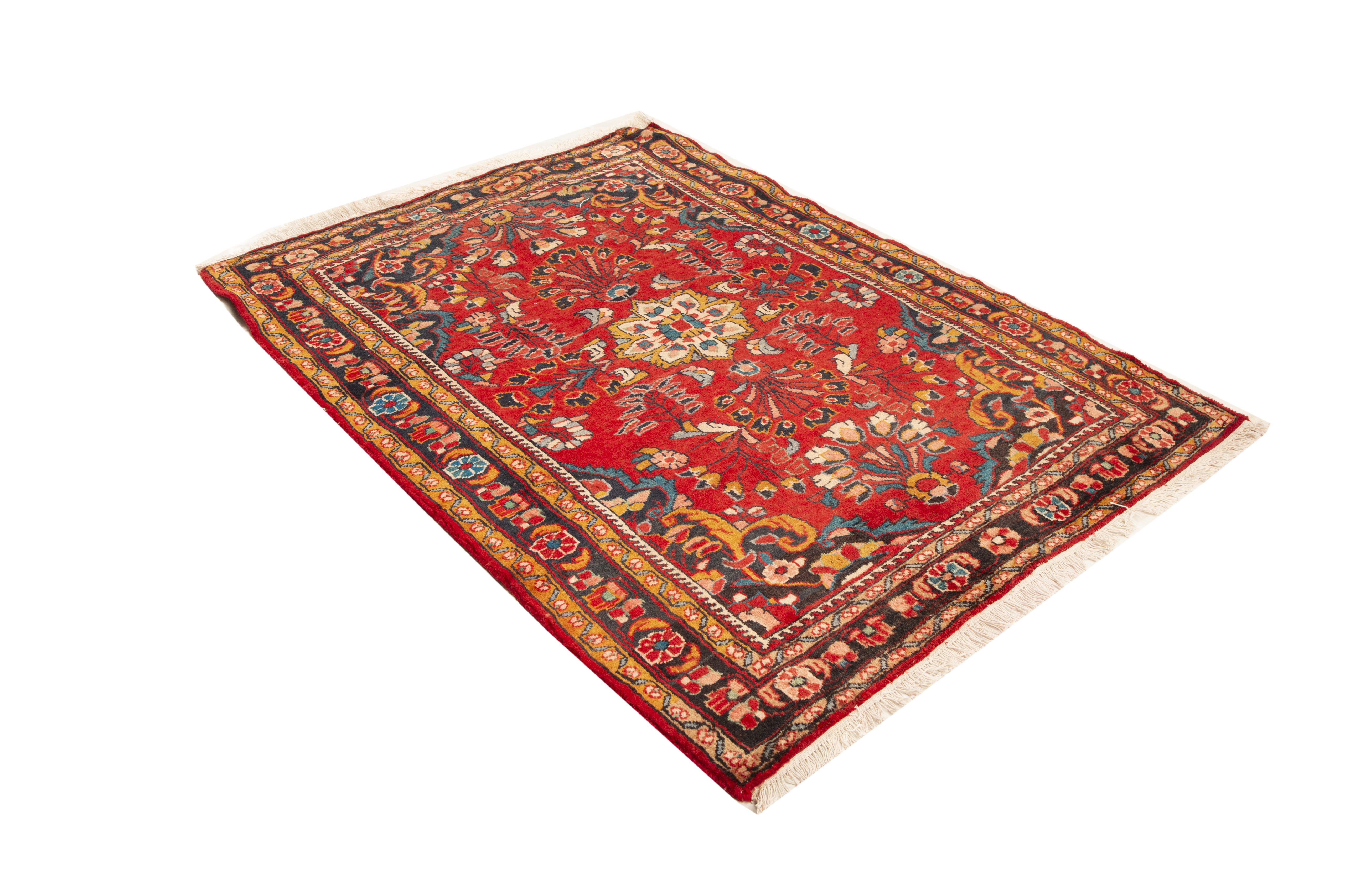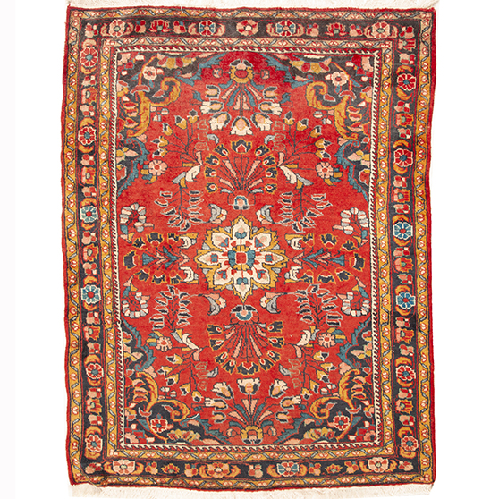 With its Herati design in Red, Blue and its generous 4x3 ft format, this Semi Antique Hamadan rug represents the authentic weaving heritage of Hamadan, where rugs of this quality have been hand-knotted for generations. Hamadan rugs represent one of the great weaving traditions of western Persia, produced across hundreds of individual villages in the ancient Hamadan Province whose rug-making heritage stretches back over two thousand years. The city of Hamadan - one of the oldest continuously inhabited cities in the world - has served as a trading and collection center for the surrounding village production for centuries, lending its name to a broad and remarkably varied family of hand-knotted rugs.
