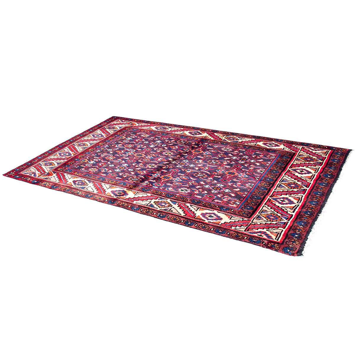 This hand-knotted Semi Antique Hamadan rug from Hamadan - 4x3 ft - presents a compelling Herati composition woven in Red, Blue, a living record of one of Persia's great regional weaving traditions. Each Hamadan rug is the product of a single weaver or small family workshop rather than a large commercial operation, giving every piece a genuinely individual character. Minor variations in color intensity, slight differences in pile height, and small personal interpretations of traditional patterns are hallmarks of authentic village handcraft - marks of individuality that distinguish genuine Persian village rugs from workshop or machine productions of any kind.