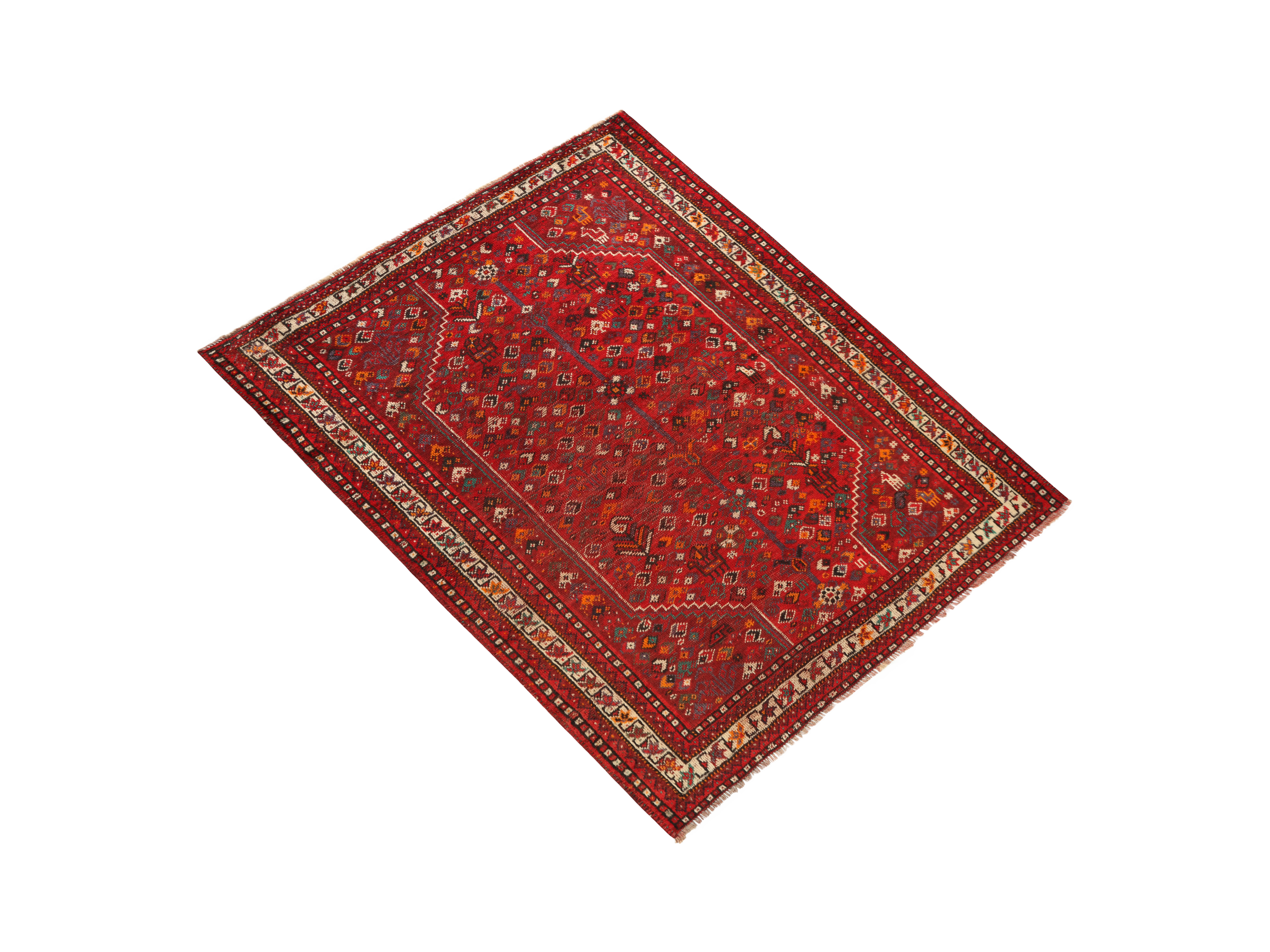 At Los Angeles Home of Rugs, we recognize this exceptional piece as a one-of-a-kind hand-knotted masterwork that will elevate any interior space with its authentic Persian heritage and timeless beauty. The compact 5'0" x 3'6" foot dimensions make this semi-antique Shiraz perfect for creating an intimate conversation area, anchoring a reading nook, or serving as a stunning accent piece in an entryway, study, or bedroom, where its rich madder red foundation will infuse warmth and sophistication while the geometric patterns add visual interest and cultural depth to your home's design narrative.