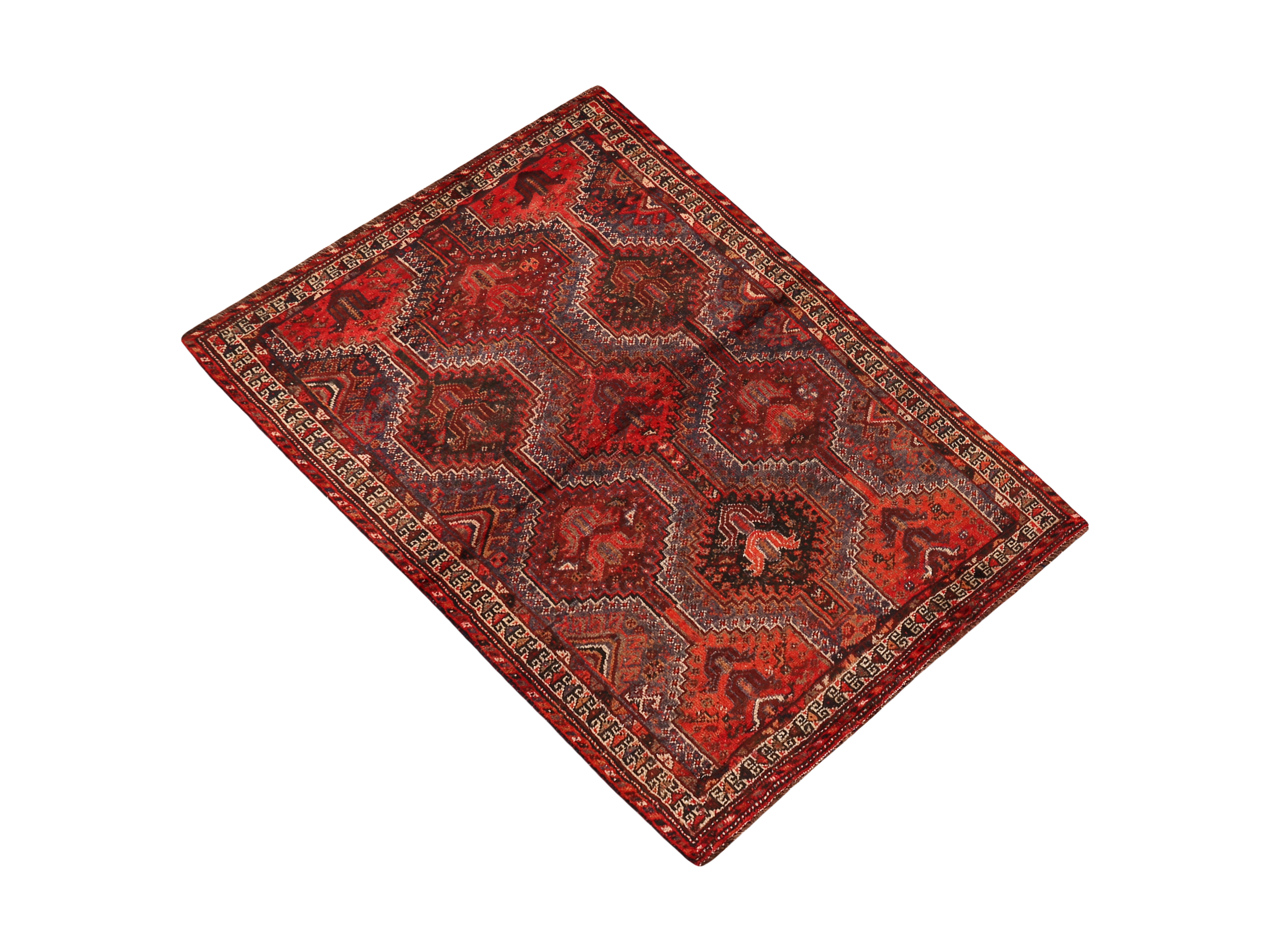 The design language of Shiraz rugs is boldly geometric and deeply personal. Diamond medallions, hooked lozenges, stylized boteh motifs, and tribal animal figures combine in compositions of remarkable vitality. Because each weaver