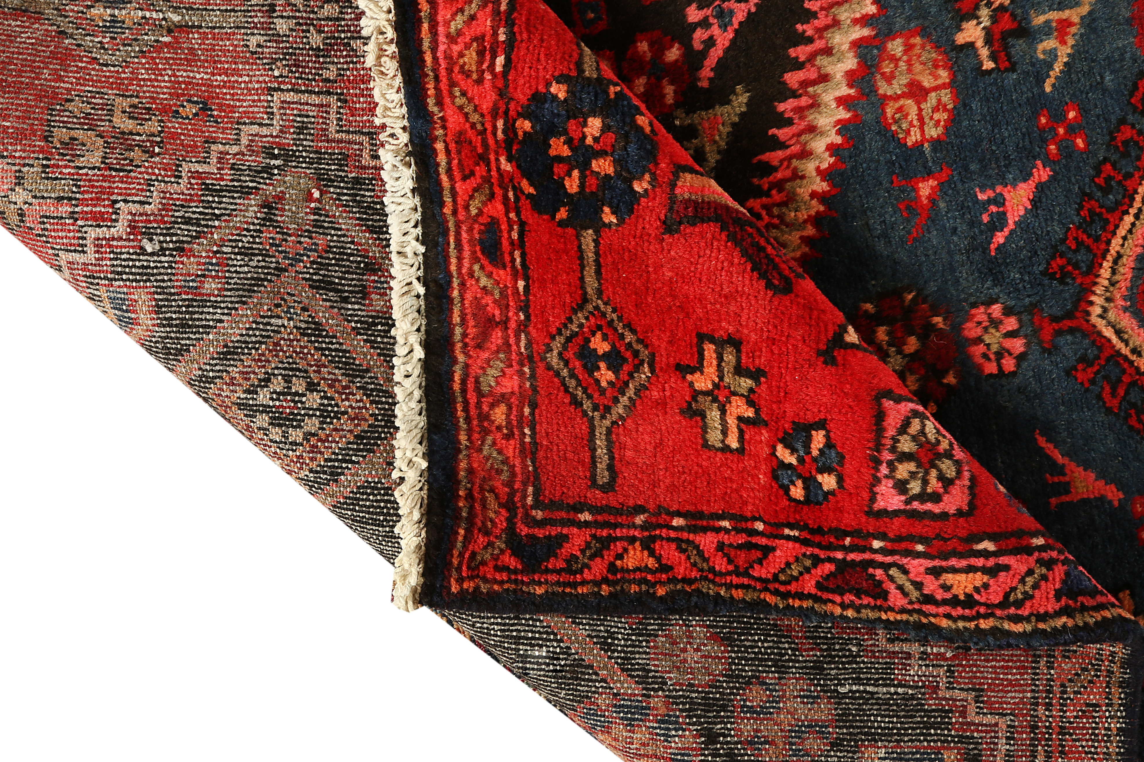 Village weavers across the Hamadan region work primarily with the Turkish symmetrical knot on cotton foundations, producing a dense, durable pile structure well-suited to the rigors of daily household use. The most common design traditions include the beloved Herati pattern - a rosette enclosed within a diamond of lancet leaves - alongside bold geometric medallion compositions and all-over Mina Khani floral repeat patterns drawn with the confident, slightly abstracted style of village handcraft.