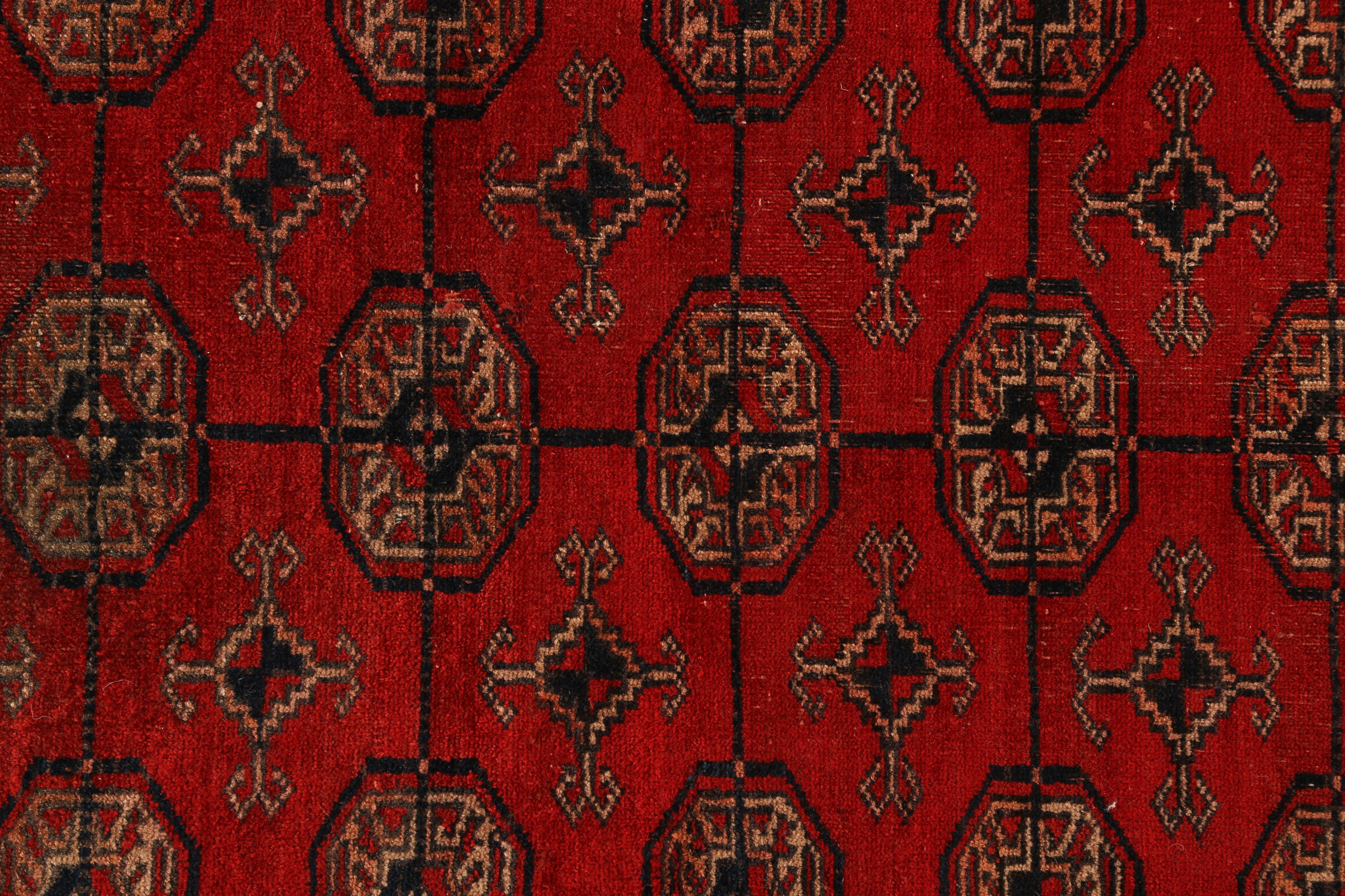 This exceptional semi antique Baluch Persian rug at 5'5" x 3'4" showcases the masterful artistry of nomadic weavers from Sistan and Baluchestan province, where generations of skilled craftsmen have preserved ancient weaving traditions spanning centuries. The rich tapestry of red, dark red, and burgundy creates a commanding presence, while accents of black, cream, beige, and brown provide sophisticated depth and balance to this remarkable piece.