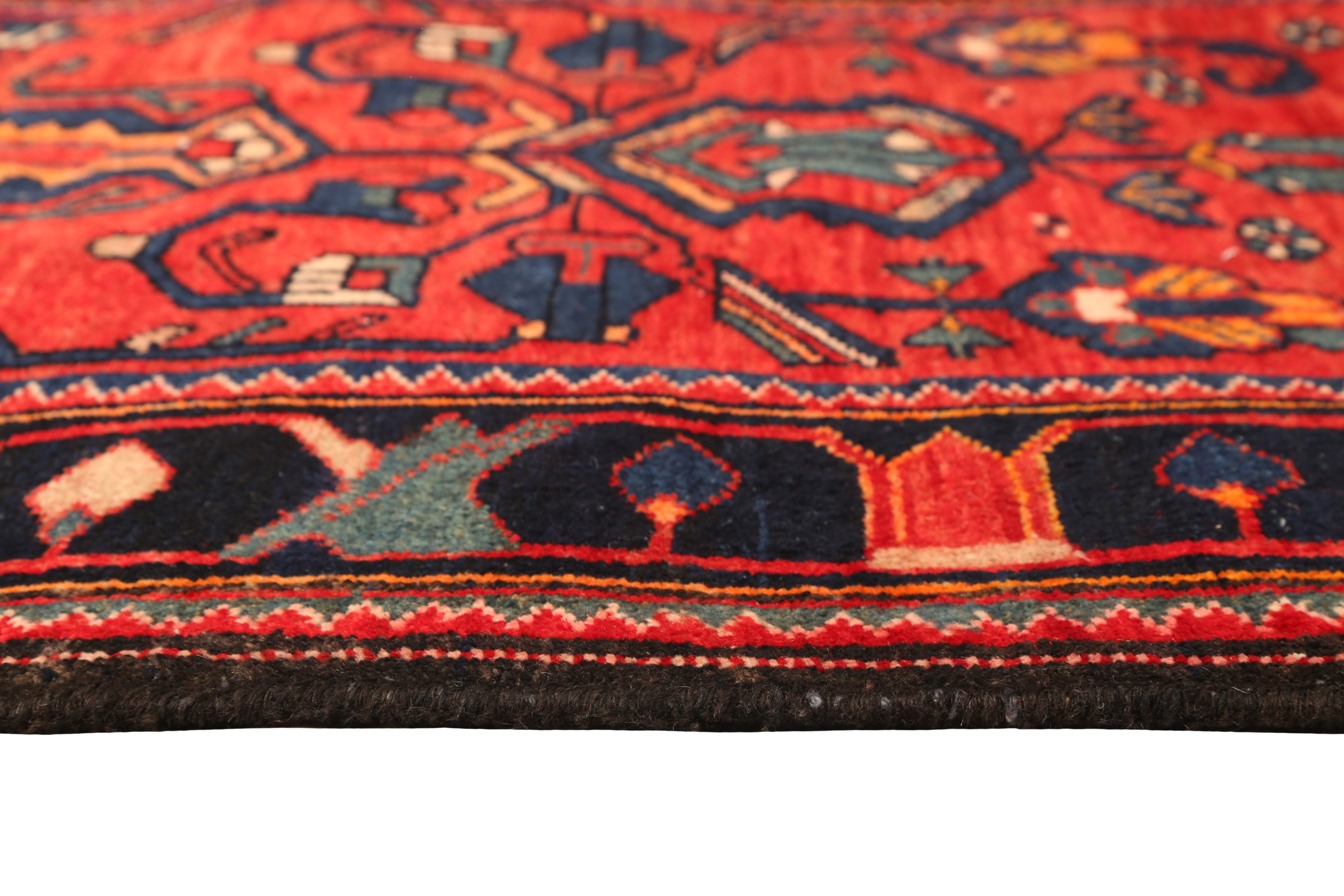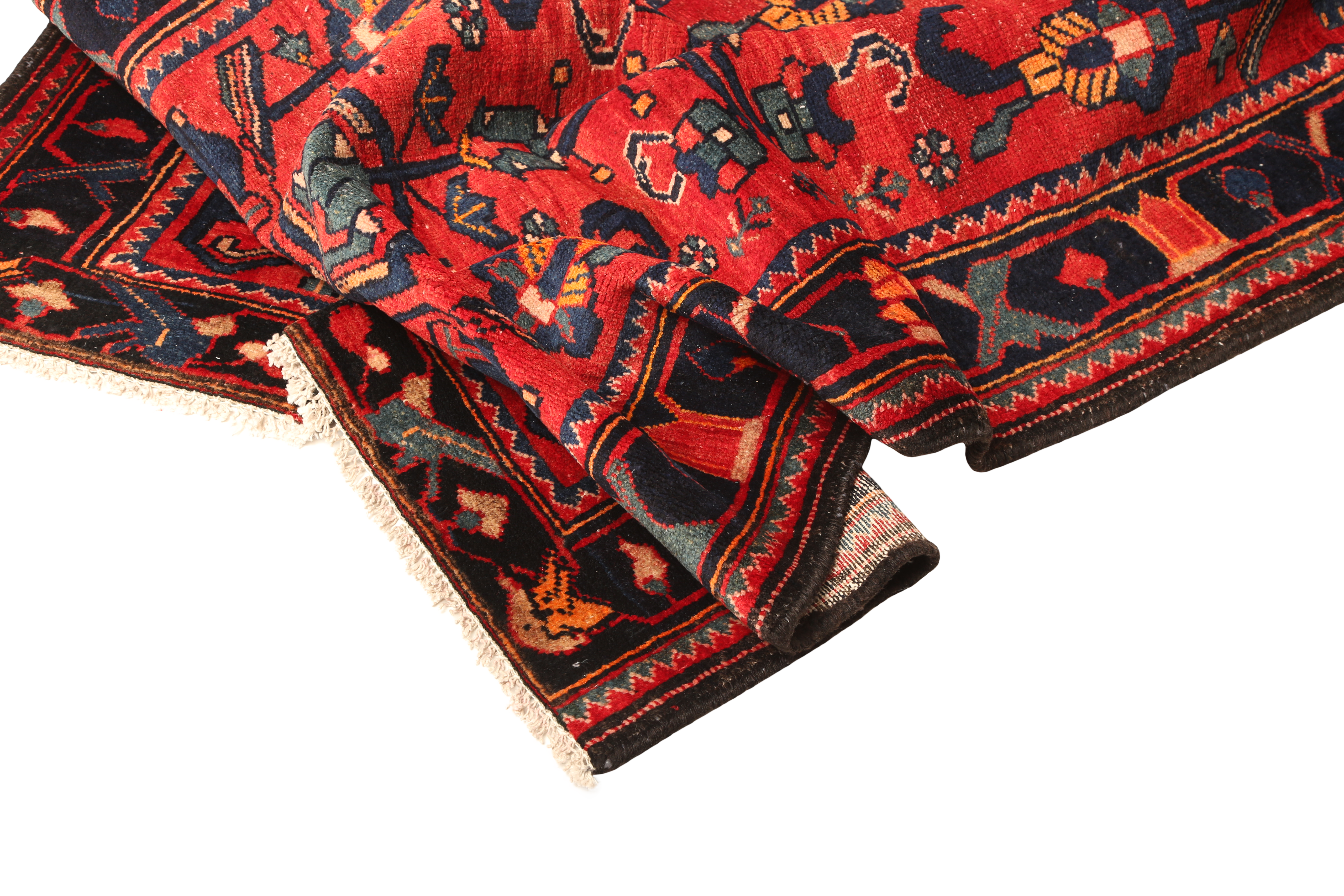 The sophisticated color palette speaks to the refined taste of Persian dye masters who achieved these lustrous tones using time-honored natural materials. The dominant madder red creates warmth and energy, while the navy blue provides grounding depth, and the cream, ivory, and gold highlights add luminous contrast that brings the intricate patterns to life. These colors mature beautifully with age, developing the rich patina that makes semi antique Persian rugs so highly prized by collectors and interior designers alike.