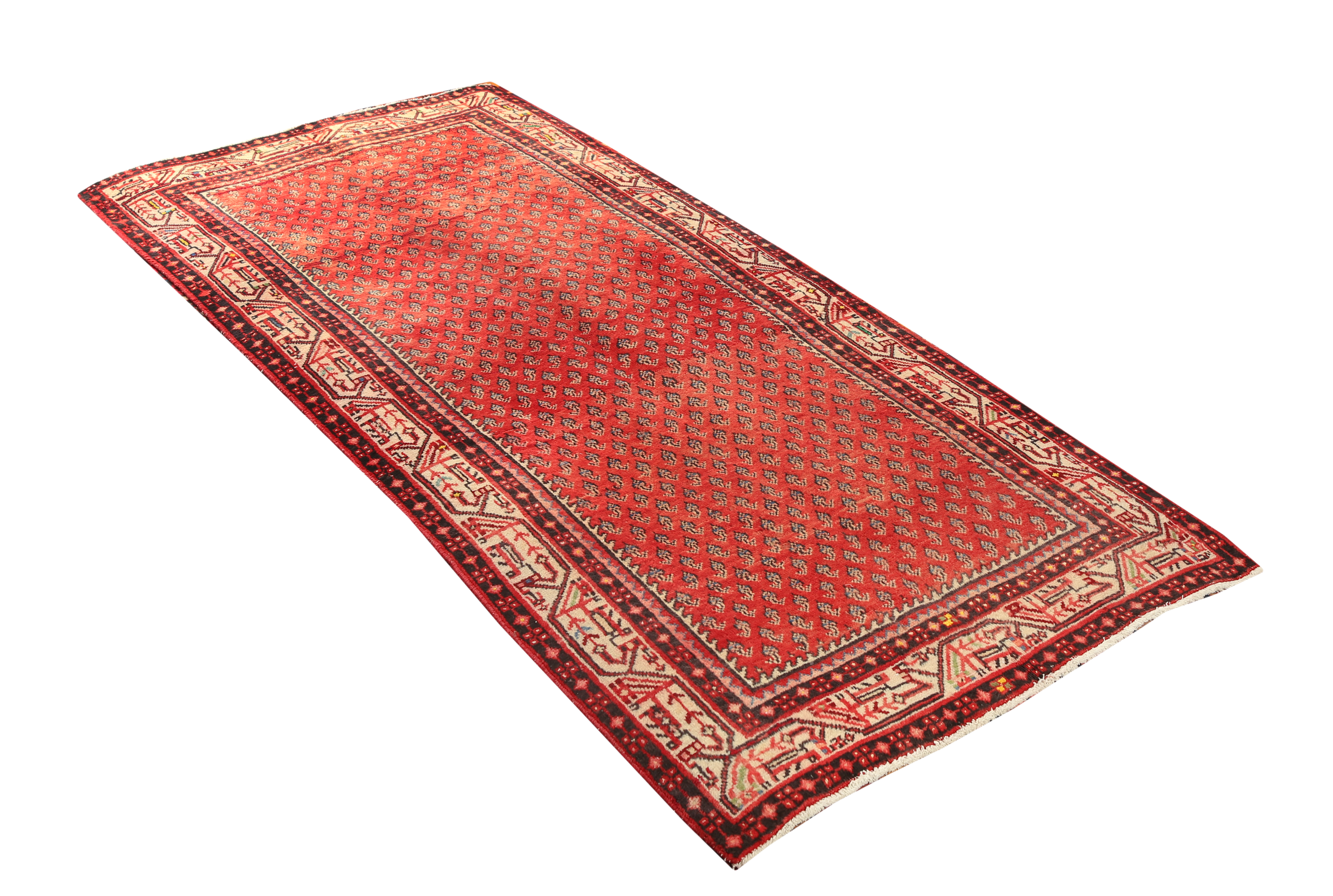 This hand-knotted Semi Antique Arak rug from Markazi - 7x3 ft - presents a compelling Medallion composition woven in Crimson, Red, a living record of one of Persia's great regional weaving traditions. Natural dyes - derived from madder root, indigo plant, walnut husks, pomegranate rind, and other botanical and mineral sources traditional to Persian dyeing practice - produce the warm, complex color palette that distinguishes authentic Persian hand-knotted rugs from synthetic or machine productions. These colors develop beauty and depth with every year of aging and use, growing richer and more nuanced over the decades in a way that no synthetic dye can approach.
