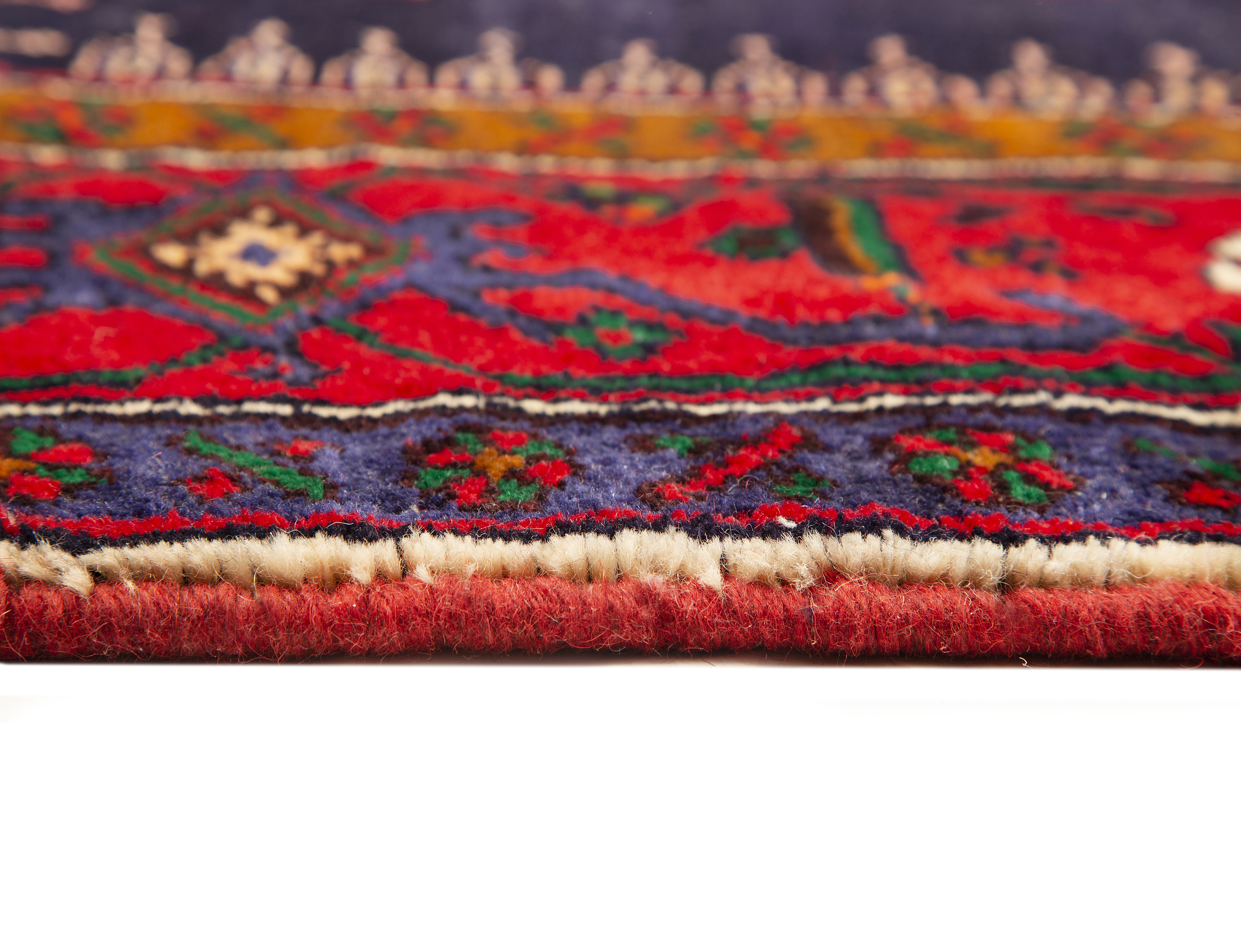 The Bijar wet-weaving technique is unique in the world of hand-knotted textiles. Weavers dampen the wool before beating each row of knots firmly into place, causing the fibers to contract and lock together as they dry. This process, combined with the use of multiple extra weft shoots between each row of knots, creates a pile and foundation structure of extraordinary density - so dense that Bijar rugs lie perfectly flat without any backing and resist crushing even under the heaviest furniture.