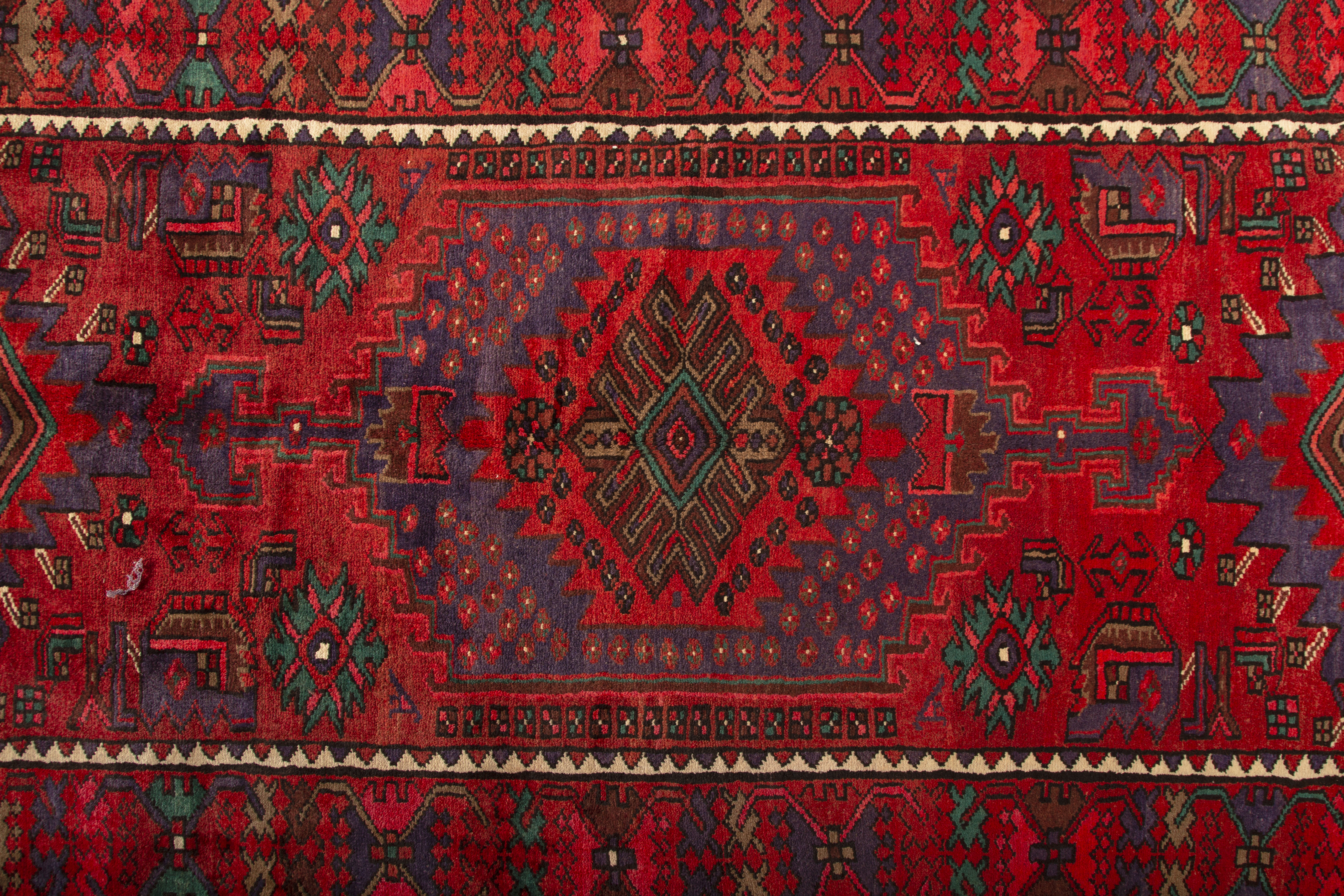 This hand-knotted Semi Antique Zanjan rug from Zanjan - 8x4 ft - presents a compelling Medallion composition woven in Navy Blue, Crimson, a living record of one of Persia's great regional weaving traditions. Village weavers of