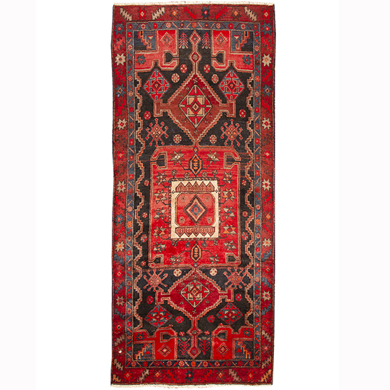 tradition of Bijar draws on the full classical Persian repertoire, rendered with the bold, confident drawing characteristic of Kurdish weaving culture. The Herati pattern - a rosette enclosed within a diamond of lancet leaves -