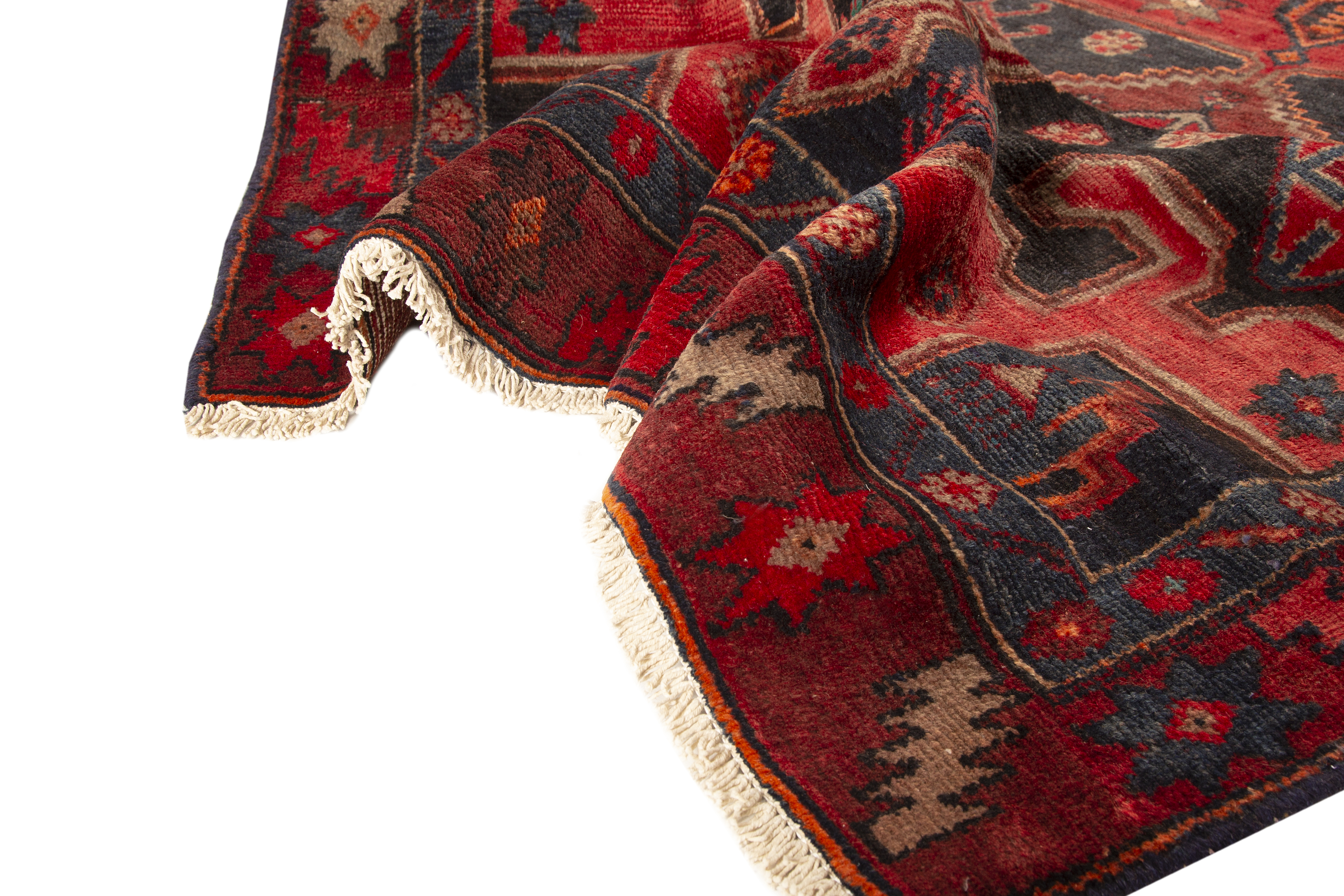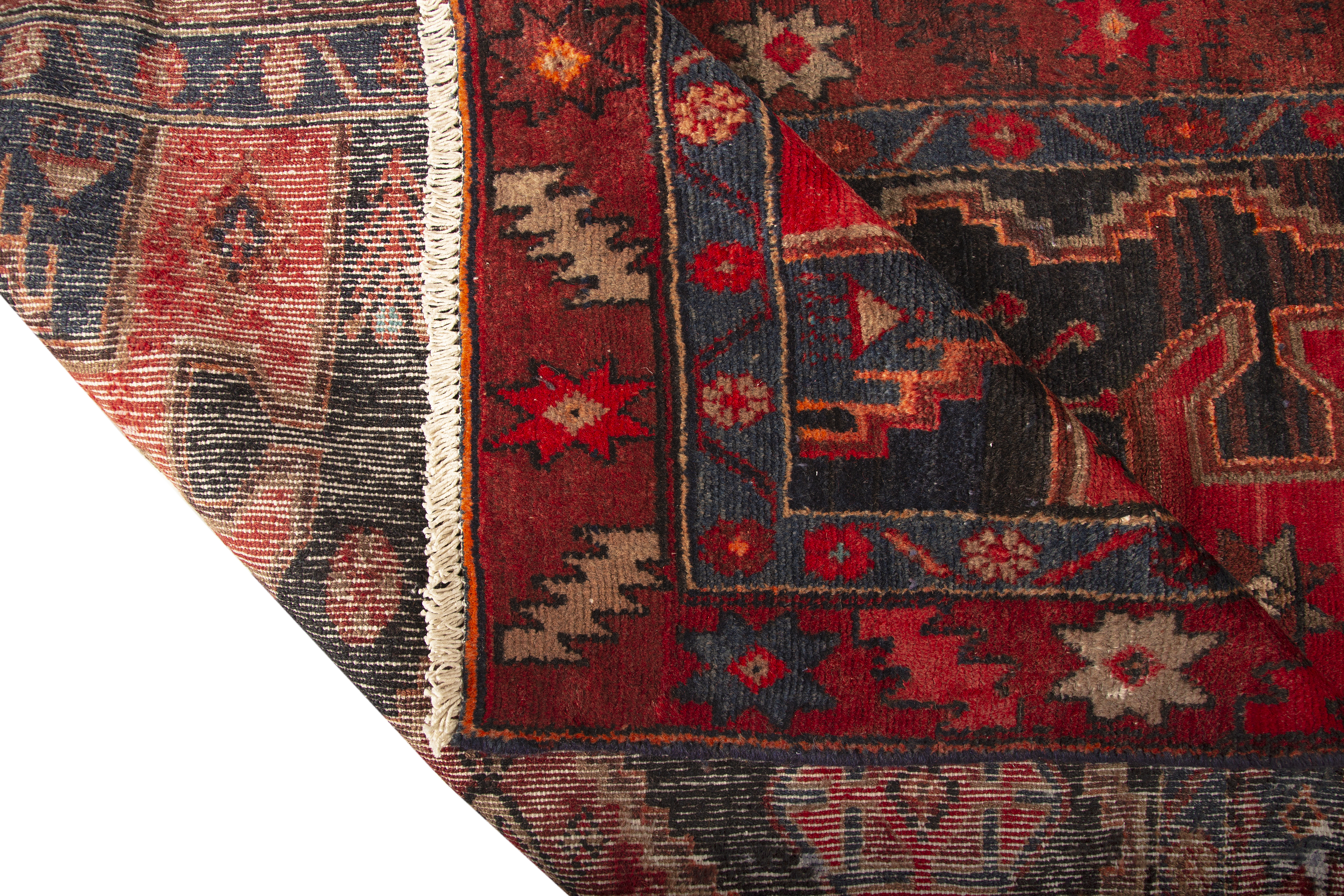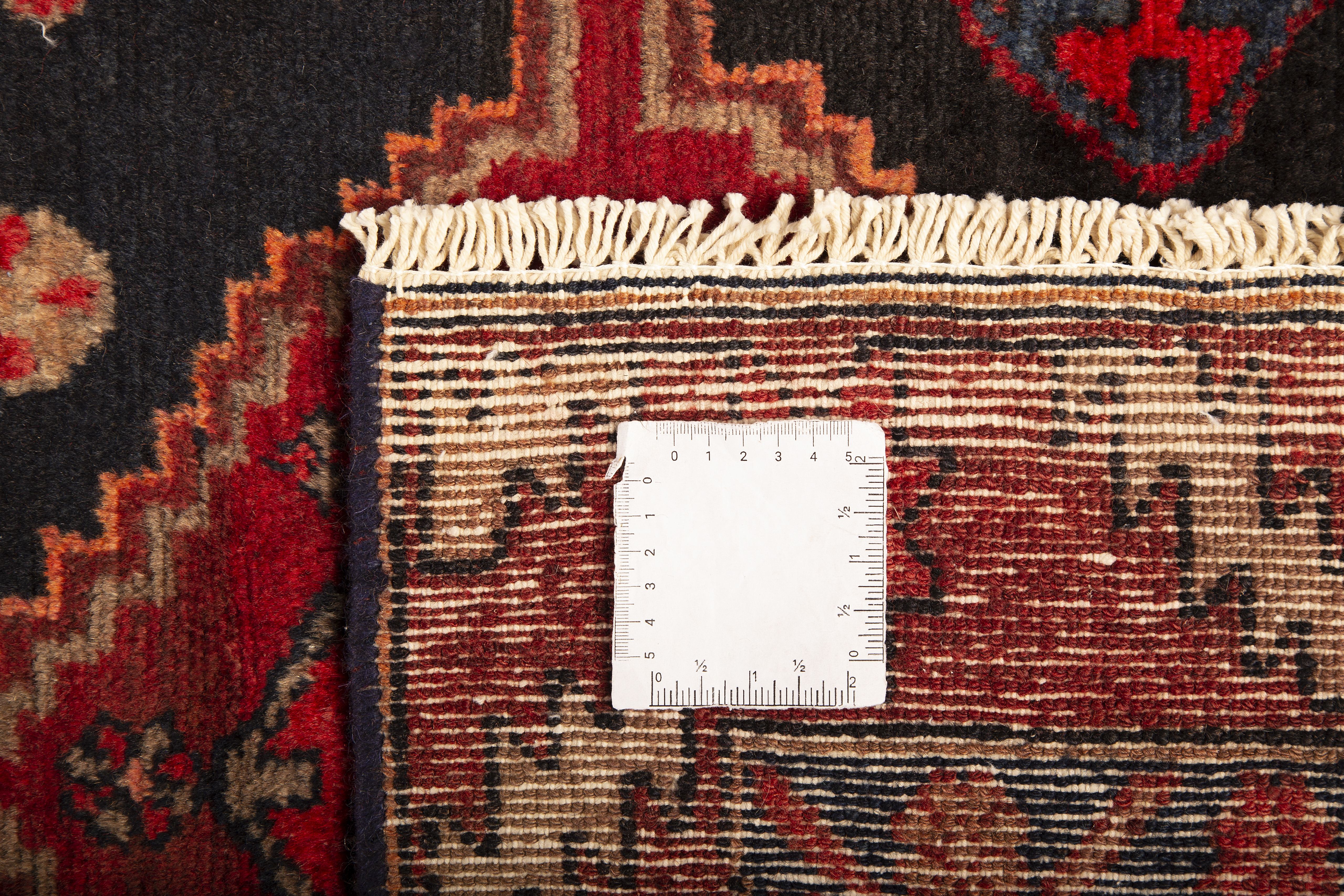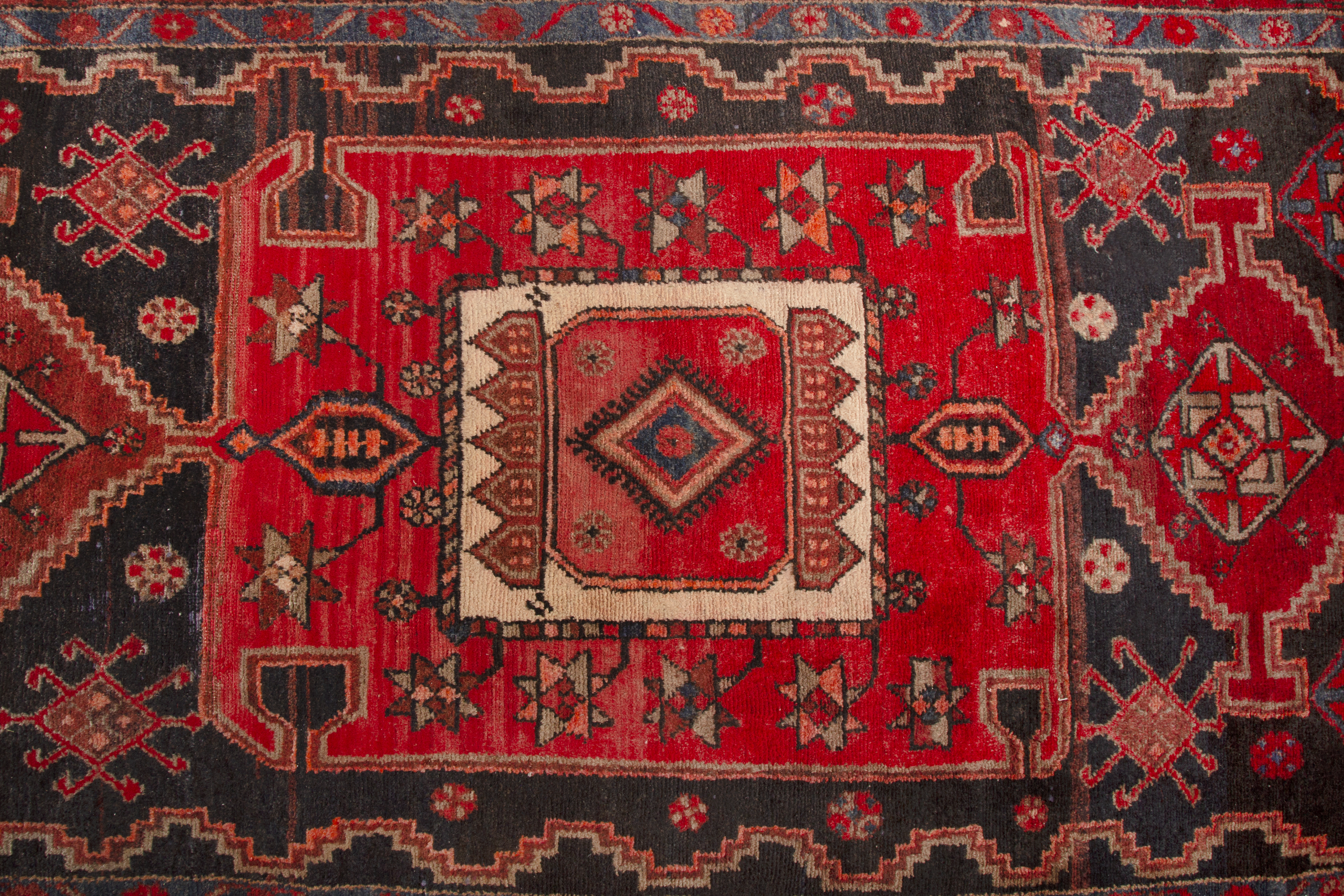 This hand-knotted Semi Antique Bijar rug from Kermanshah - 8x3 ft - presents a compelling Medallion composition woven in Crimson, Navy Blue, a living record of one of Persia's great regional weaving traditions. The design