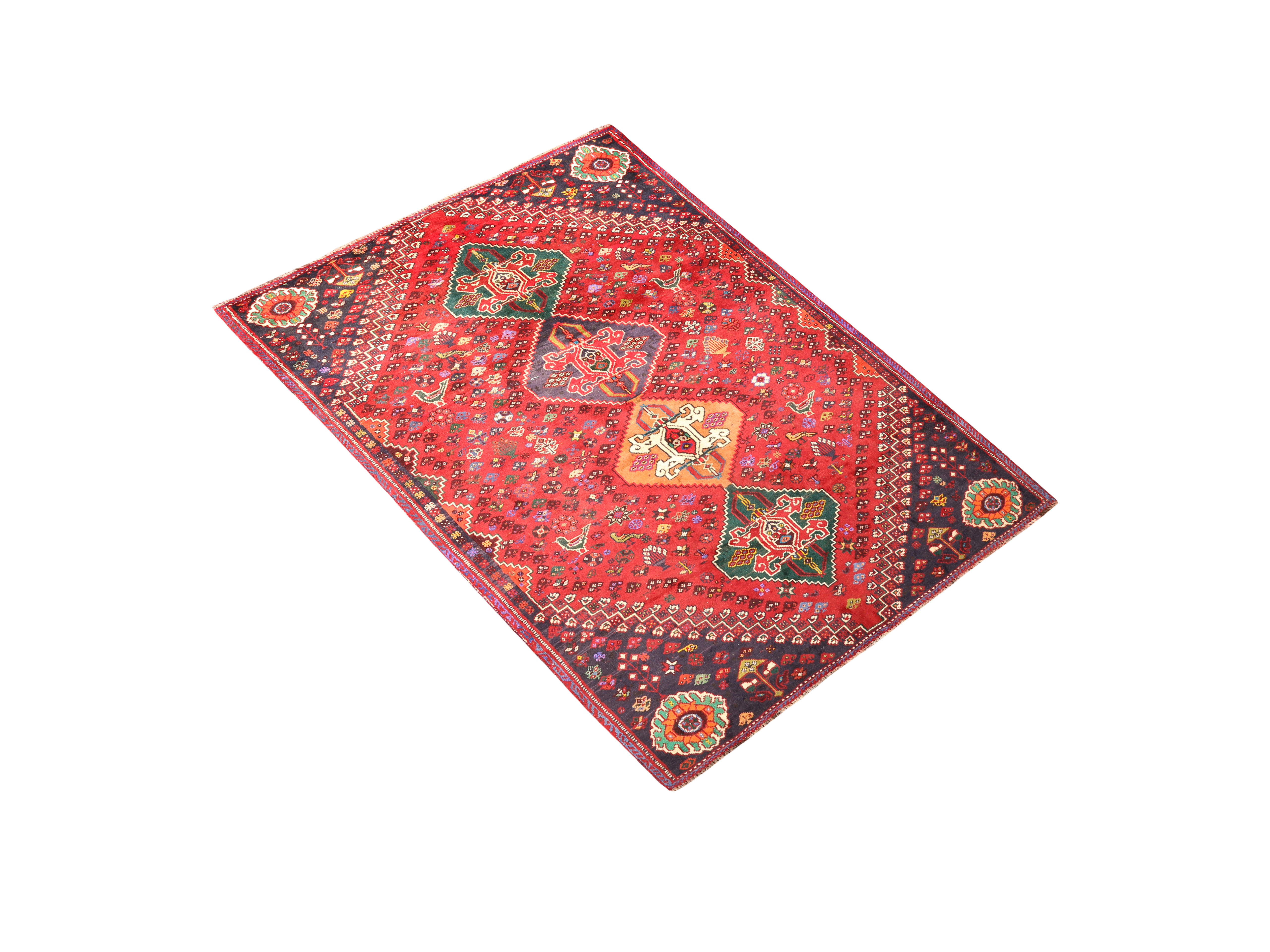 memory rather than from a shared cartoon, no two Shiraz rugs are ever identical - slight asymmetries and individual variations are the signatures of authentic tribal handcraft, evidence of a living artistic tradition rather than