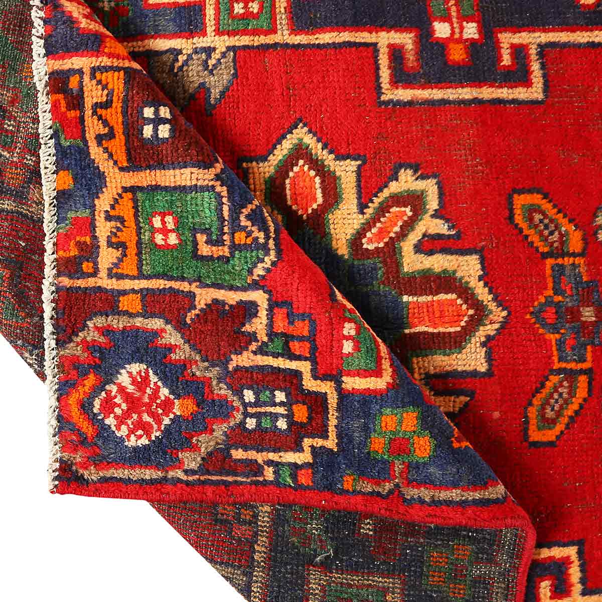 This hand-knotted Semi Antique Hamadan rug from Hamadan - 8x3 ft - presents a compelling Herati composition woven in Red, Blue, a living record of one of Persia's great regional weaving traditions. Village weavers across the