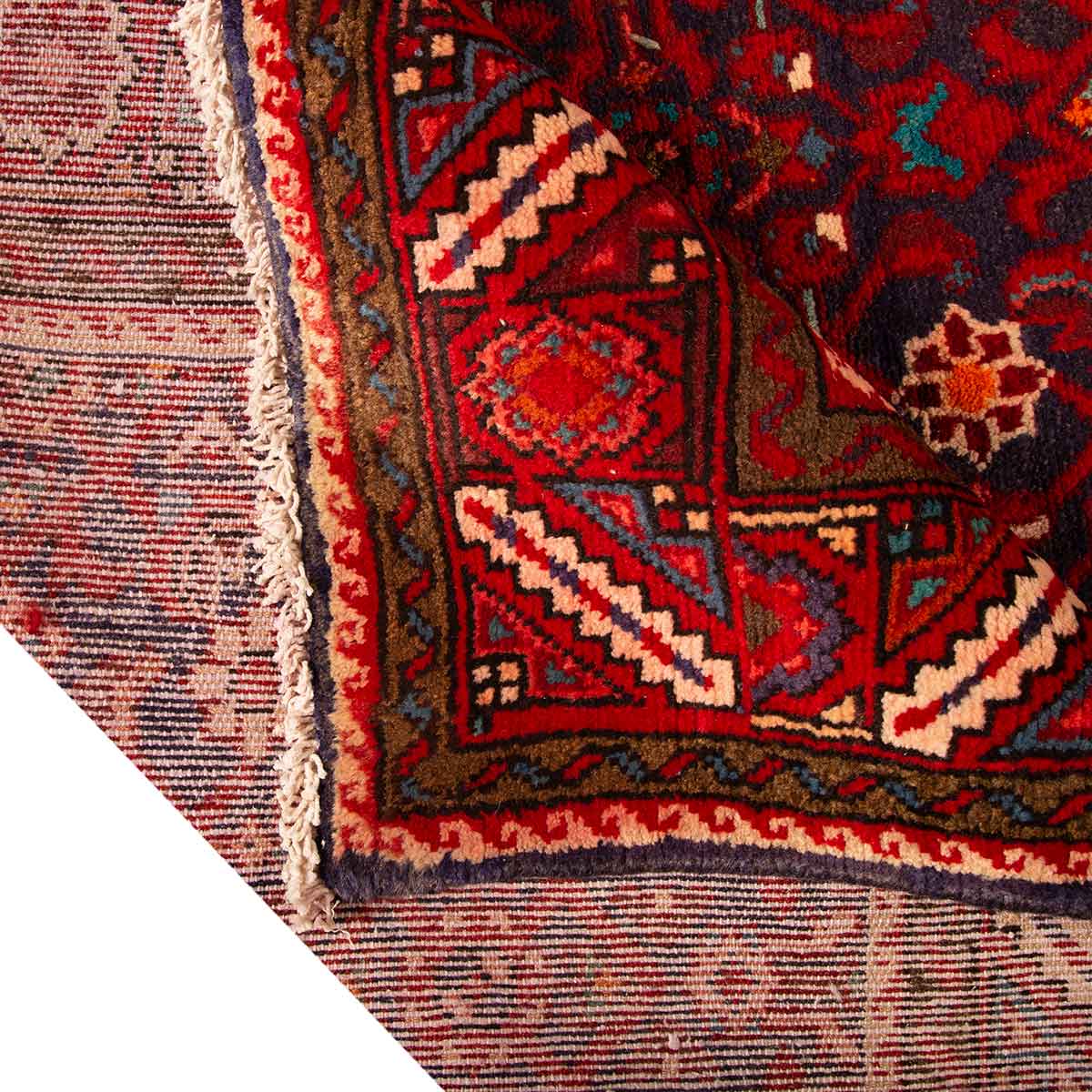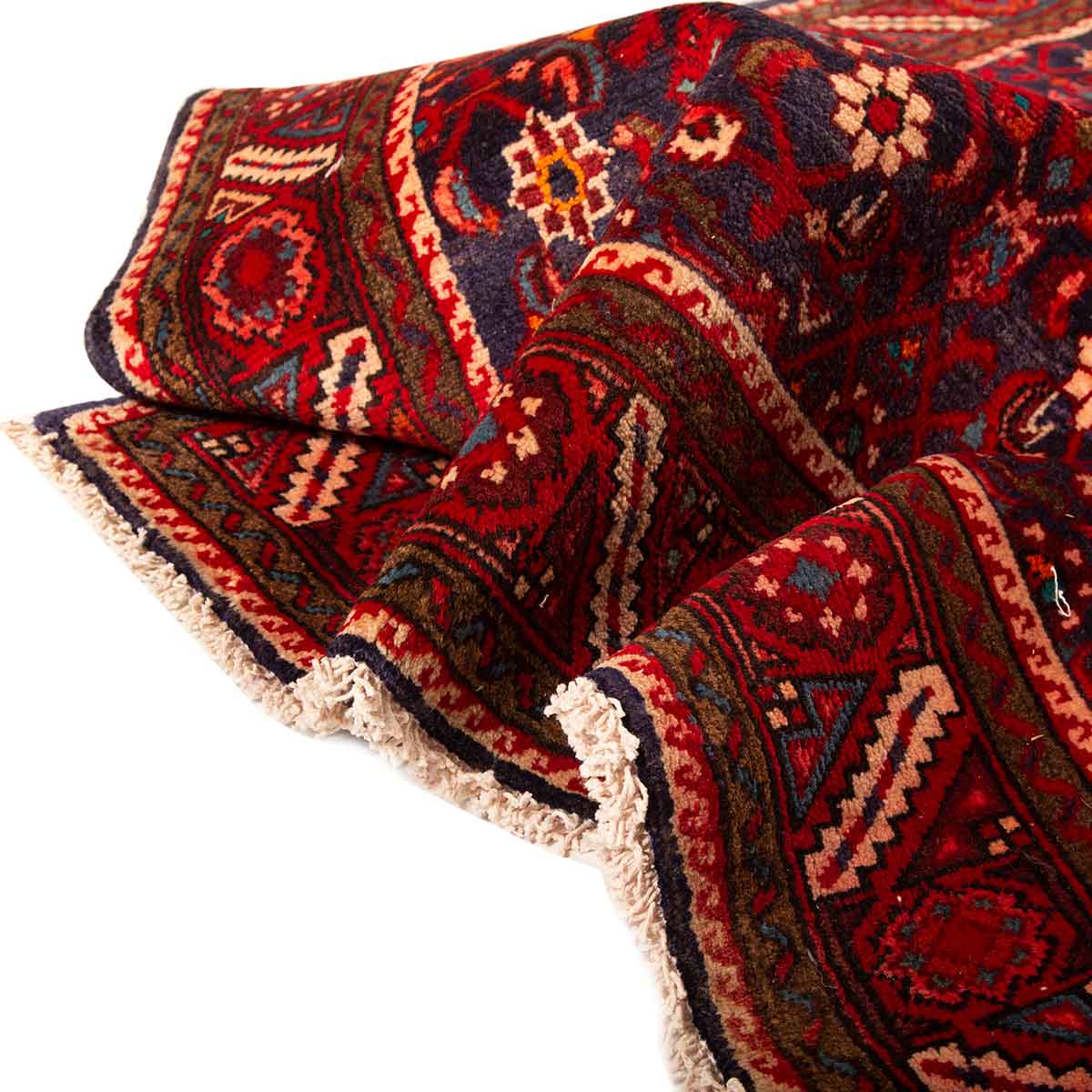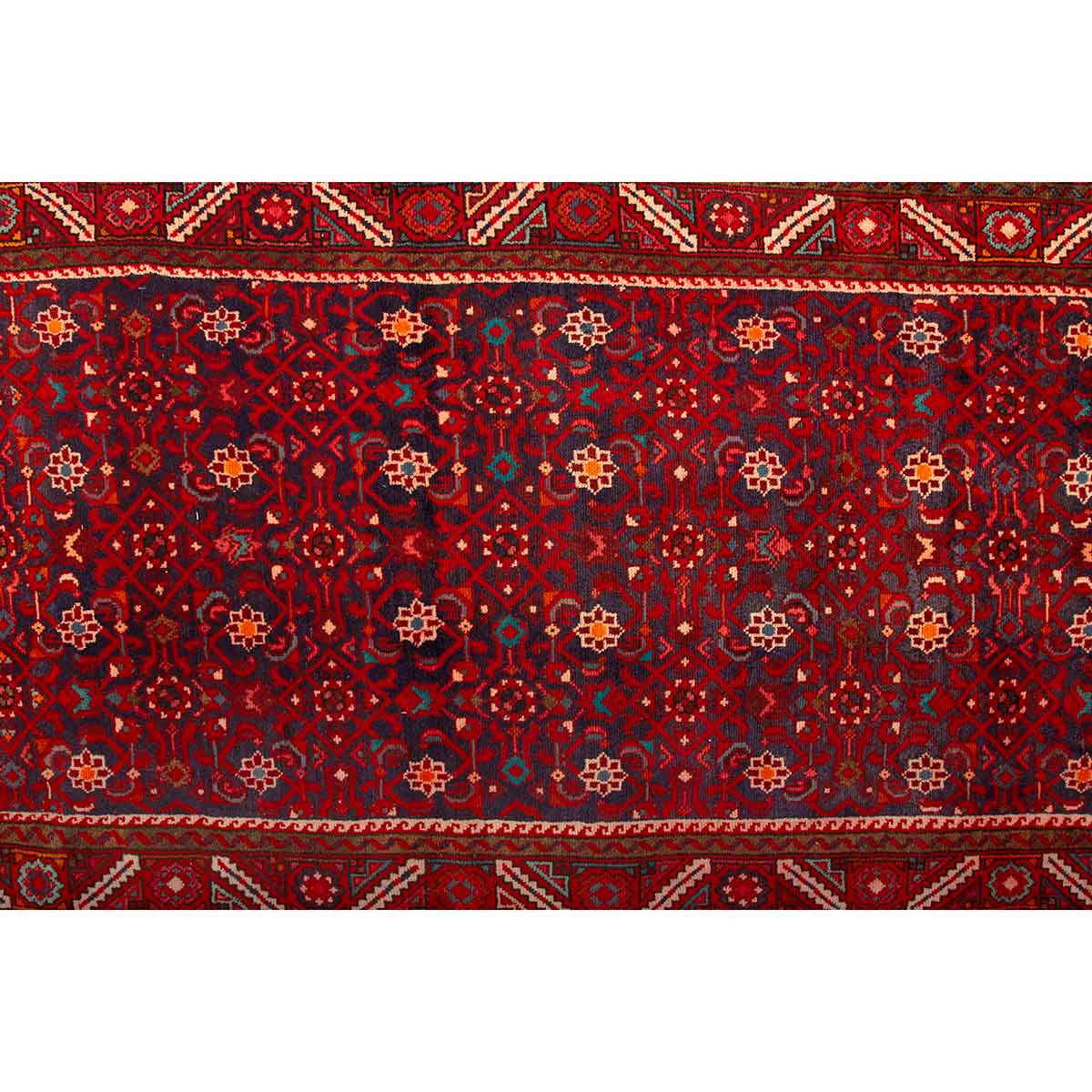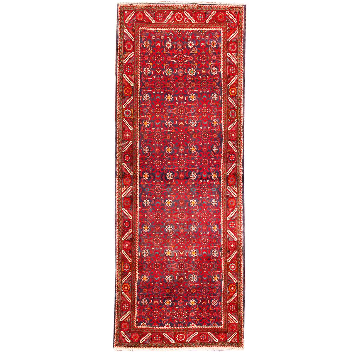 This hand-knotted Semi Antique Hamadan rug from Hamadan - 9x3 ft - presents a compelling Herati composition woven in Red, Blue, a living record of one of Persia's great regional weaving traditions. Each Hamadan rug is the product