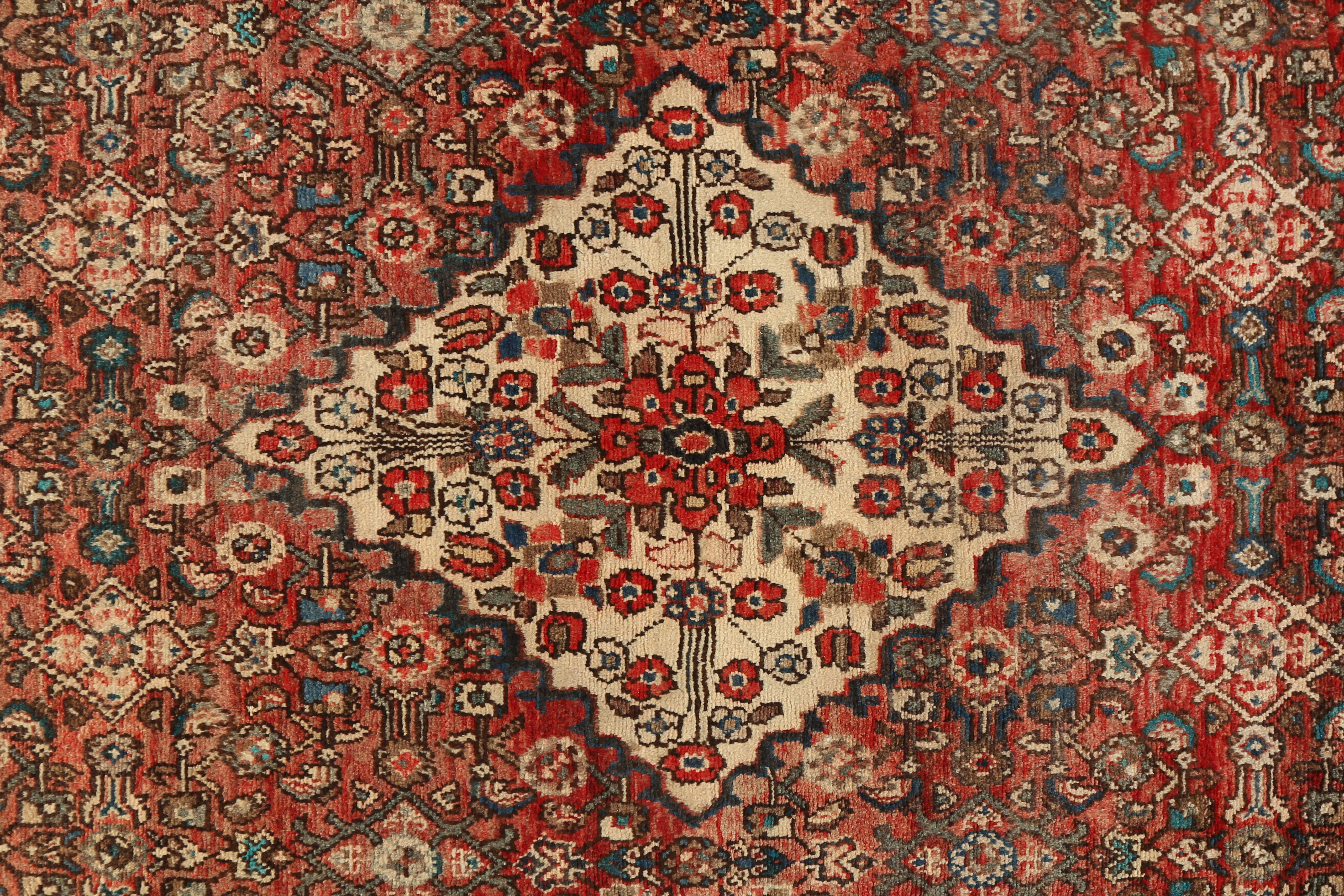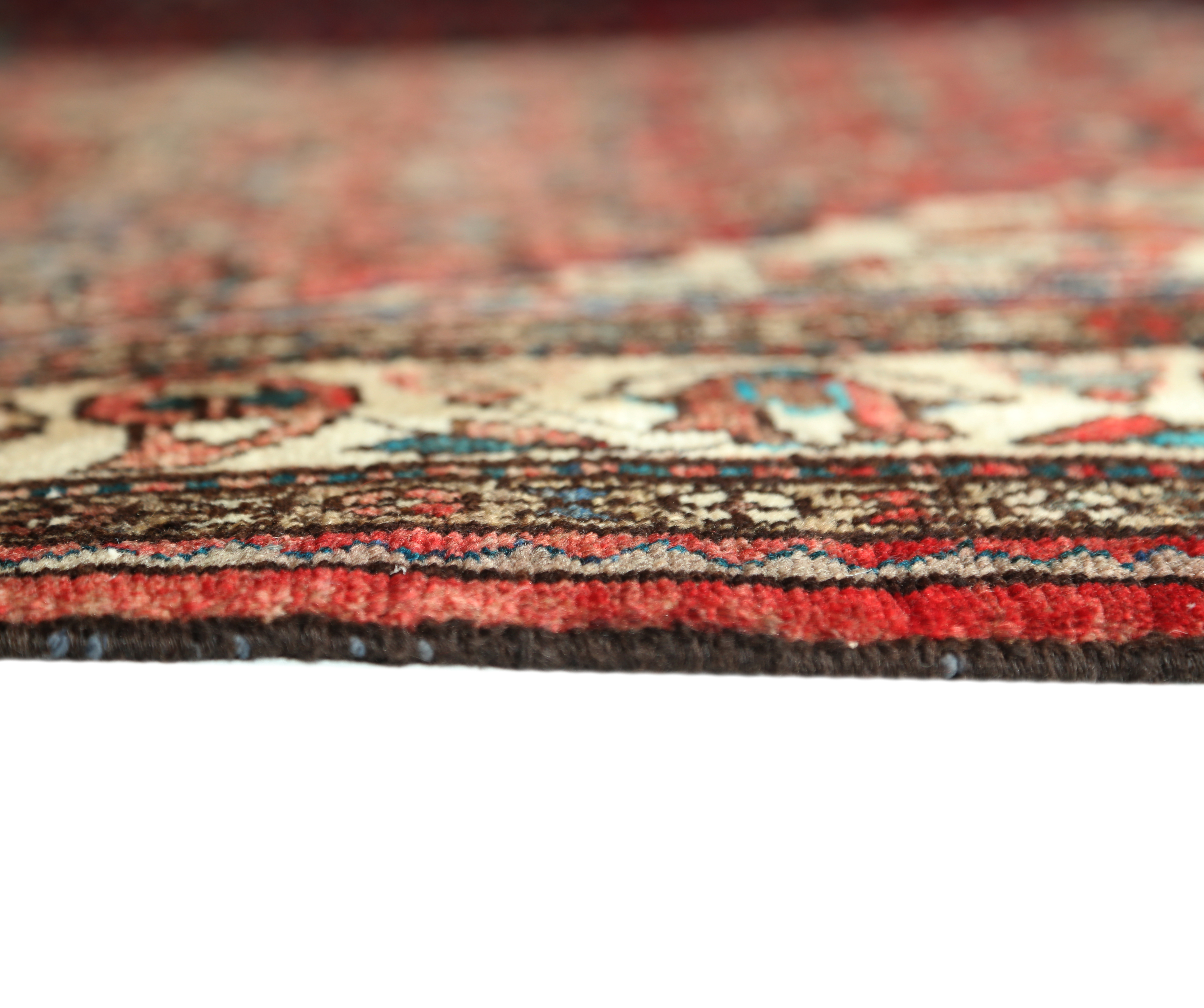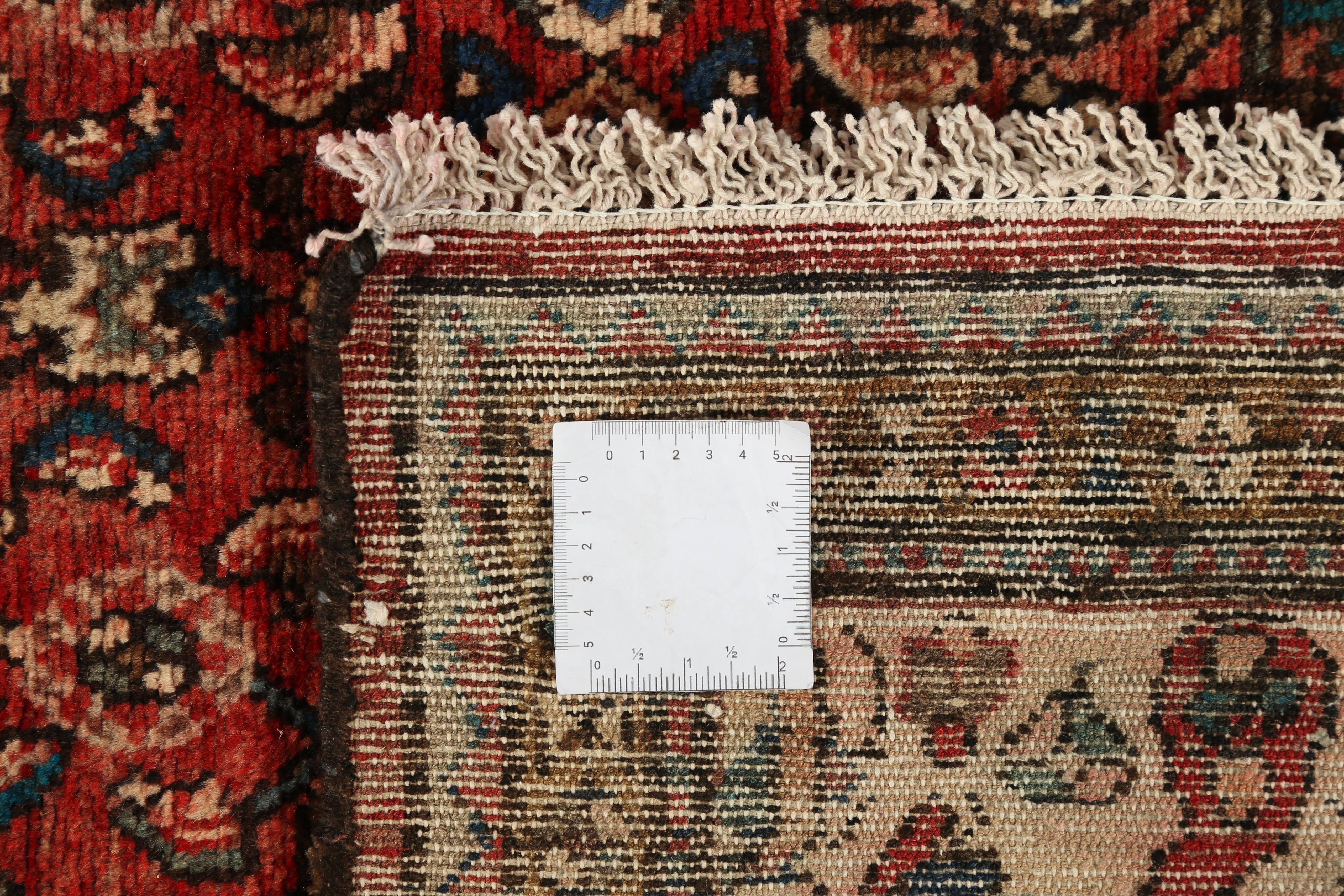 A superb example of Hamadan weaving heritage, this 9x5 ft Semi Antique rug showcases the celebrated Herati design of Hamadan, rendered here in rich tones of Red, Blue with the authority of long tradition. The extraordinary variety within Hamadan production reflects the cultural diversity of the hundreds of villages that contributed to this tradition over centuries. Each village developed its own design specialties, local dyeing practices, characteristic color combinations, and individual interpretations of shared design motifs - giving the Hamadan family of rugs an inexhaustible range of character and individual expression that rewards sustained collecting and close study.