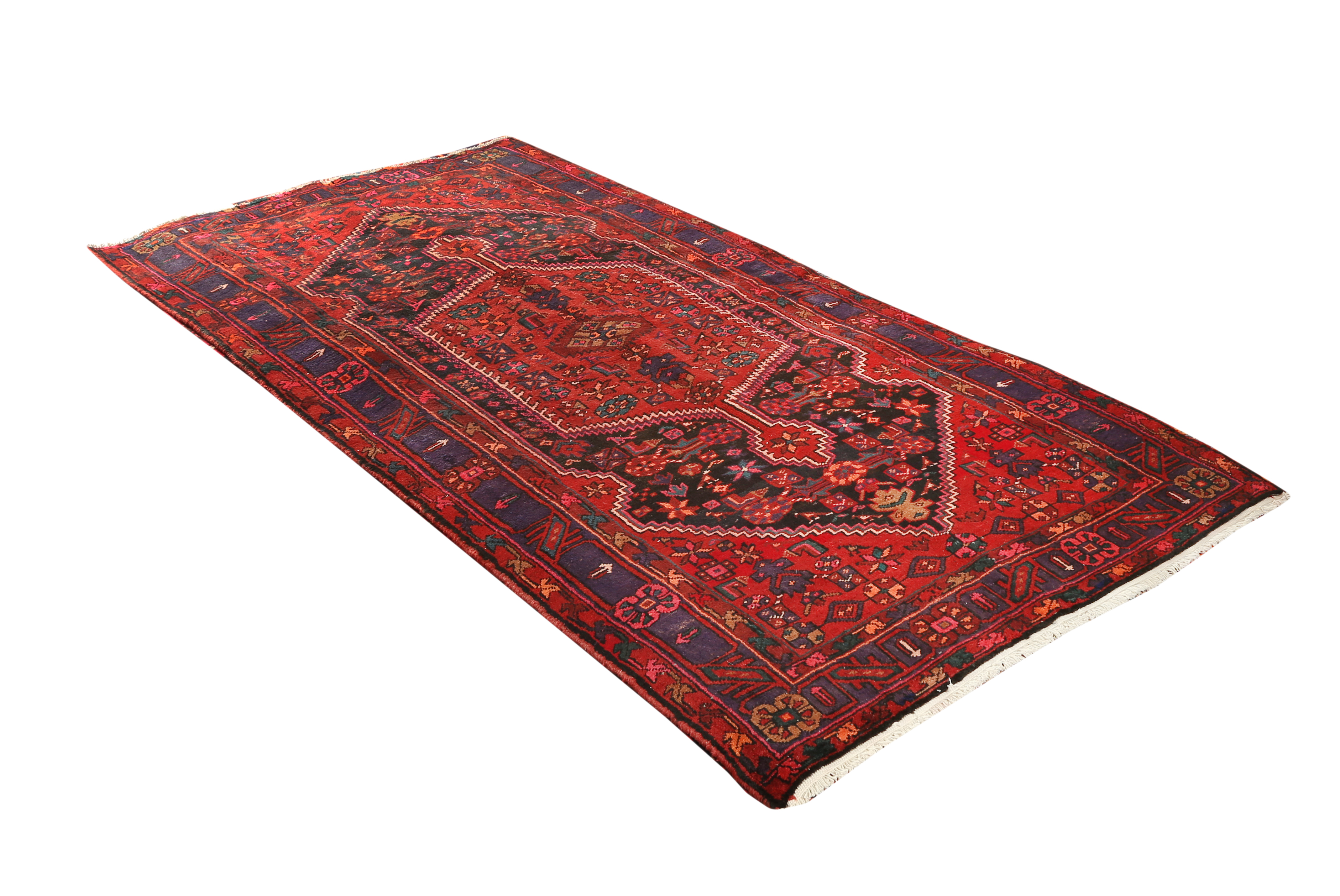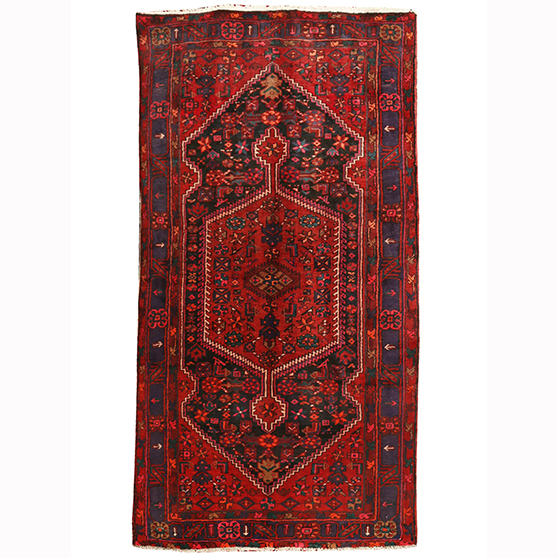 This Semi Antique Kazvin rug, measuring 9x4 ft, presents a distinguished Medallion composition in Red, Blue - hallmark characteristics of the Qazvin weaving tradition at its finest. Kazvin rugs originate from Qazvin in Persia, where a tradition of hand-knotted rug weaving has flourished for generations. The weavers of Qazvin have developed a distinctive regional style that combines the broad vocabulary of Persian decorative art with the particular cultural character of their home landscape, producing rugs of genuine individuality and enduring quality that reward both immediate appreciation and extended living with them.