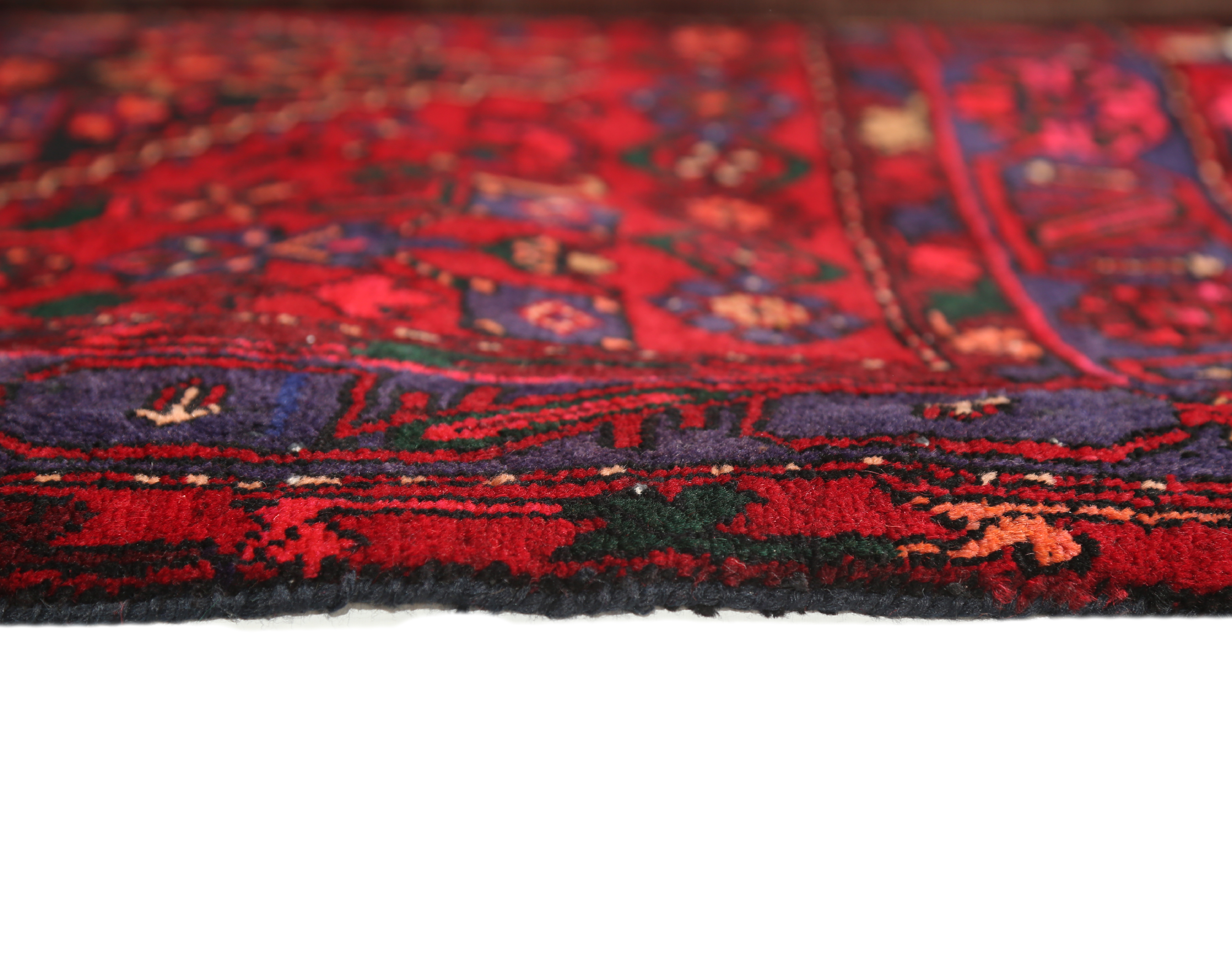 Each hue tells a story of natural dyeing traditions, where crimson speaks of prosperity, navy blue represents wisdom and depth, and the warm rust red tones evoke the earthen landscapes of ancient Persia. This one-of-a-kind hand-knotted masterpiece elevates any living space with its authentic character and timeless sophistication, perfectly sized for hallways, entryways, or as an elegant accent beneath furniture groupings.