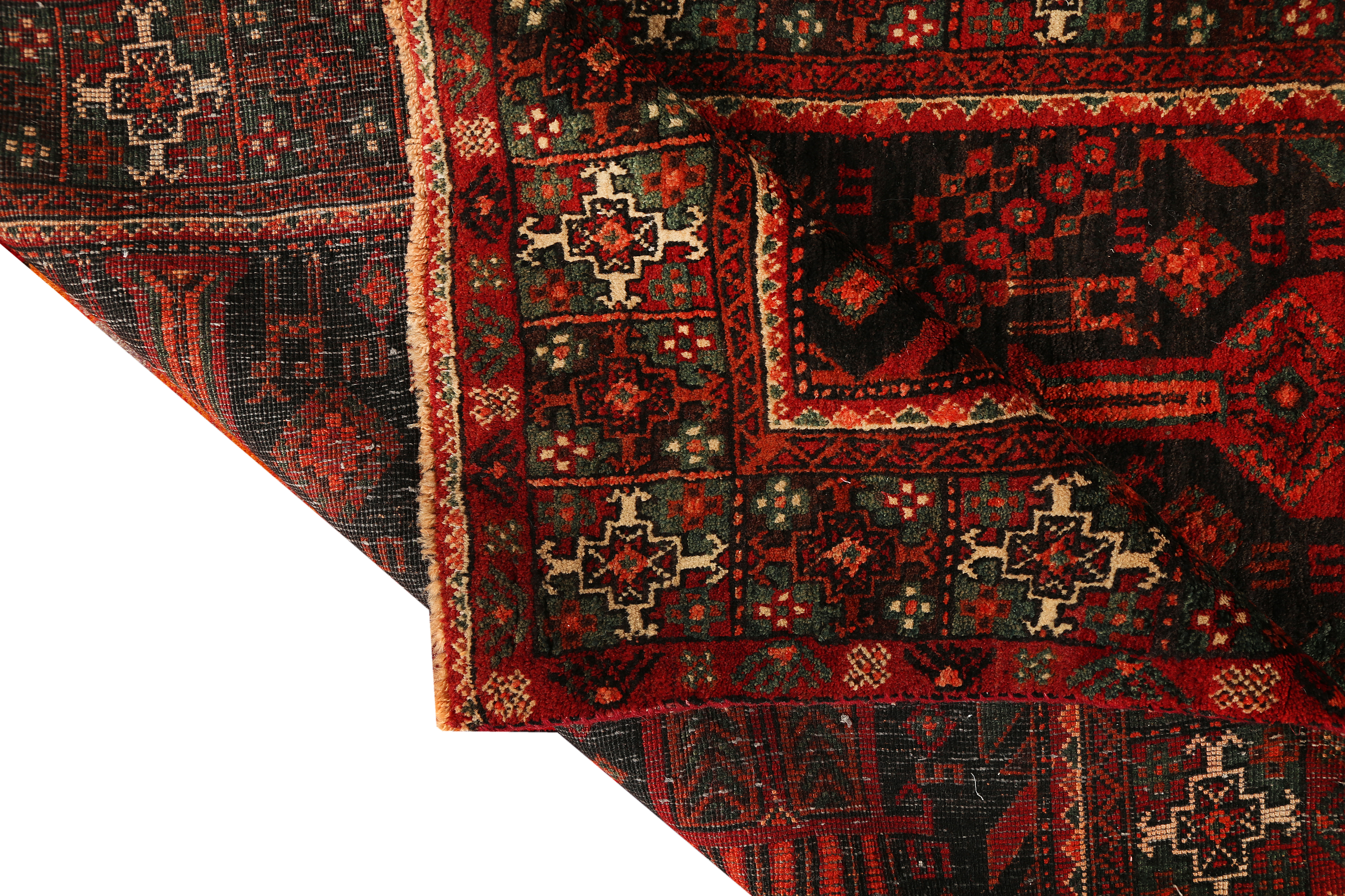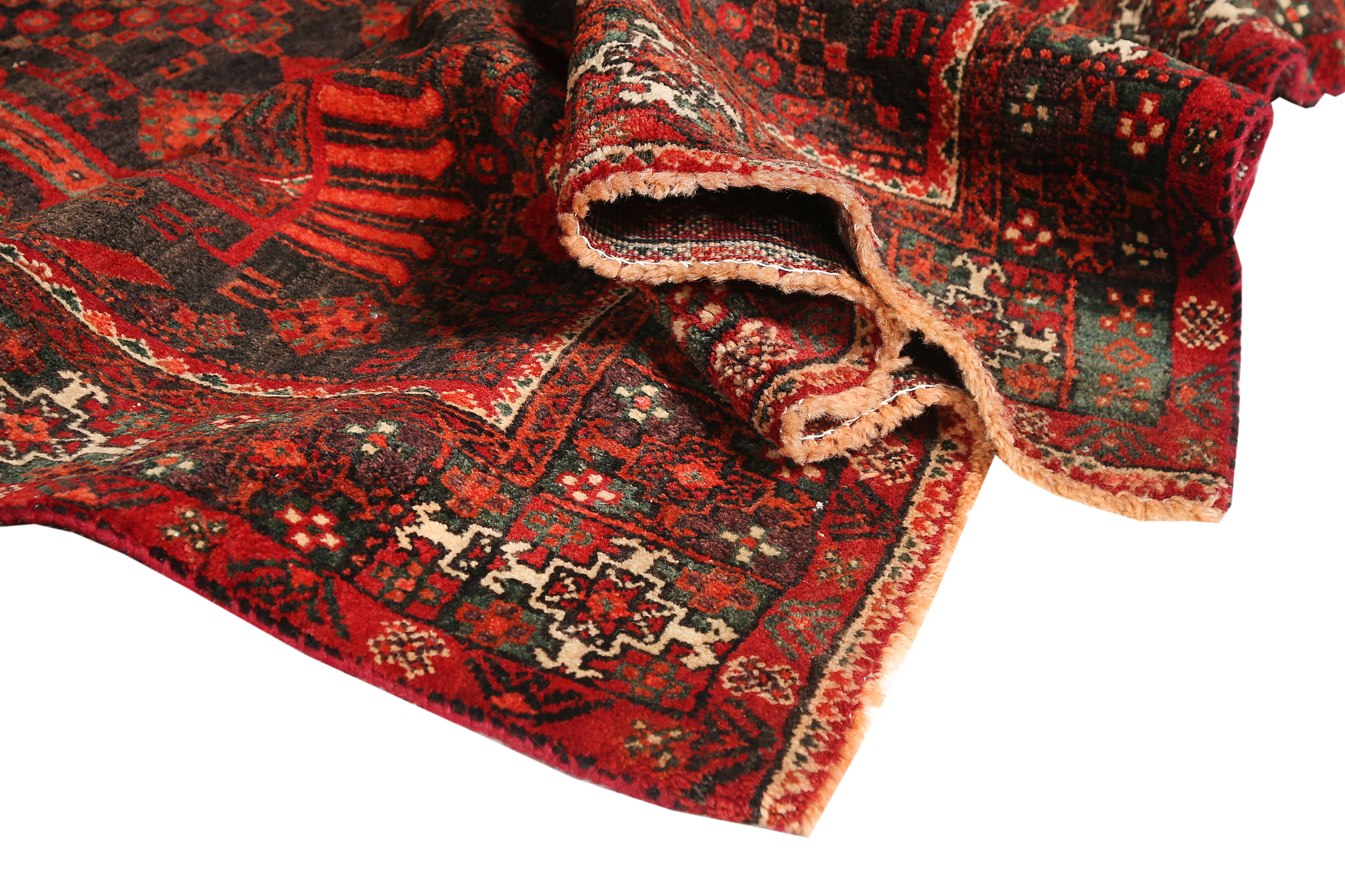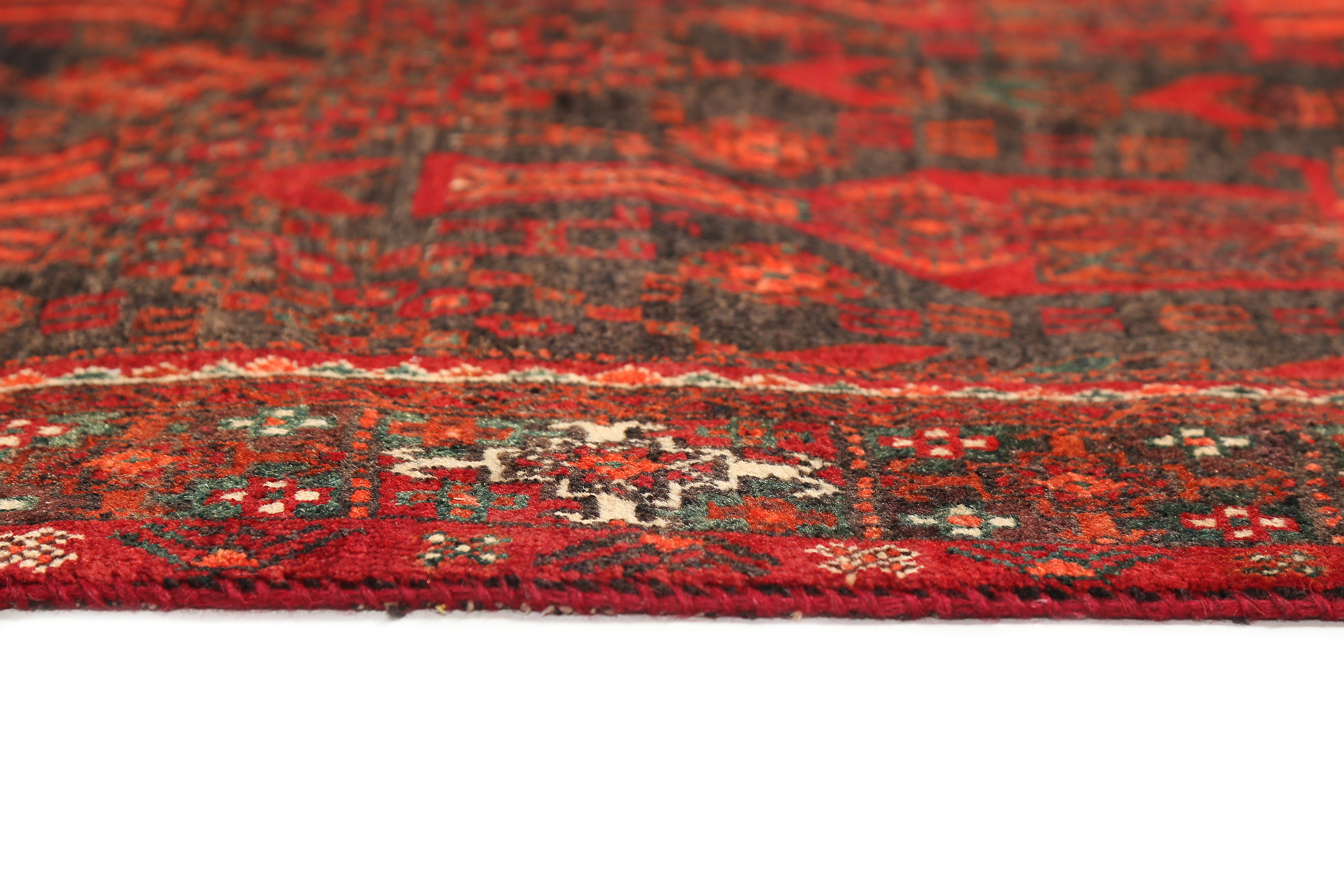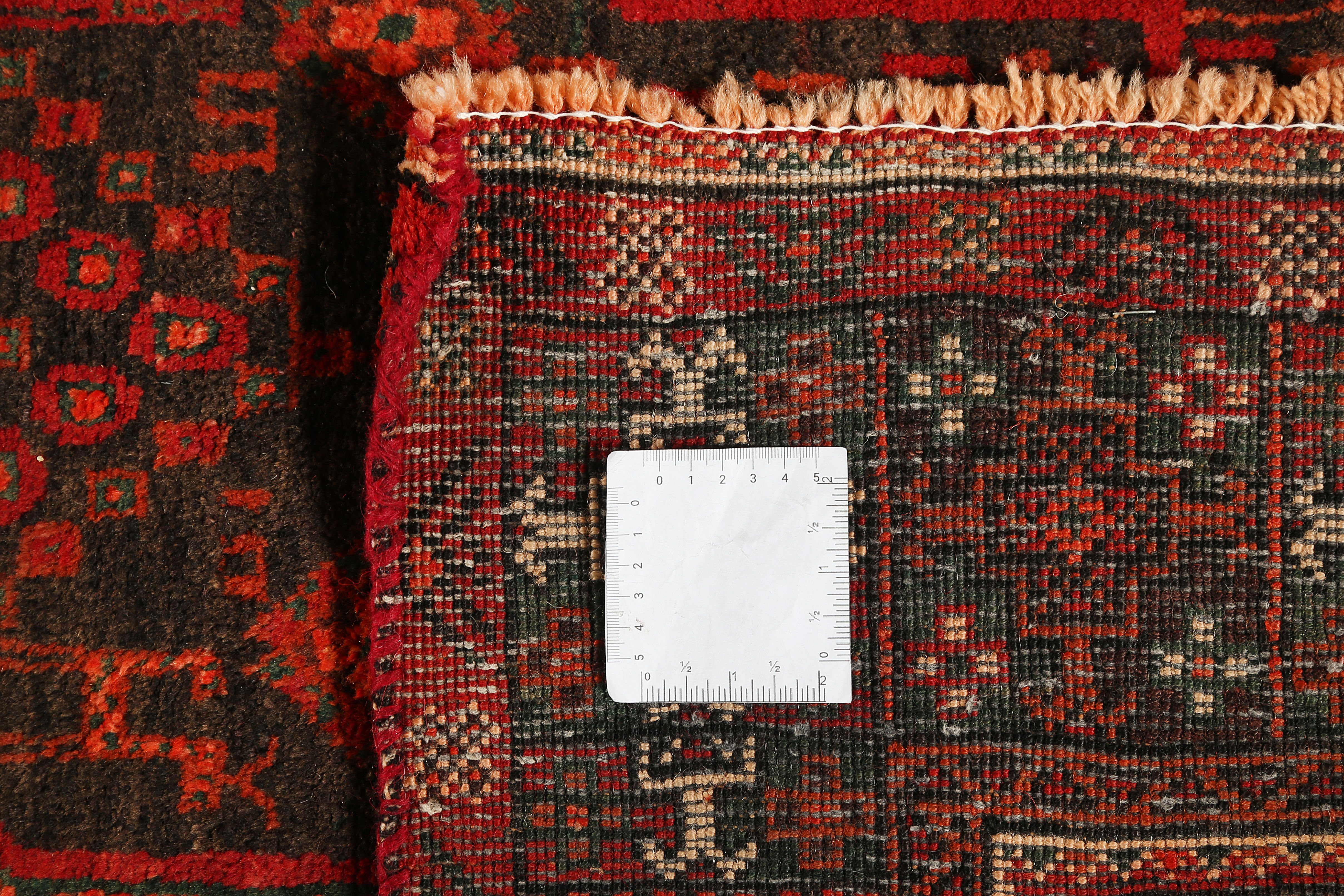This hand-knotted Semi Antique Baluch rug from Sistan and Baluchestan, khorasan - 9x3 ft - presents a compelling Boteh composition woven in Red, Blue, a living record of one of Persia's great regional weaving traditions. The