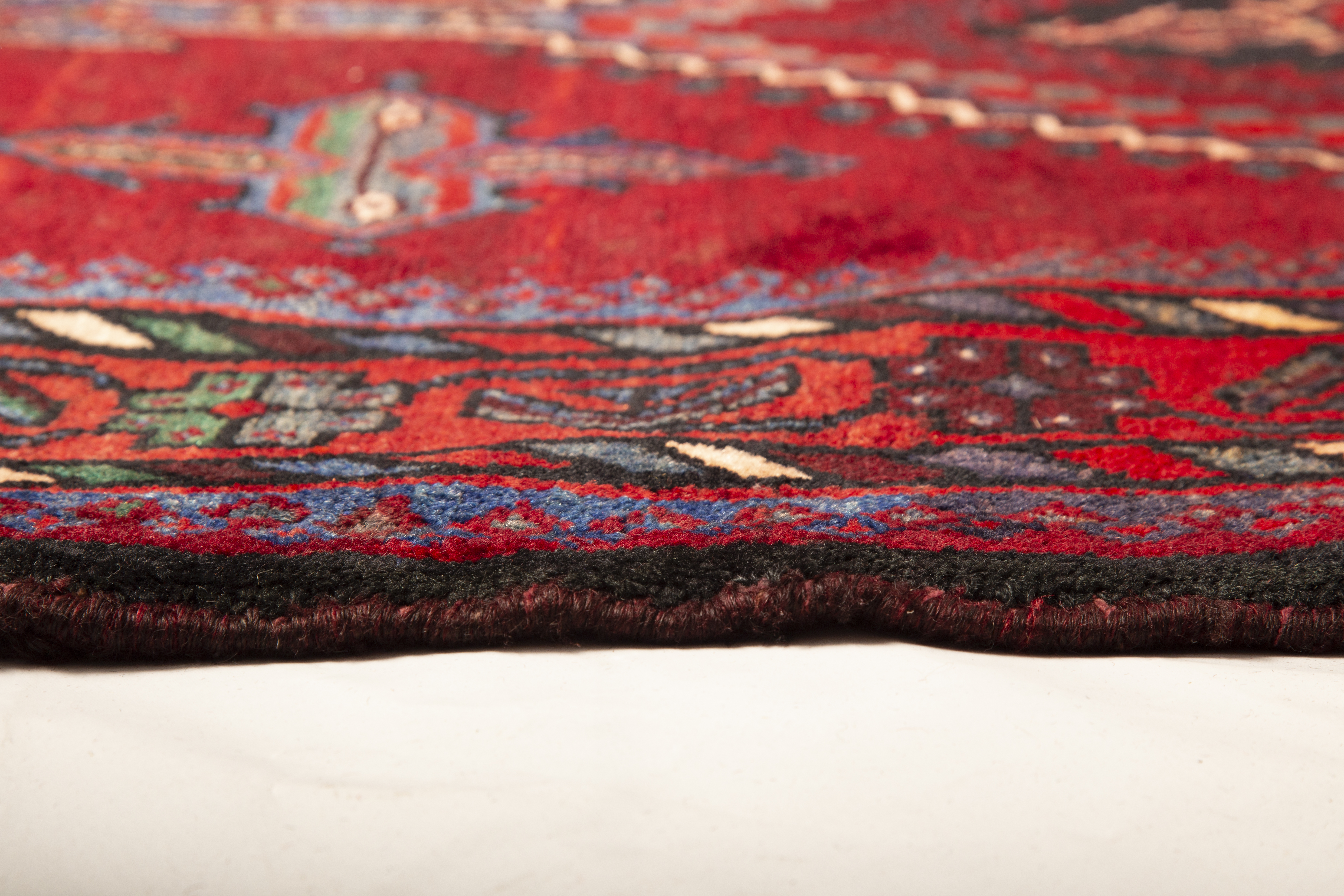 The masterful color harmony of this piece transforms any living space, with the madder red providing warmth and energy while the navy blue anchors the design with sophistication. Los Angeles Home of Rugs presents this remarkable example of Semnan craftsmanship, where the ochre and forest green accents add depth and complexity to complement both traditional and contemporary interiors.